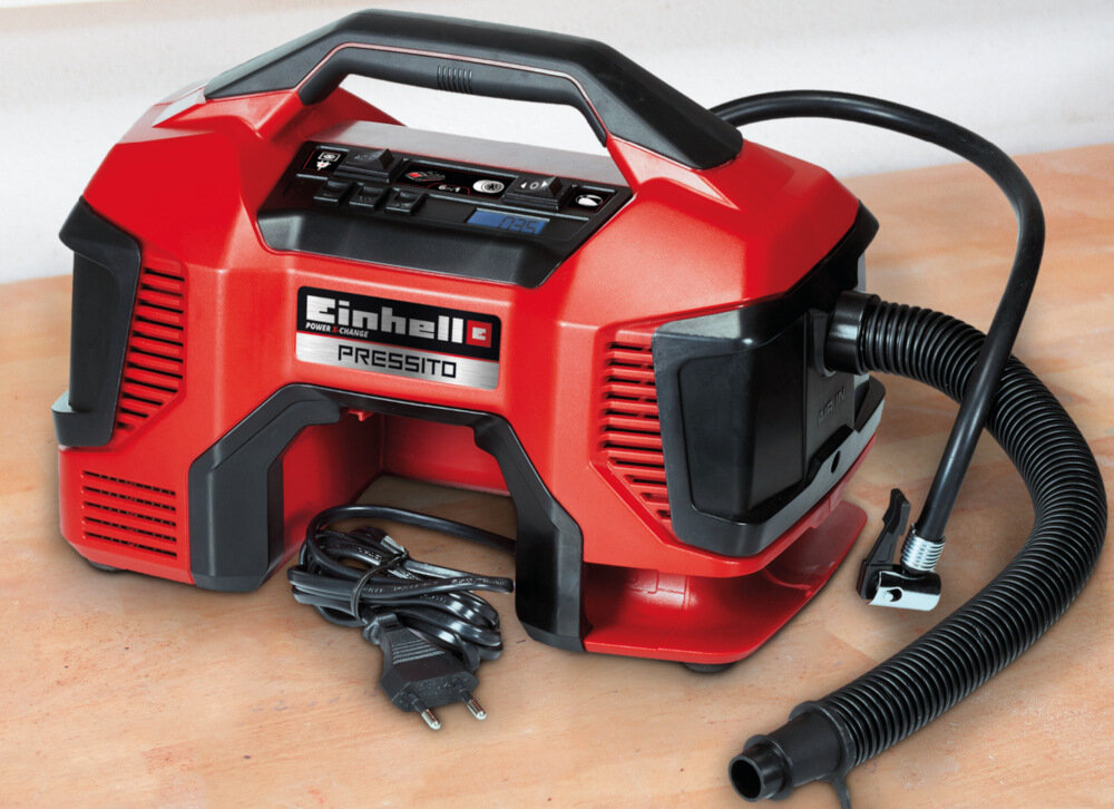 Pompka wysokociśnieniowa zapewnia maksymalne ciśnienie do 11 barów, co sprawia, że kompresor EINHELL Pressito jest idealnym narzędziem zarówno w garażu, jak i w trakcie podróży, zapewniając szybkie i skuteczne pompowanie opon.