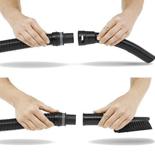 Możliwość podłączenia różnych ssawek bezpośrednio do węża ssącego. Łatwe odkurzanie nawet w trudno dostępnych miejscach.