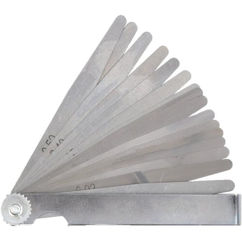 Szczelinomierz marki PROLINE. Narzędzie zostało wykonane ze stali nierdzewnej, która zapewnia trwałość produktu. Długość szczelinomierza wynosi 200 mm. Szczelinomierz posiada 17 listków.