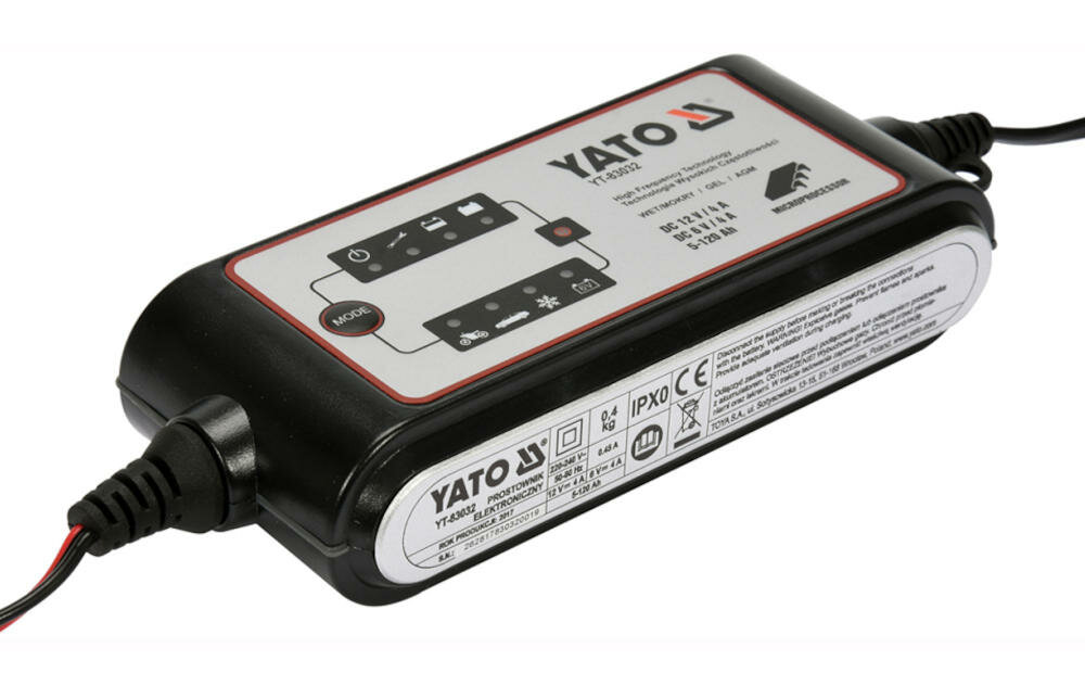 Poznaj profesjonalny prostownik YATO YT-83032 do ładowania akumulatorów 6V/12V w motocyklach, traktorach, samochodach osobowych i dostawczych oraz łodziach motorowych. Posiada funkcję podtrzymywania prawidłowego napięcia w akumulatorach pracujących w trybie spoczynku - tzw. ładowanie konserwujące.