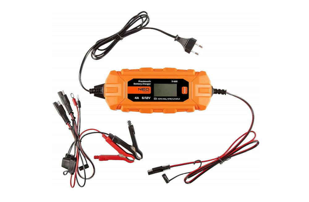 Poznaj automatyczny prostownik NEO 11-891, który przeznaczony jest do ładowania akumulatorów bezobsługowych oraz do długotrwałego ładowania i ładowania konserwacyjnego. Prostownik pozwala także na ładowanie akumulatorów do samochodów oraz traktorów. Zintegrowany mikroprocesor umożliwia ładowanie w kilku krokach. Ładowanie konserwacyjne - utrzymuje pojemność akumulatora na poziomie 95–100%, a zatem utrzymuje akumulator w pełni naładowany przez cały czas. Prostownik wyposażony jest w wyświetlacz LCD, ochronę przed odwróceniem polaryzacji, zabezpieczenie przeciwzwarciowe oraz przed przeładowaniem.