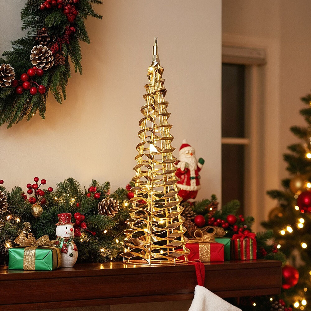 ✅ Solidna konstrukcja - Konstrukcja choinki wykonana z metalu. Choinka ozdobiona jest skręconym wzorem w kolorze złotym, co nadaje jej nowoczesny i stylowy wygląd.