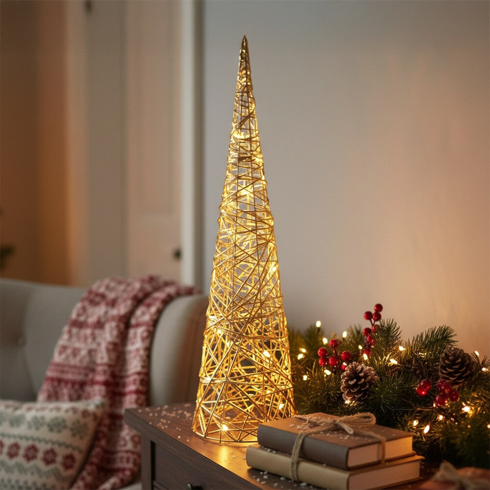 - Choinka świecąca stożek złota 30 LED 60 cm