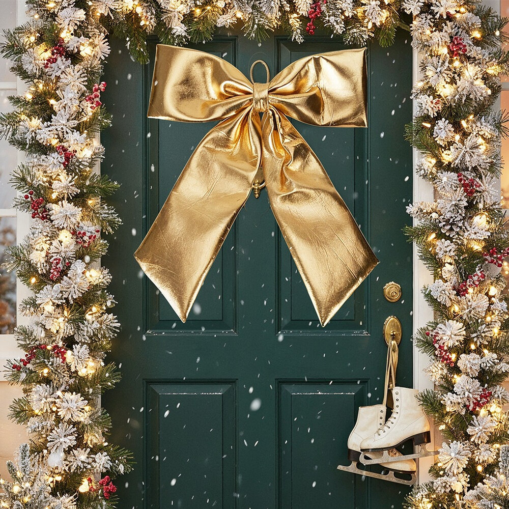 ✅ Duża kokarda dekoracyjna - Efektowna kokarda dekoracyjna w rozmiarze XXL o wymiarach 68 x 10 x 80 cm. Wykonana z błyszczącej, złotej tkaniny, stanowi okazałą i elegancką ozdobę, idealną do dekoracji witryn sklepowych, balustrad, drzwi czy choinek.