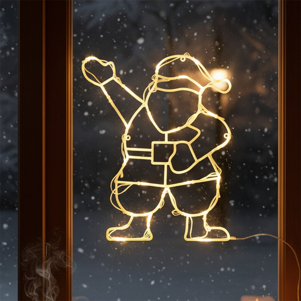 ✅ Świecąca ozdoba dekoracyjna na okno - Świąteczna dekoracja w kształcie Mikołaja o wymiarach 34 x 42 cm, przeznaczona do zawieszenia na okno lub np. ścianę. Ozdoba jest podświetlana 24 diodami LED o ciepłej, białej barwie, tworząc elegancką, bożonarodzeniową atmosferę.