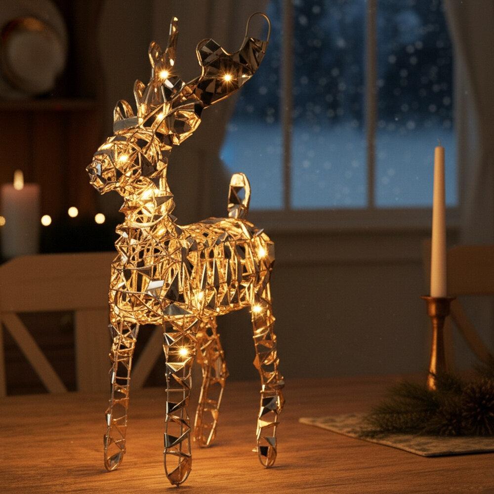 ✅ Elegancki design - Renifer ma stylowy kolor złota i minimalistyczną formę, dzięki czemu pasuje do wielu nowoczesnych aranżacji. Jest idealną ozdobą na komodę, parapet czy biurko.