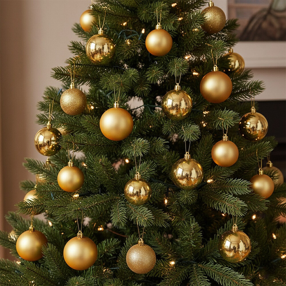 ✅ Zestaw 60 szt. bombek na choinkę - Zestaw 60 bombek w kolorze złotym, które dodadzą klasycznego blasku każdej choince i stworzą magiczną atmosferę w domu. W zestawie bombki: 18 szt. o średnicy 4 cm, 20 szt. o średnicy 5 cm, 16 szt. o średnicy 6 cm oraz 6 szt. o średnicy 7 cm. W zestawie bombki błyszczące i matowe, co urozmaica dekoracje na choince.