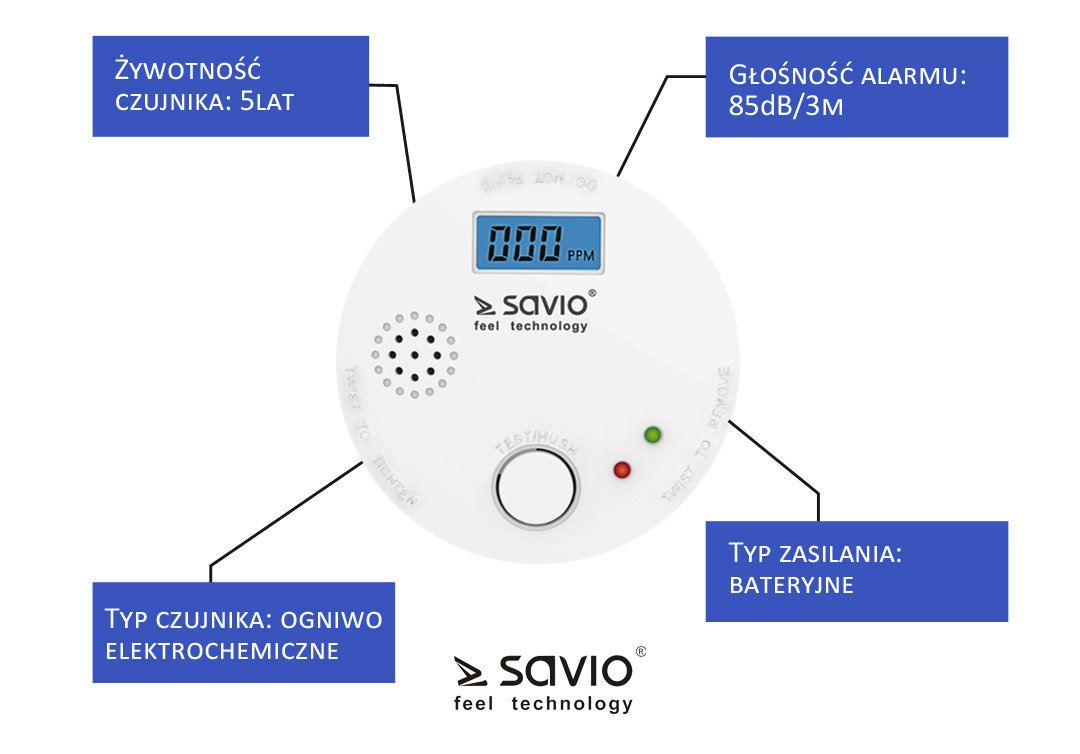 - Czujnik tlenku węgla (czadu) SAVIO PW-920