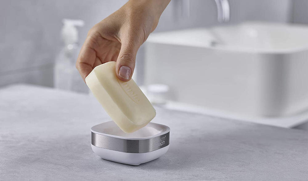 Zajmuje centralne miejsce na umywalce lub tuż obok niej - mowa tu o mydelniczce. Poznaj stylową i funkcjonalną dekorację łazienki, jaką jest mydelniczka JOSEPH JOSEPH Slim. Wykonana jest z tworzywa sztucznego w połączeniu ze stalą nierdzewną, dzięki czemu wpasuje się do każdej łazienki. Sprawdź i przekonaj się, że warto ją mieć. Długość: 9 cm, szerokość: 8 cm, a wysokość: 4 cm.