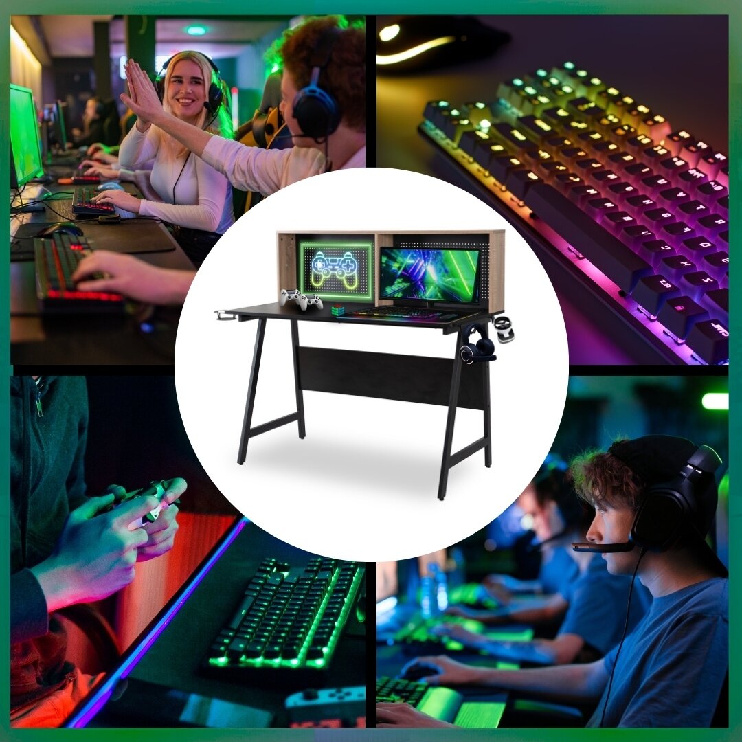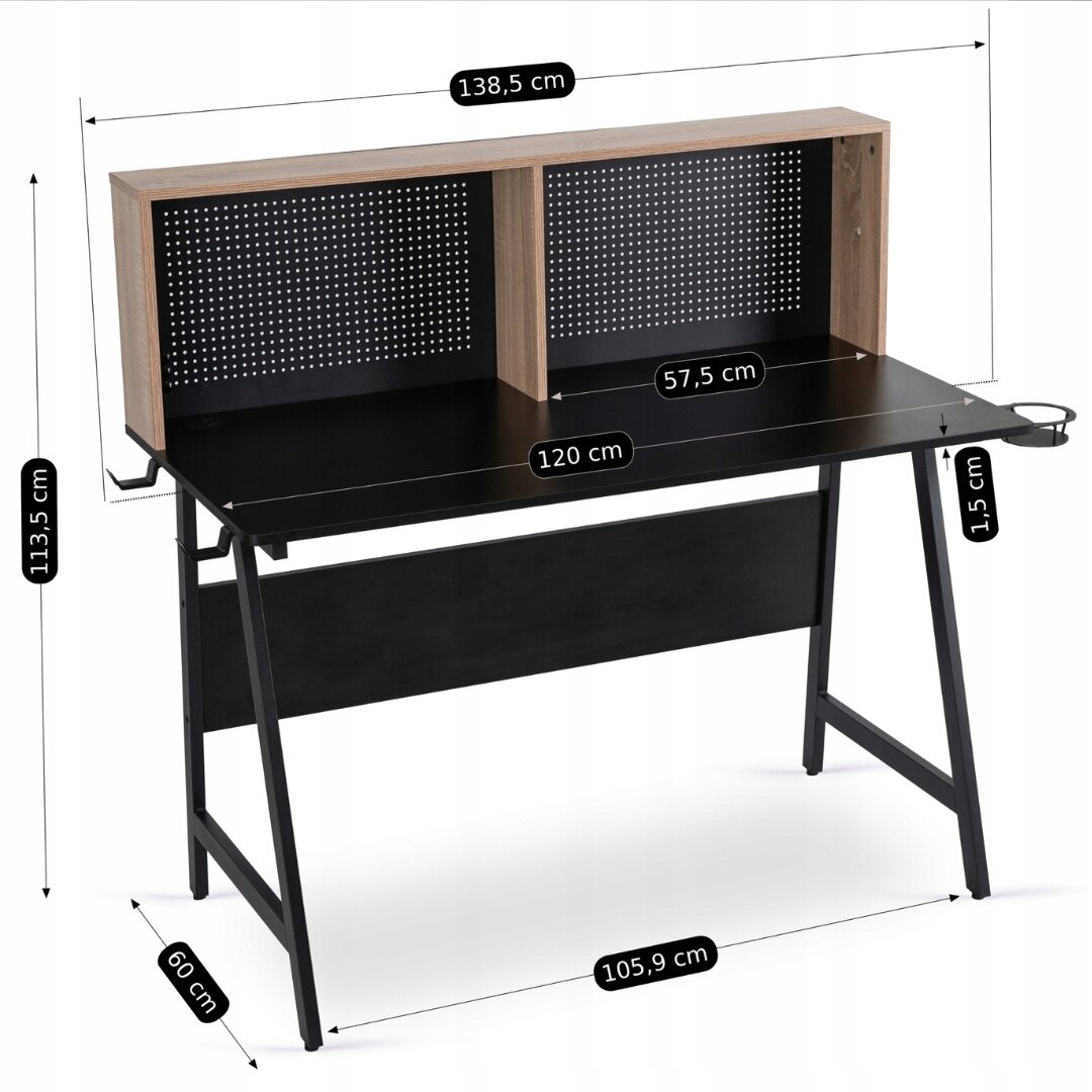 Biurko Gamingowe Młodzieżowe Czarne ICE Gracza z Uchwytami