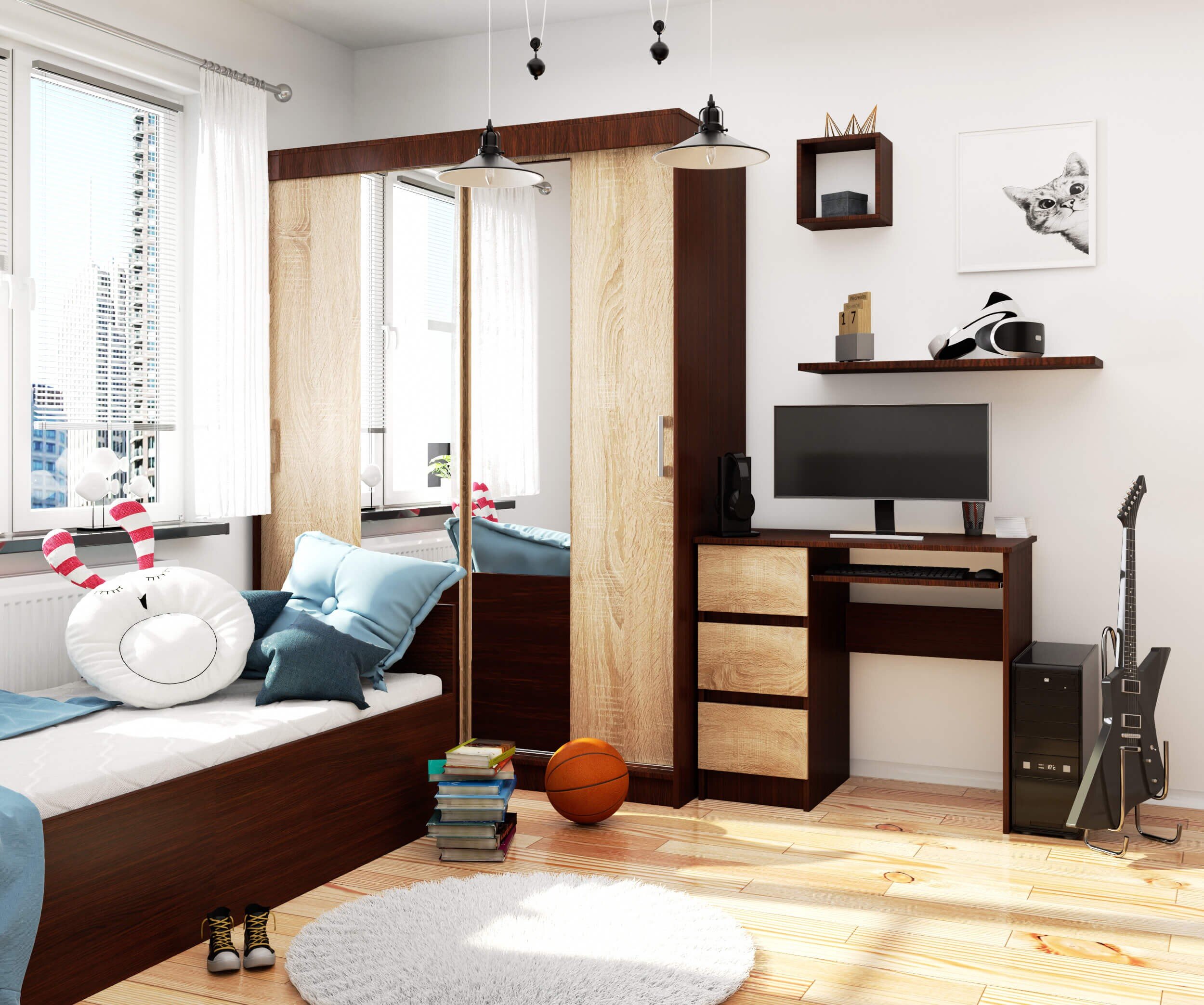 Biurko komputerowe A6 to model o klasycznej formie wyposażony w 3 szuflady oraz wysuwaną półkę na laptopa. Charakteryzuje się praktycznymi wymiarami, dzięki czemu łatwo wpasowuje się w mały pokój dziecięcy lub ciasne biuro. Biurko jest dostępne w różnych barwach, aby sprostać wszelkim wymaganiom. Biurko komputerowe A6 dostępne jest w wersji prawej i lewej. Biurko to ważny element każdego pokoju dziecięcego. Zapewnia komfort pracy, nauki i rozrywki, co jest istotne dla osób spędzających przy nim dużo czasu. Dobrze skonstruowane biurko powinno być ergonomiczne, funkcjonalne i estetyczne, a także wykonane z trwałych materiałów odpornych na codzienne użytkowanie. Biurka AKORD łączą wygodę i styl, oferując prosty, a jednocześnie nowoczesny projekt, który pasuje do każdego wnętrza. Dzięki przemyślanemu wykonaniu doskonale odpowiadają na potrzeby użytkowników, zapewniając zadowolenie przez wiele lat. To idealne rozwiązanie dla osób ceniących trwałość i elegancję w jednym.