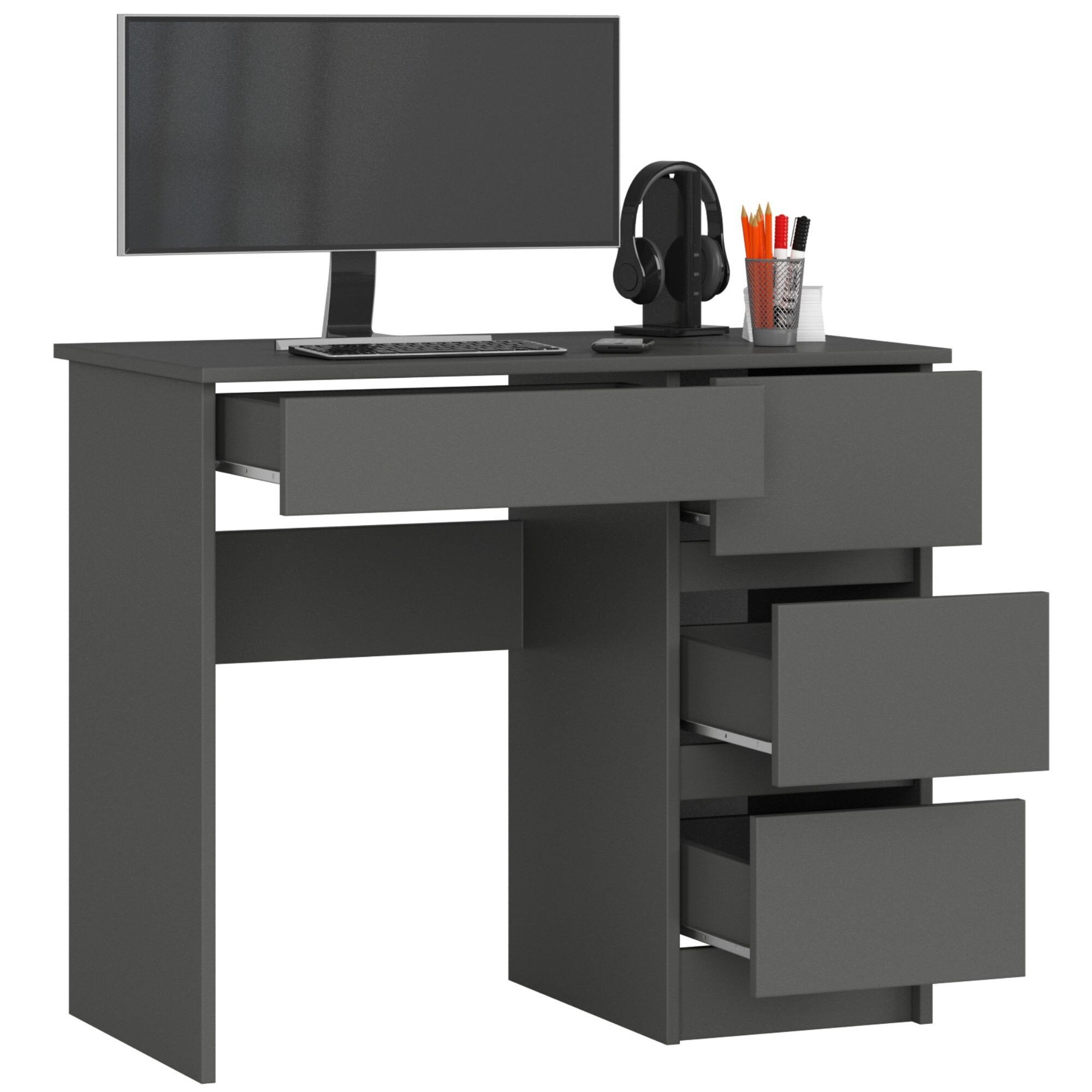 - Biurko komputerowe AKORD A7 Grafit Szary 90 cm prawe 4 szuflady kolor Grafit Szary mat 90x50x77 cm