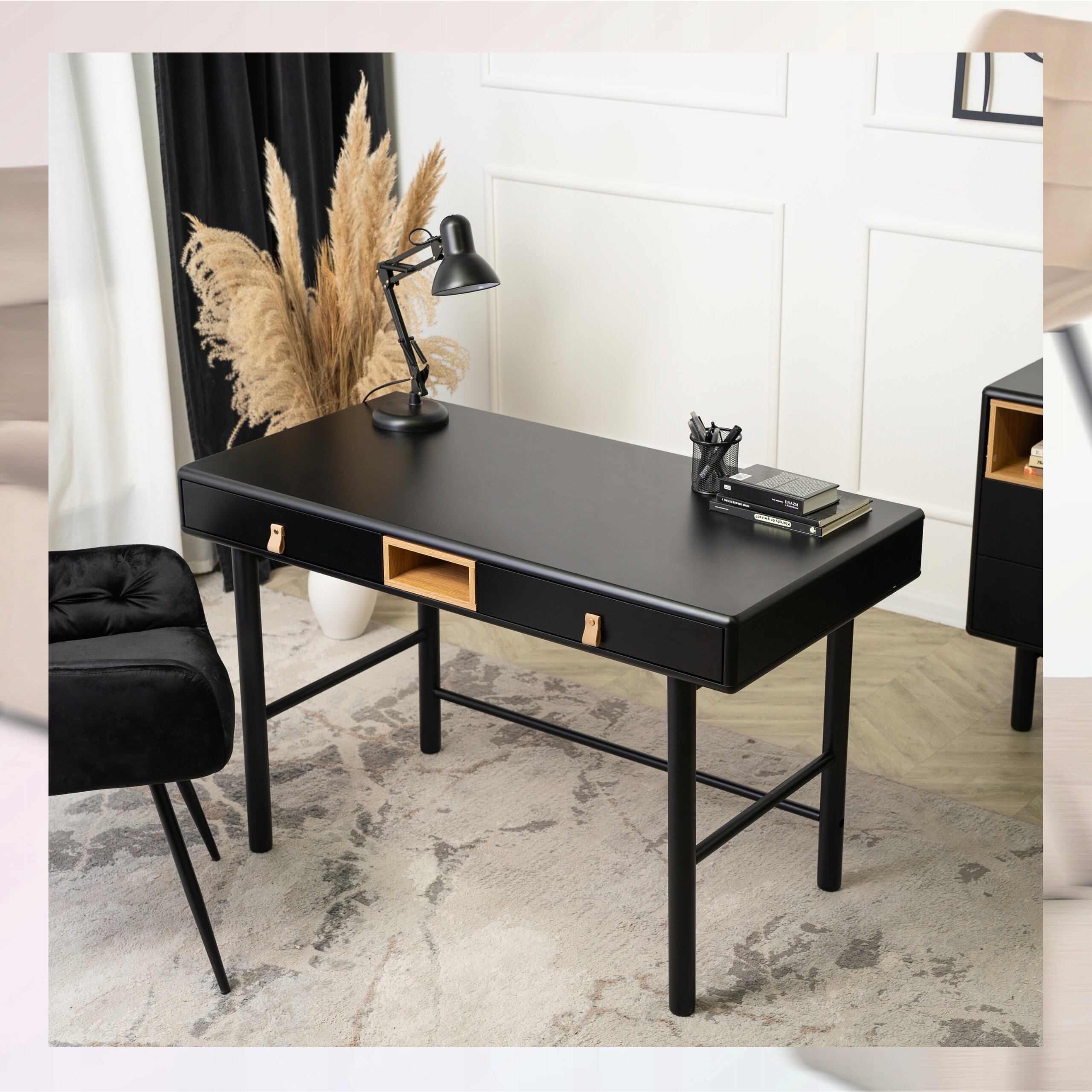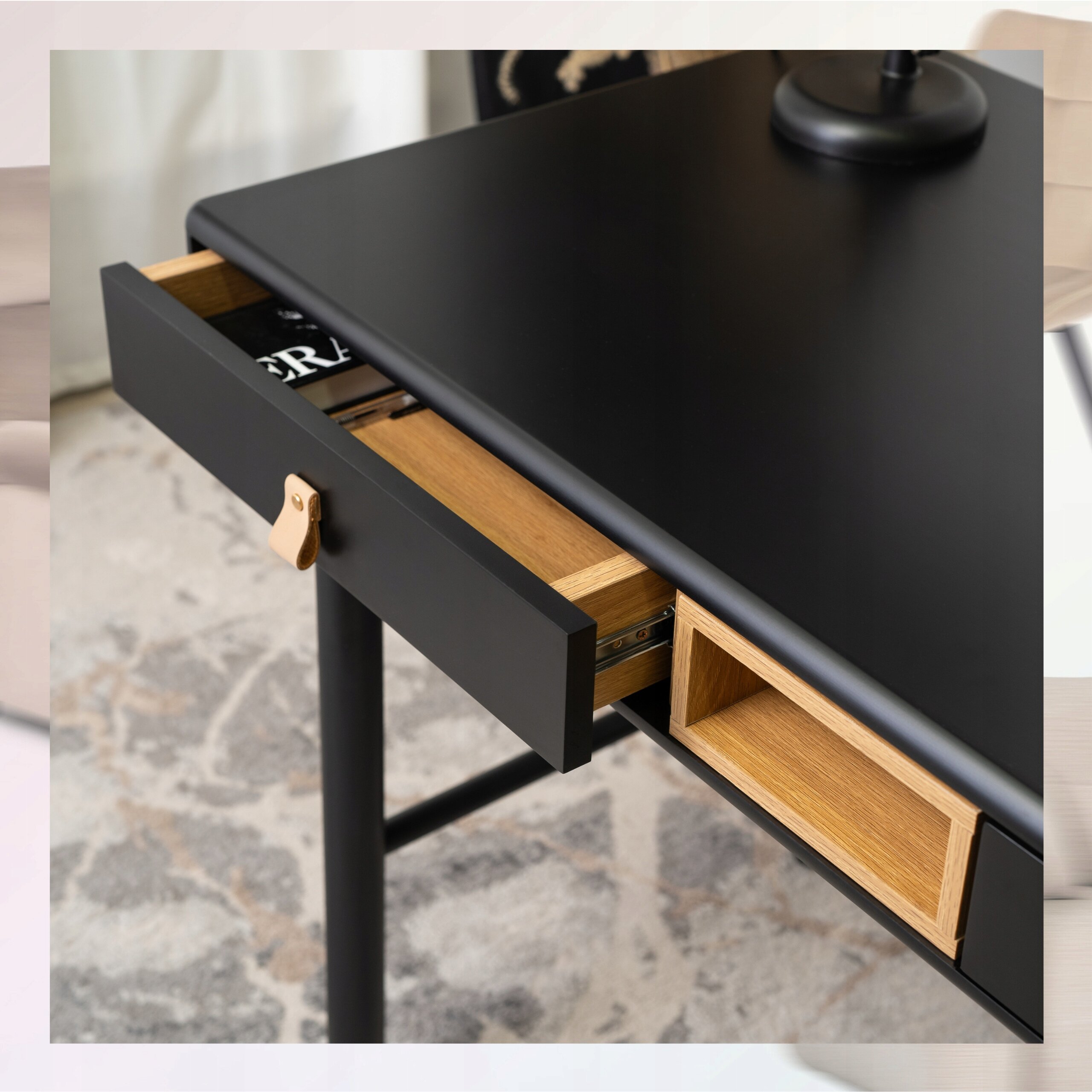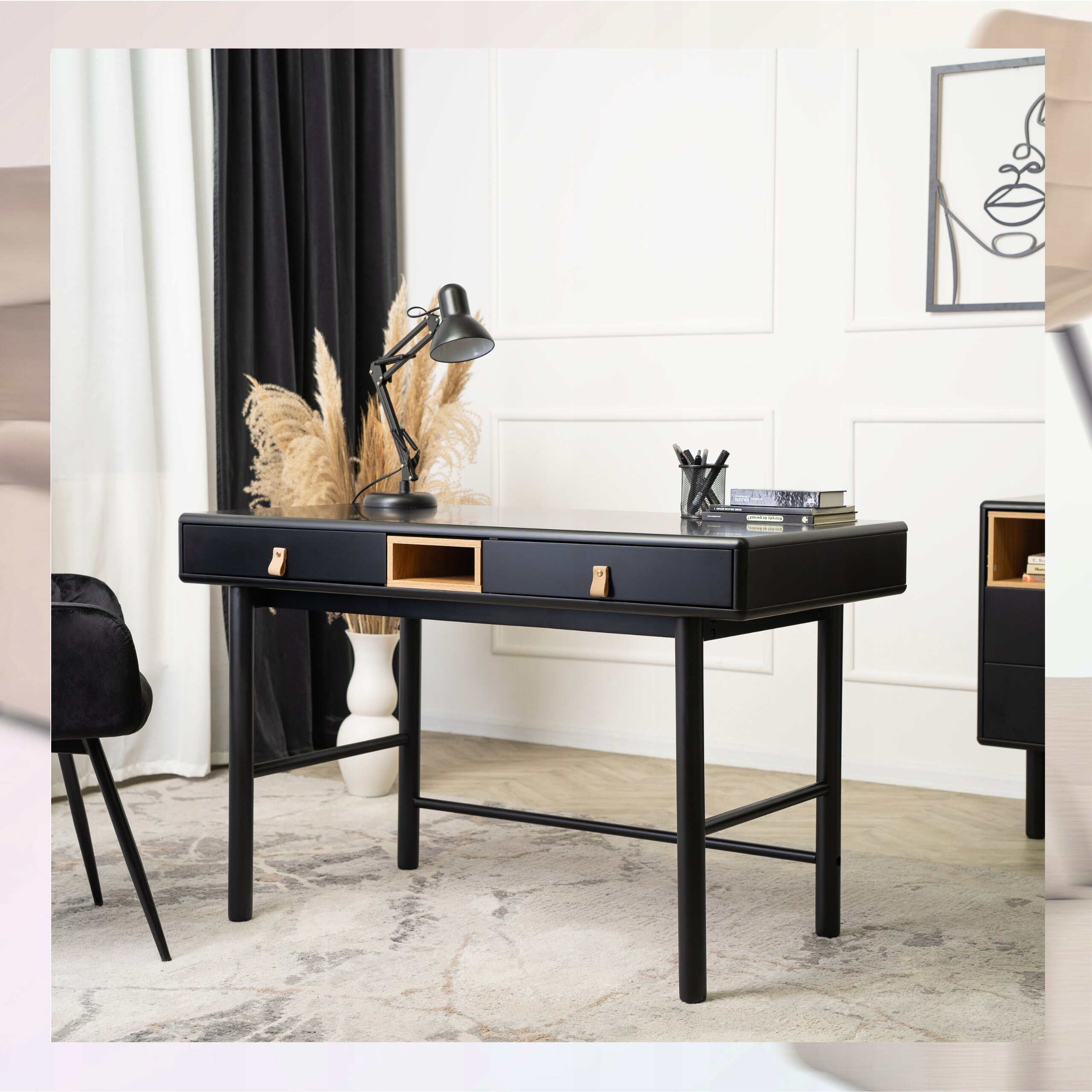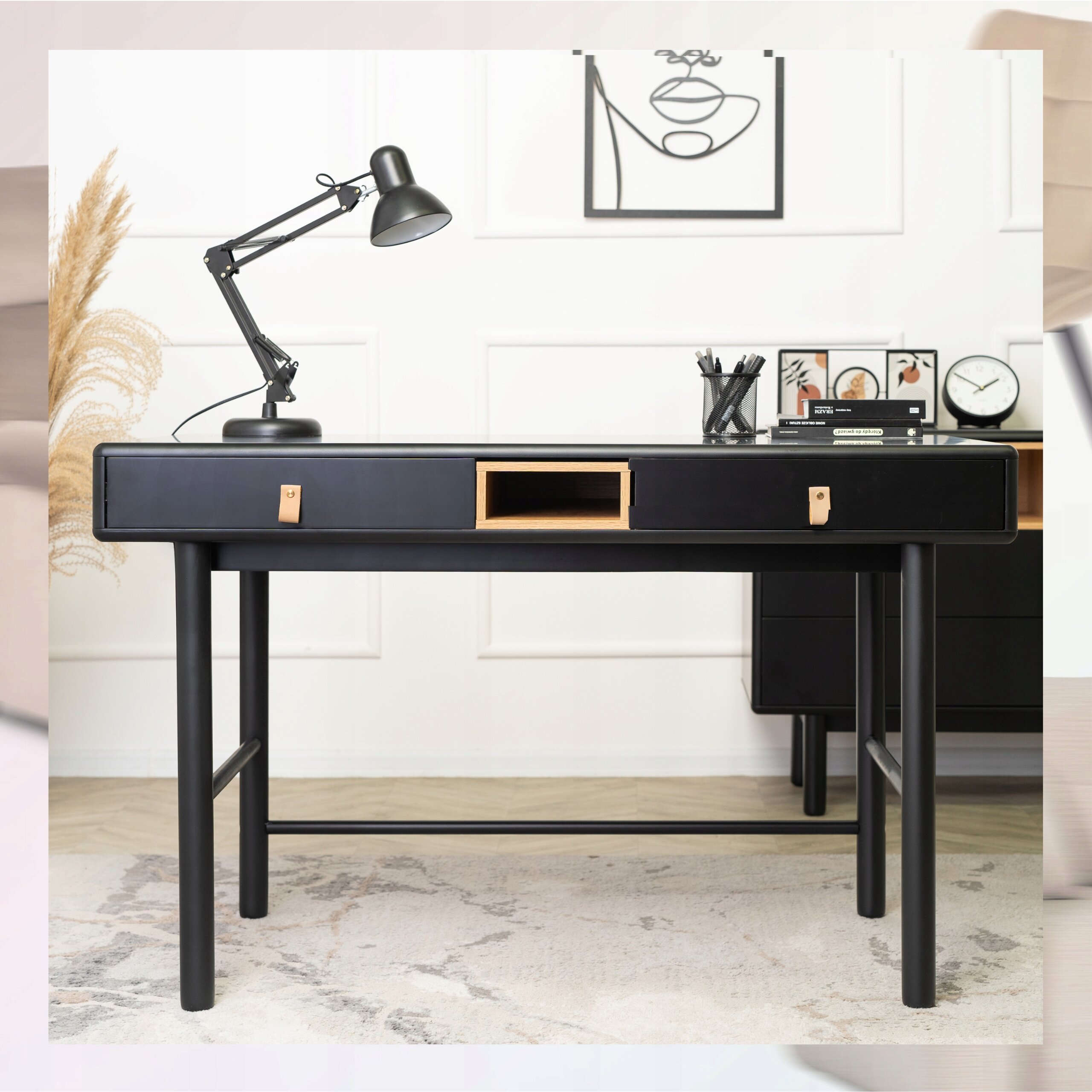 Biurko Loft z Szufladami Czarne Drewniane Skandynawskie 120 ATLAS