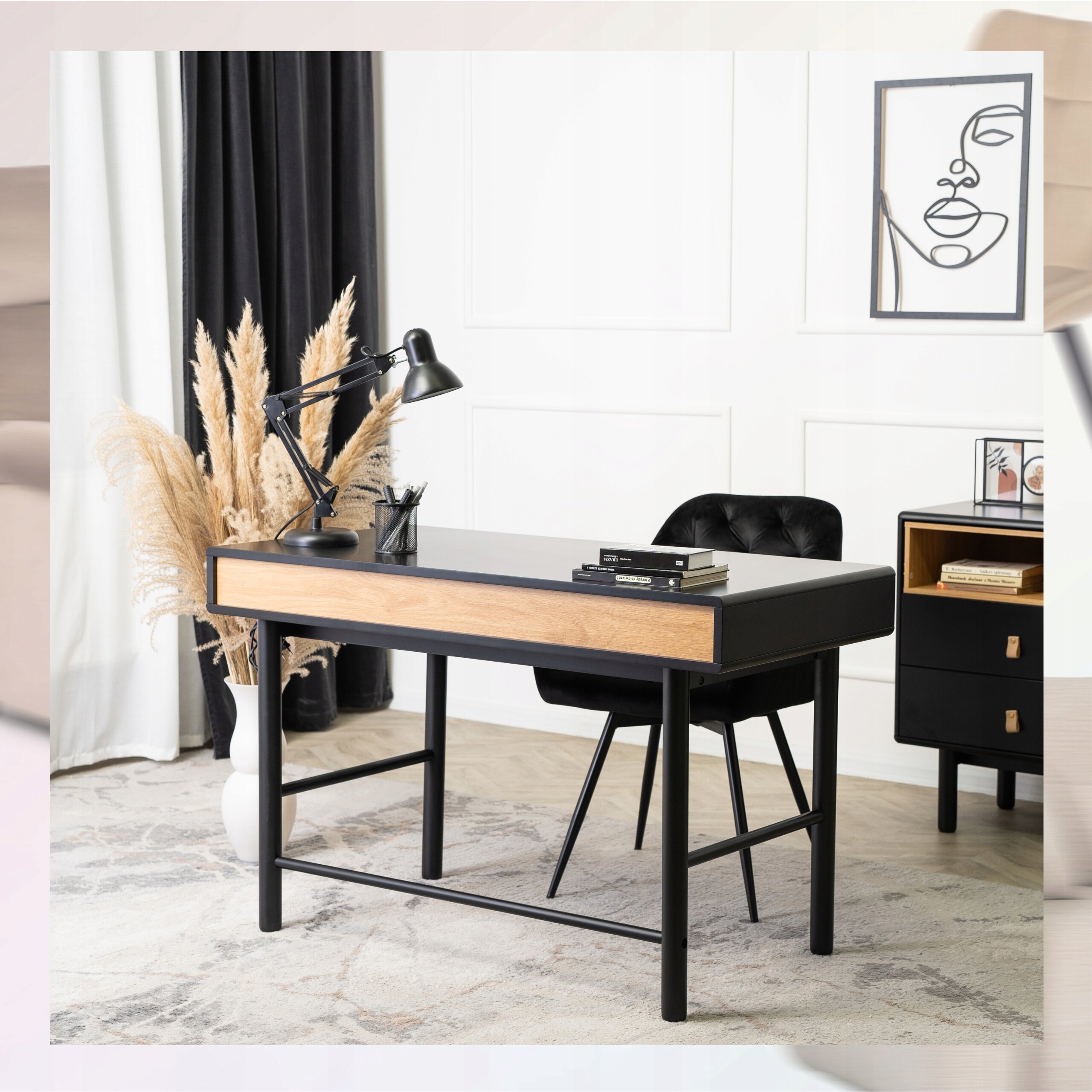 - Biurko Loft z Szufladami Czarne Drewniane Skandynawskie 120 ATLAS
