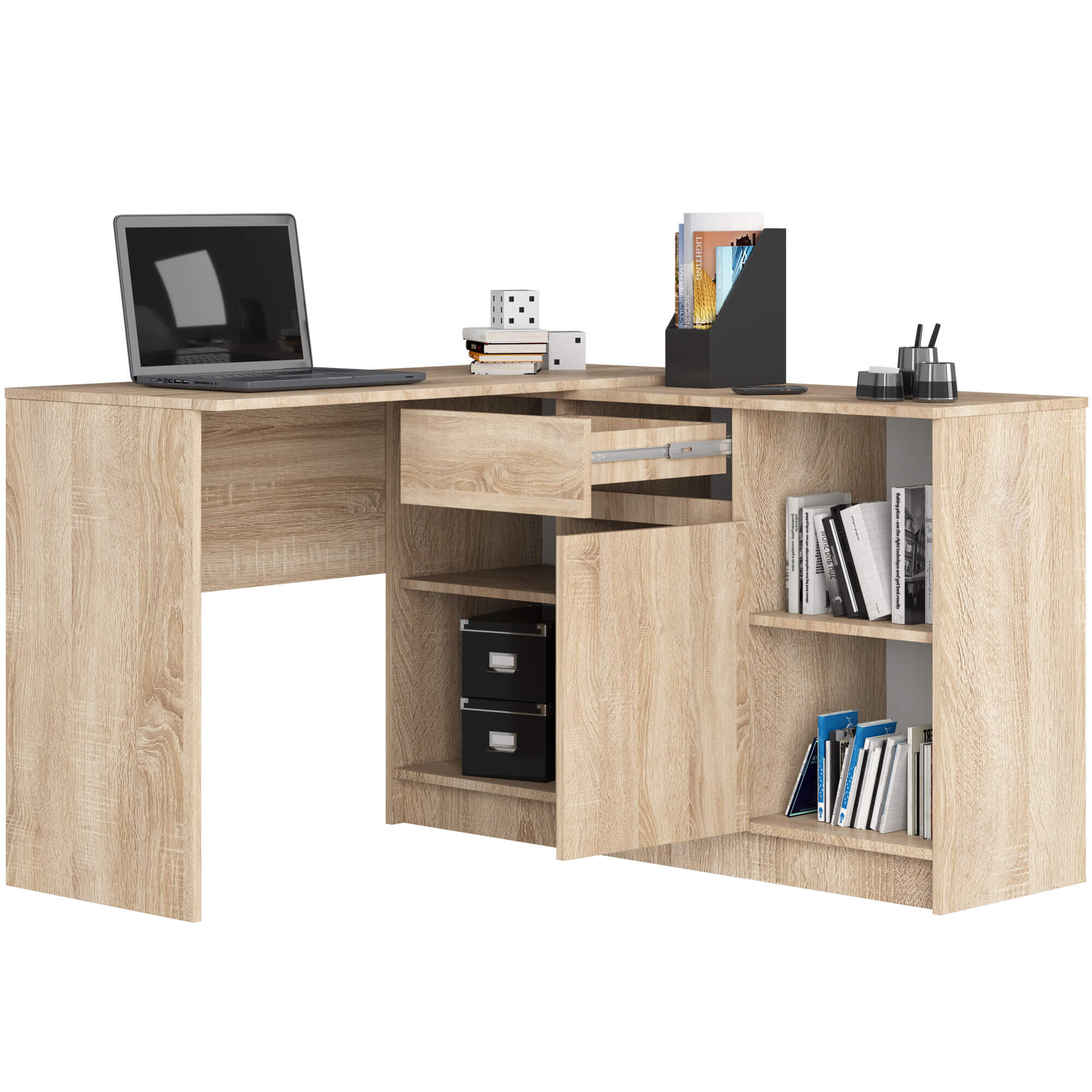 Biurko narożne AKORD B17 Dąb Sonoma 120 cm Zestaw z komodą 1 drzwi 1 szuflada kolor Dąb Sonoma mat 6 półek 120x126x79 cm