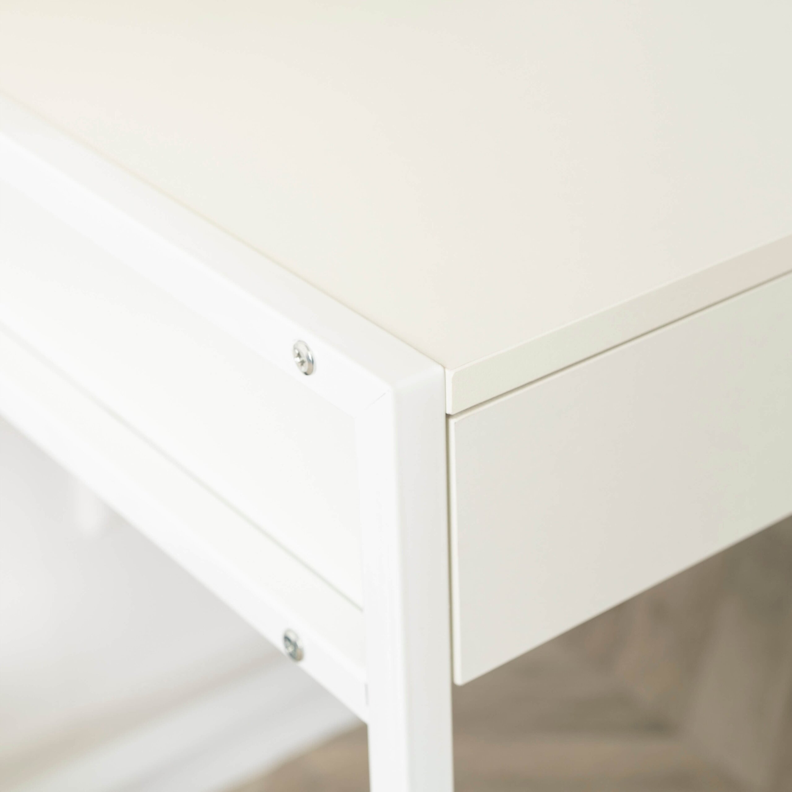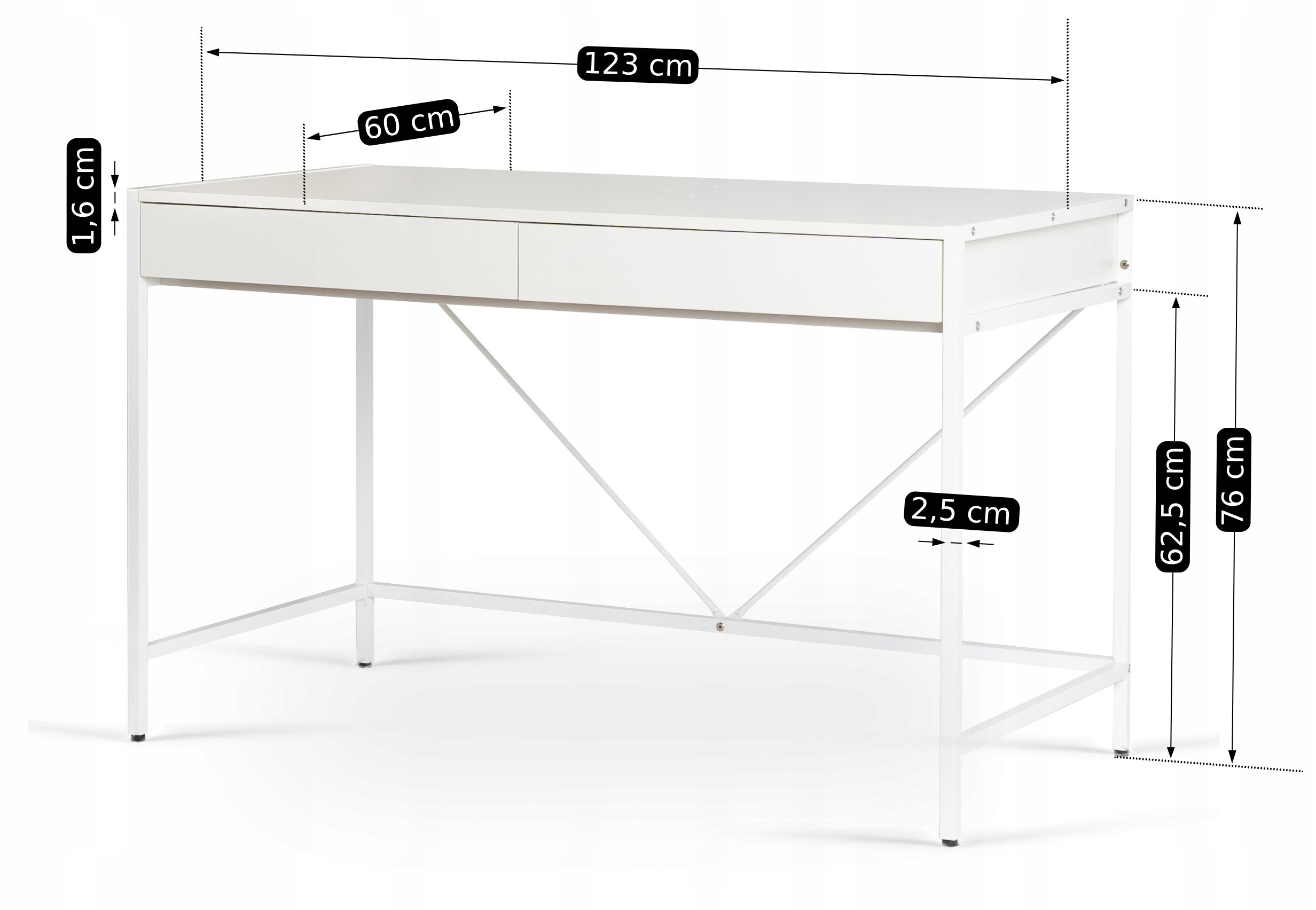 Blat wykonano z niezwykłą starannością. Wysokiej jakości płyta MDF, którą dodatkowo pokryto warstwą laminatu, obrzeża ABS, a także metalowy szkielet również w kolorze białym w efekcie sprawiają, że biurko prezentuje się bardzo ładnie.