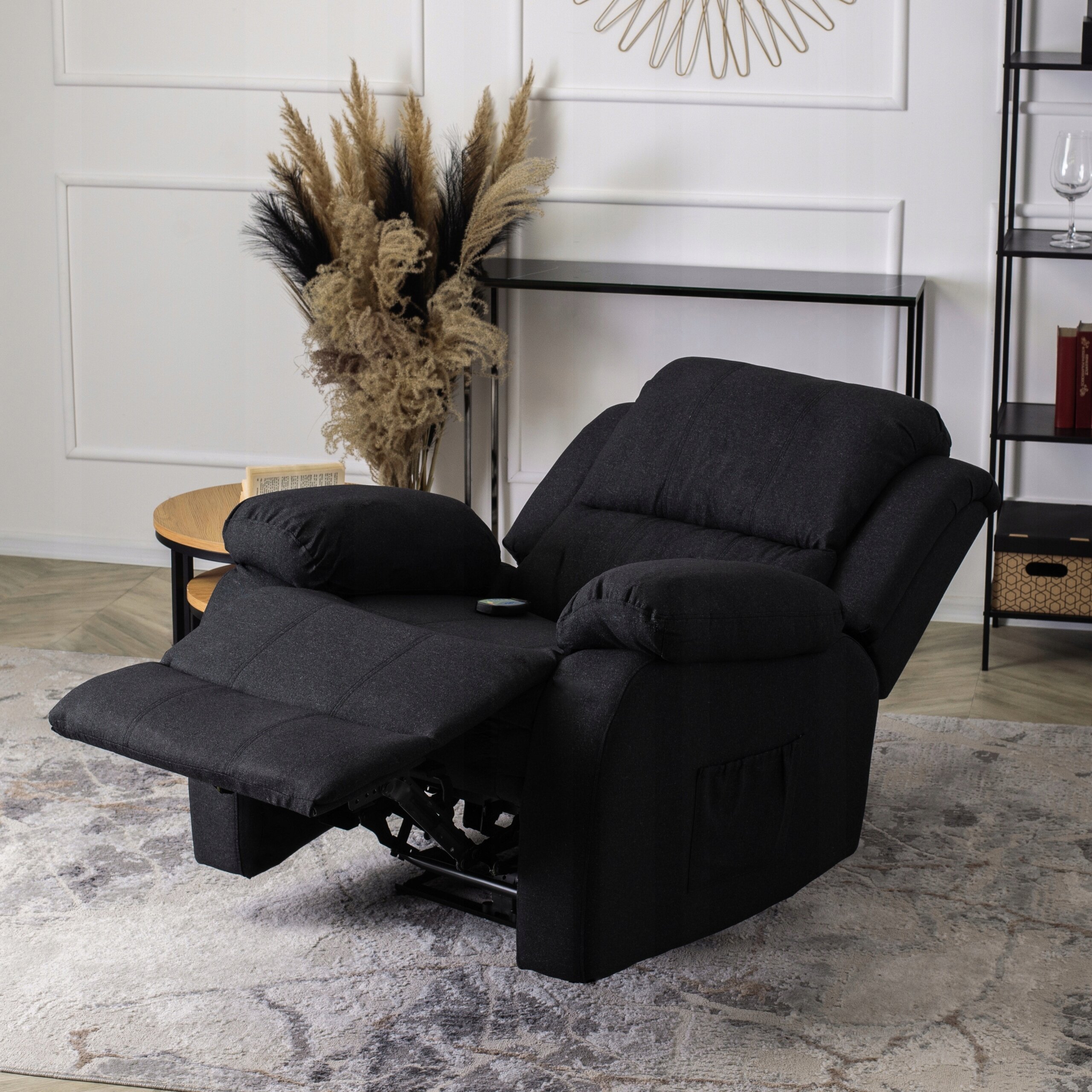 Fotel Masujący Elektryczny Rozkładany Tkanina Wypoczynkowy Czarny BONO 2