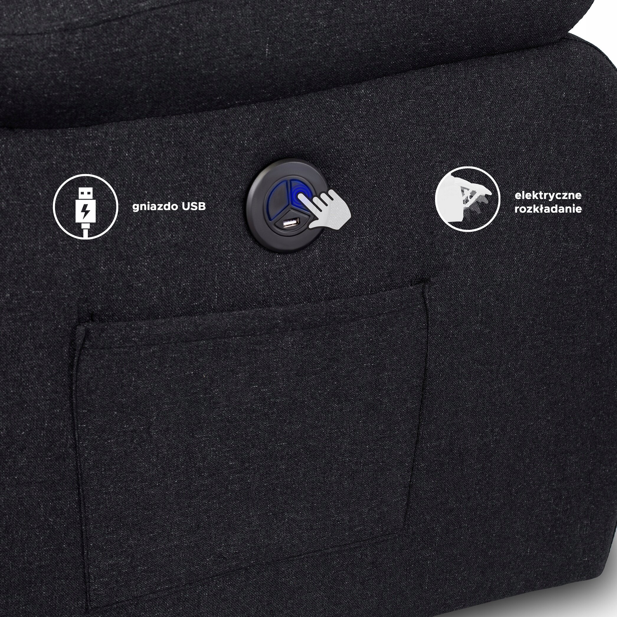 Fotel wyposażony został w elektryczne rozkładanie, więc jeśli nie lubisz foteli z klasycznym, ręcznym mechanizmem rozkładania to ten model będzie dla Ciebie idealny! Elektryczne rozkładanie jest płynne, ciche i przyjemne.