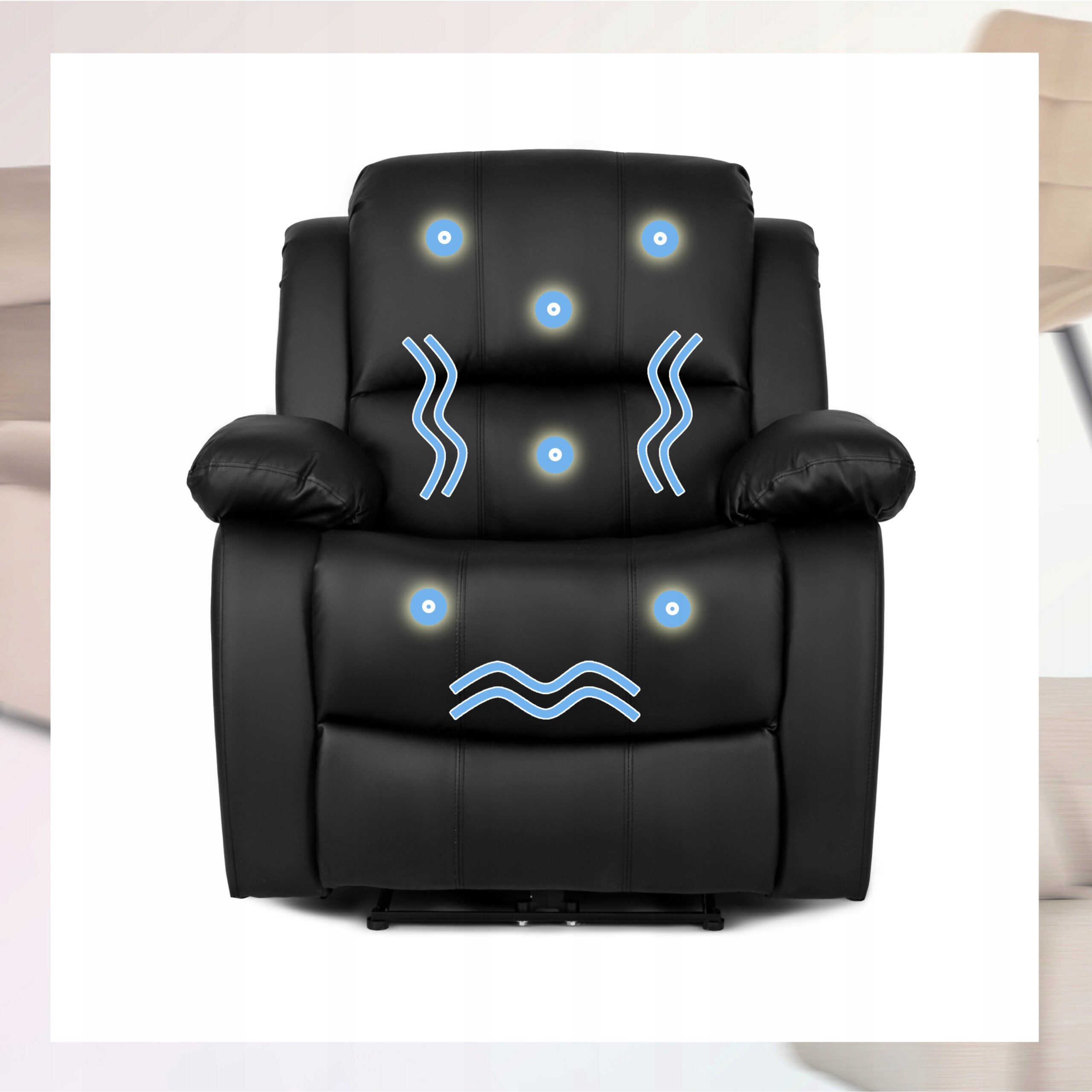 Fotel Masujący Elektryczny Rozkładany Wypoczynkowy Ekoskóra Czarny BONO