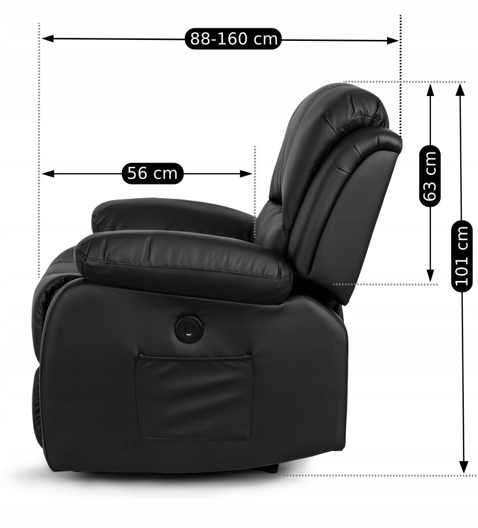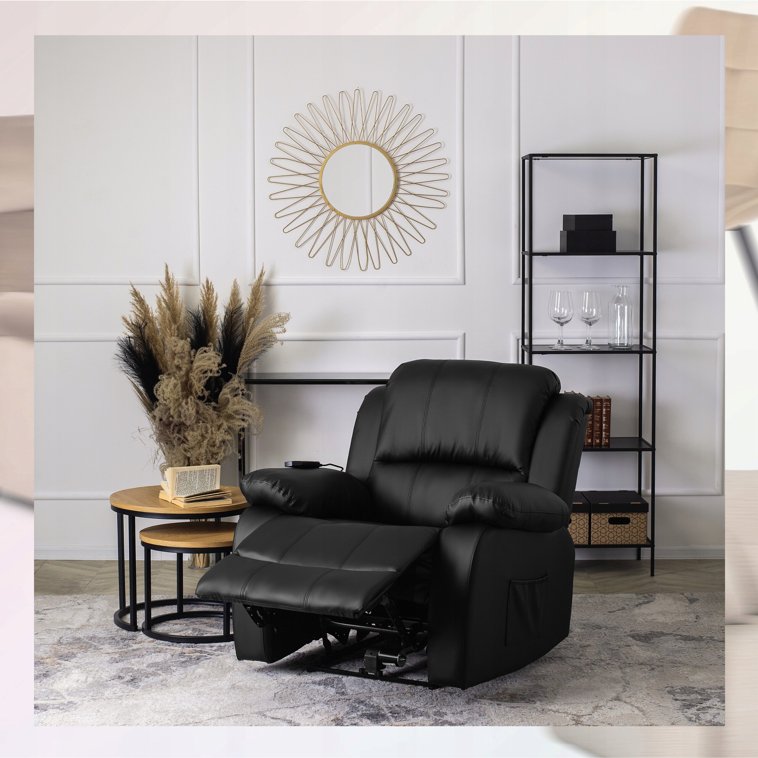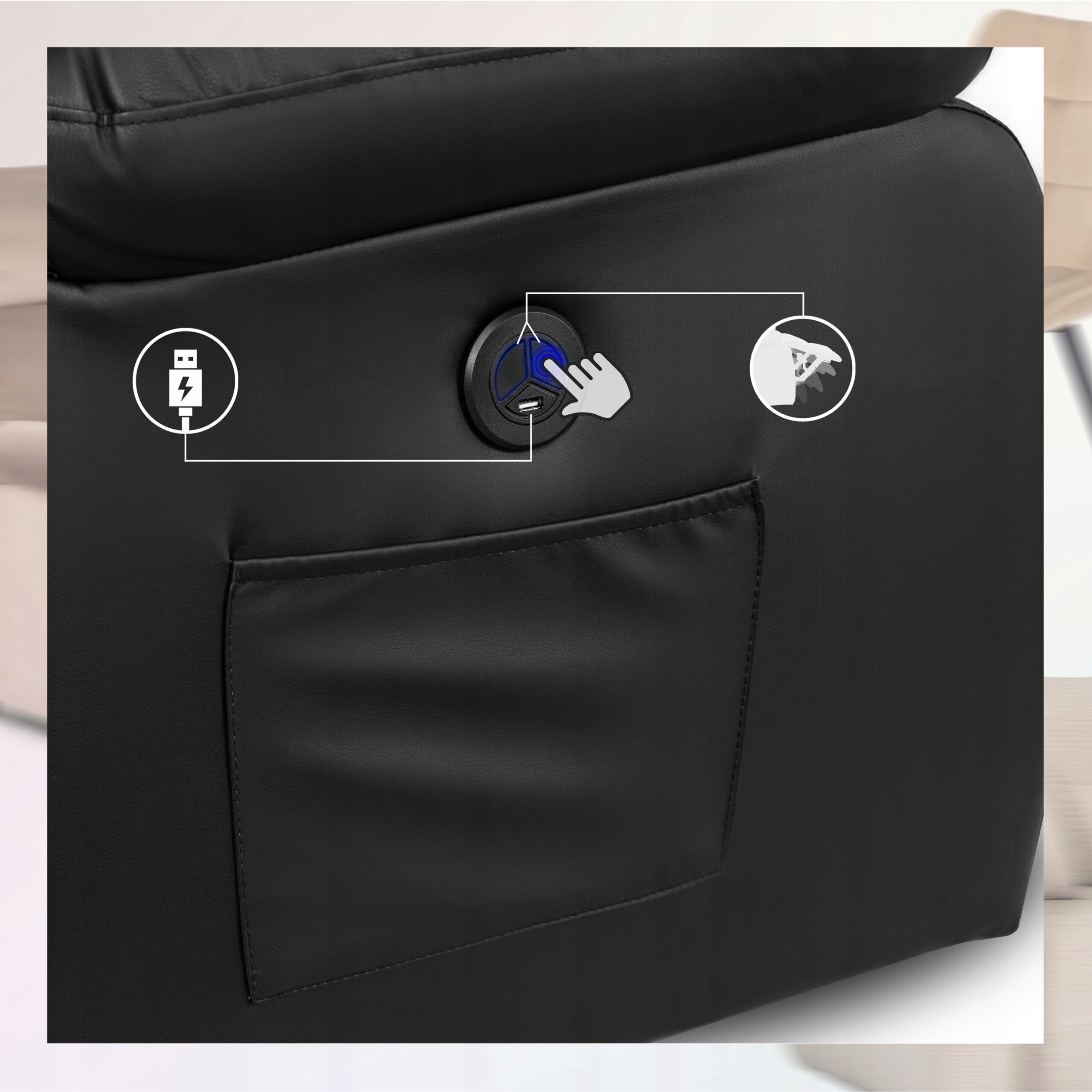 - Fotel wypoczynkowy z funkcją masażu BONO (tap. ekoskóra) w kolorze czarnym
