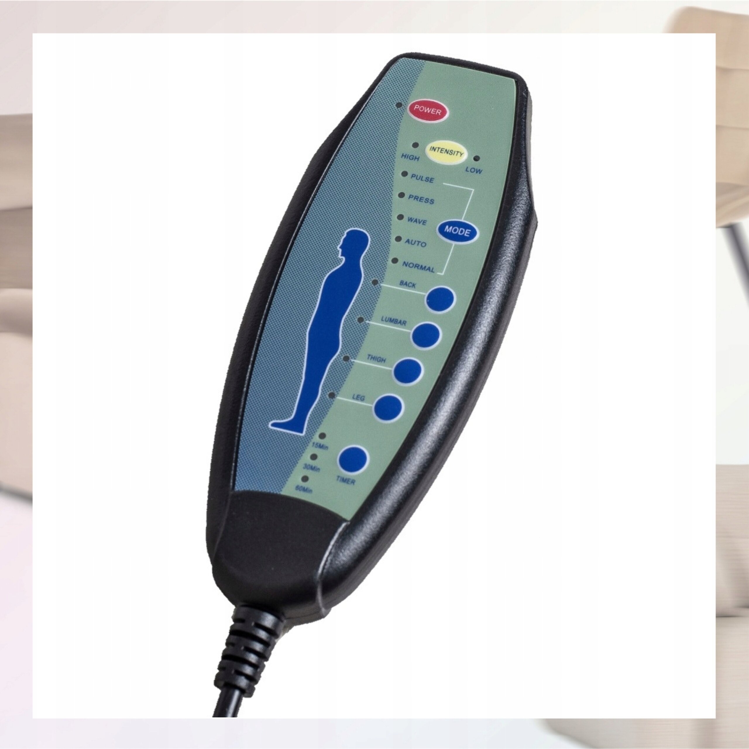 Fotel oferuje wybór jednej z 4 stref masowania oraz 5 programów masażu z regulacją intensywności.