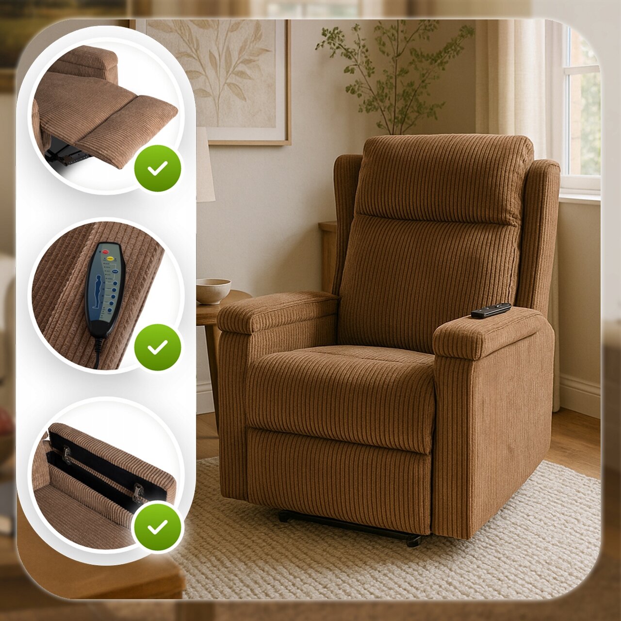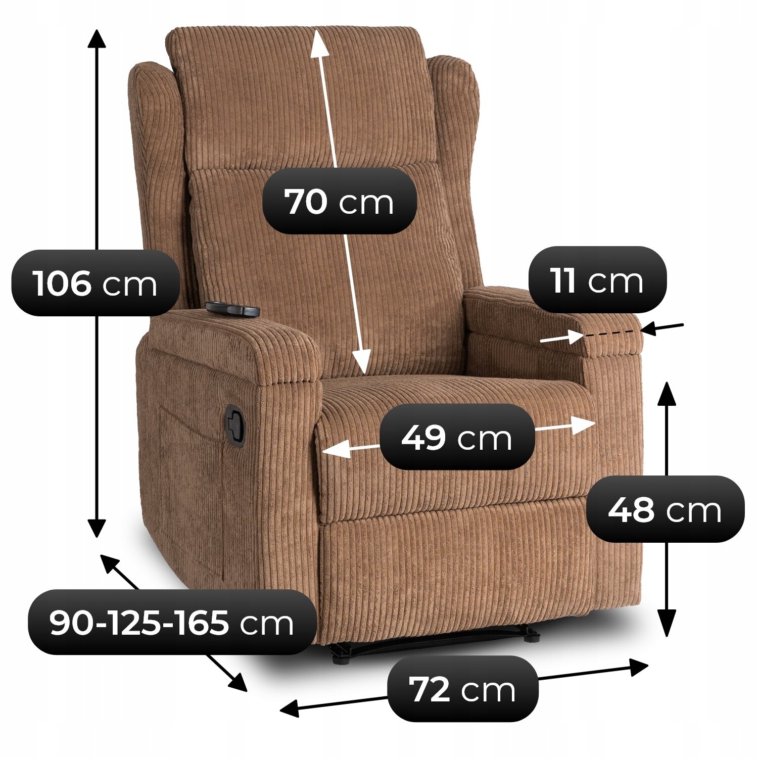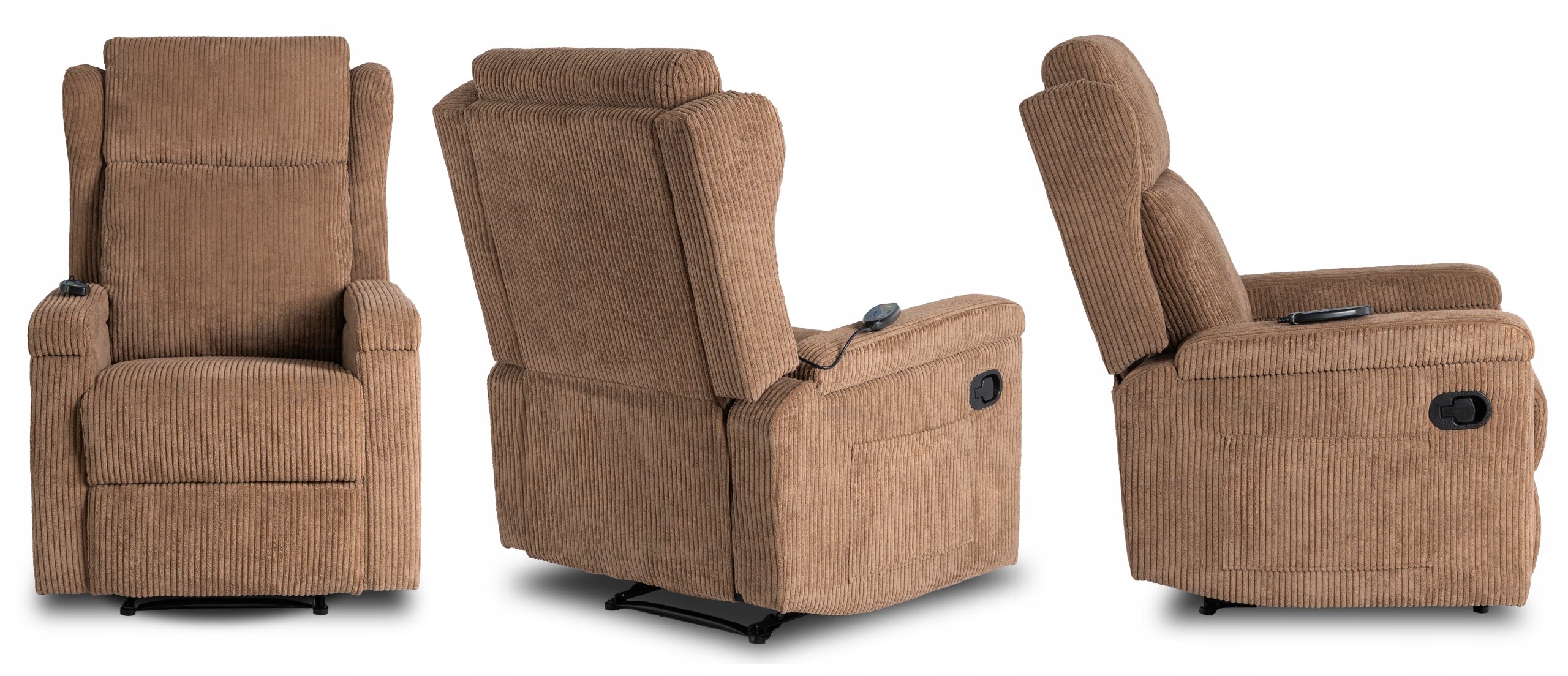 - Fotel Masujący Rozkładany Wypoczynkowy Do Salonu Sztruks Brązowy SEBASTIAN