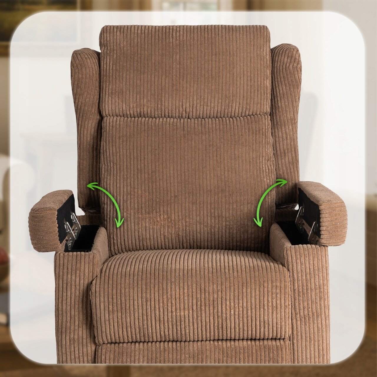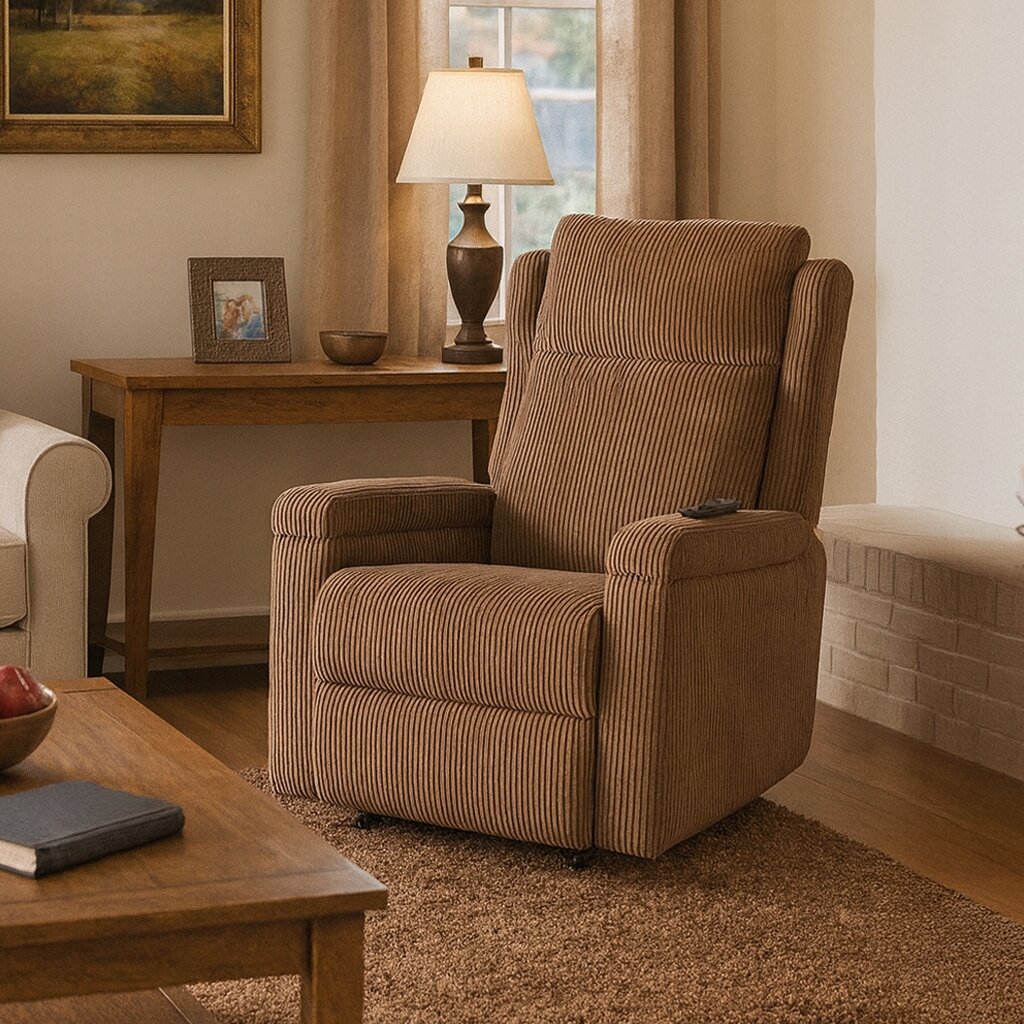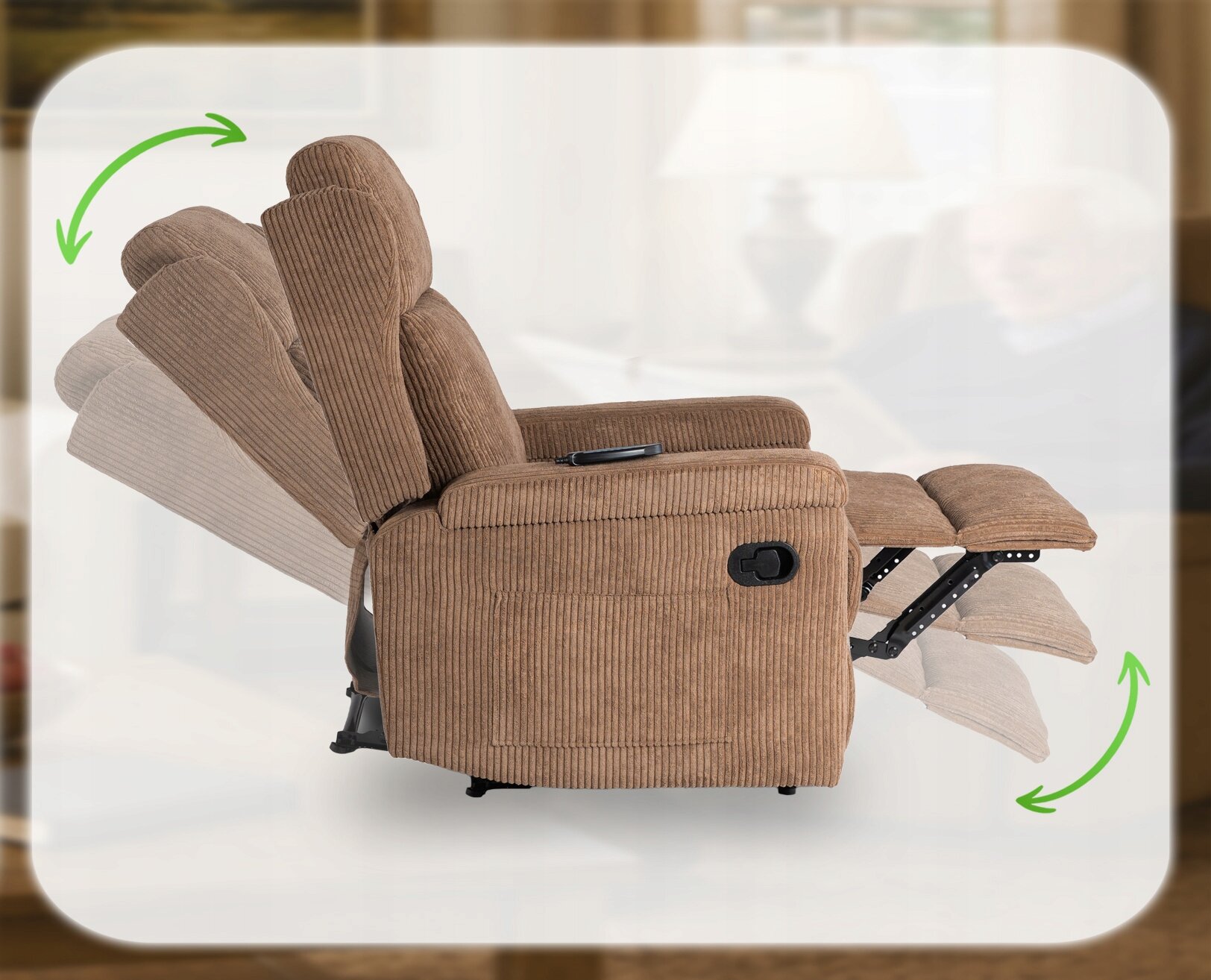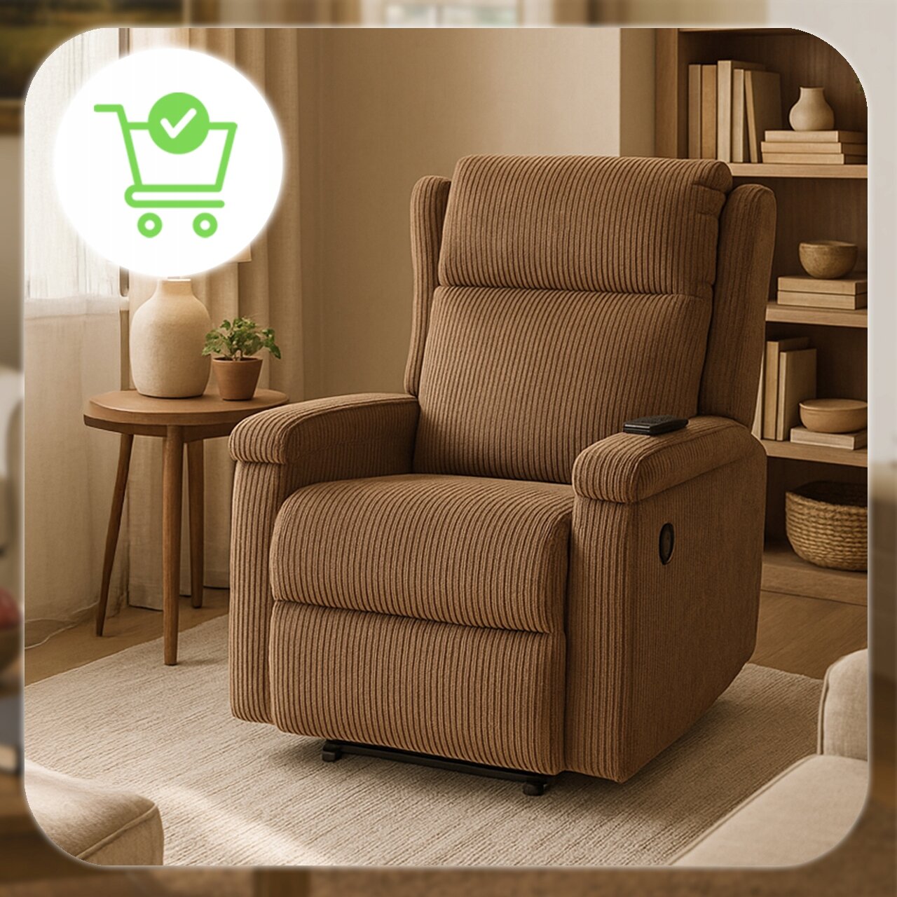 - Fotel Masujący Rozkładany Wypoczynkowy Do Salonu Sztruks Brązowy SEBASTIAN