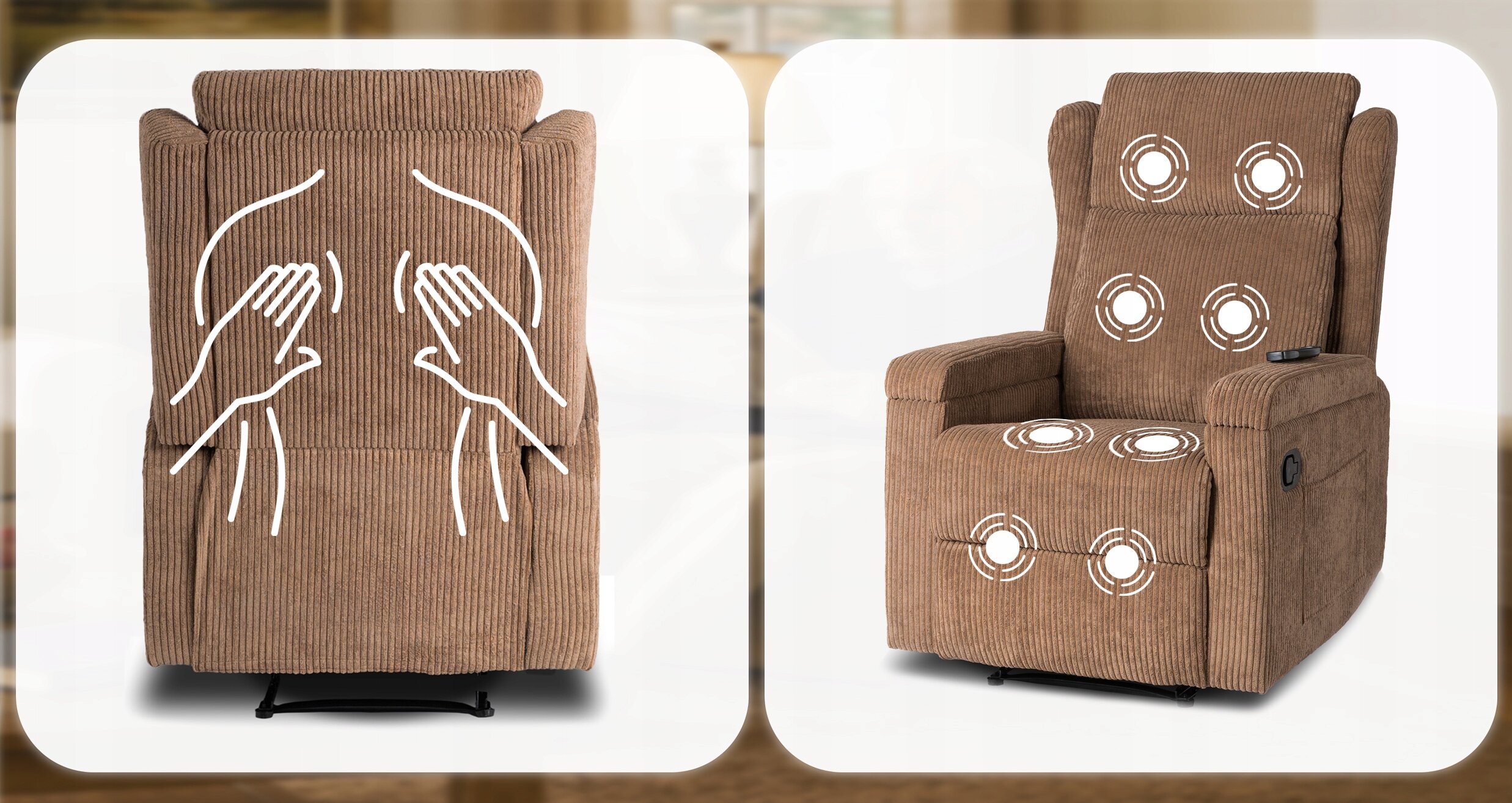 Fotel Masujący Rozkładany Wypoczynkowy Do Salonu Sztruks Brązowy SEBASTIAN