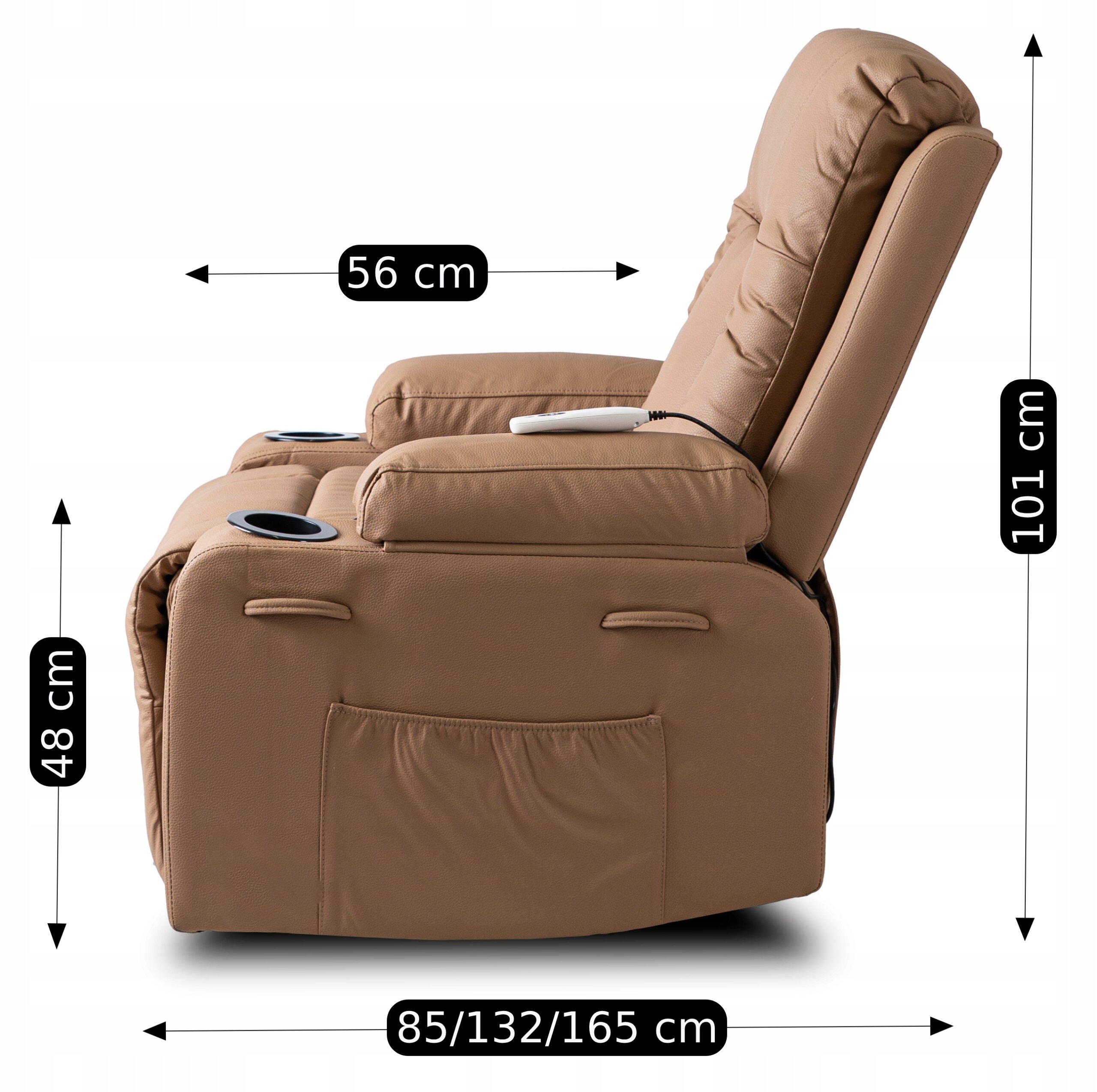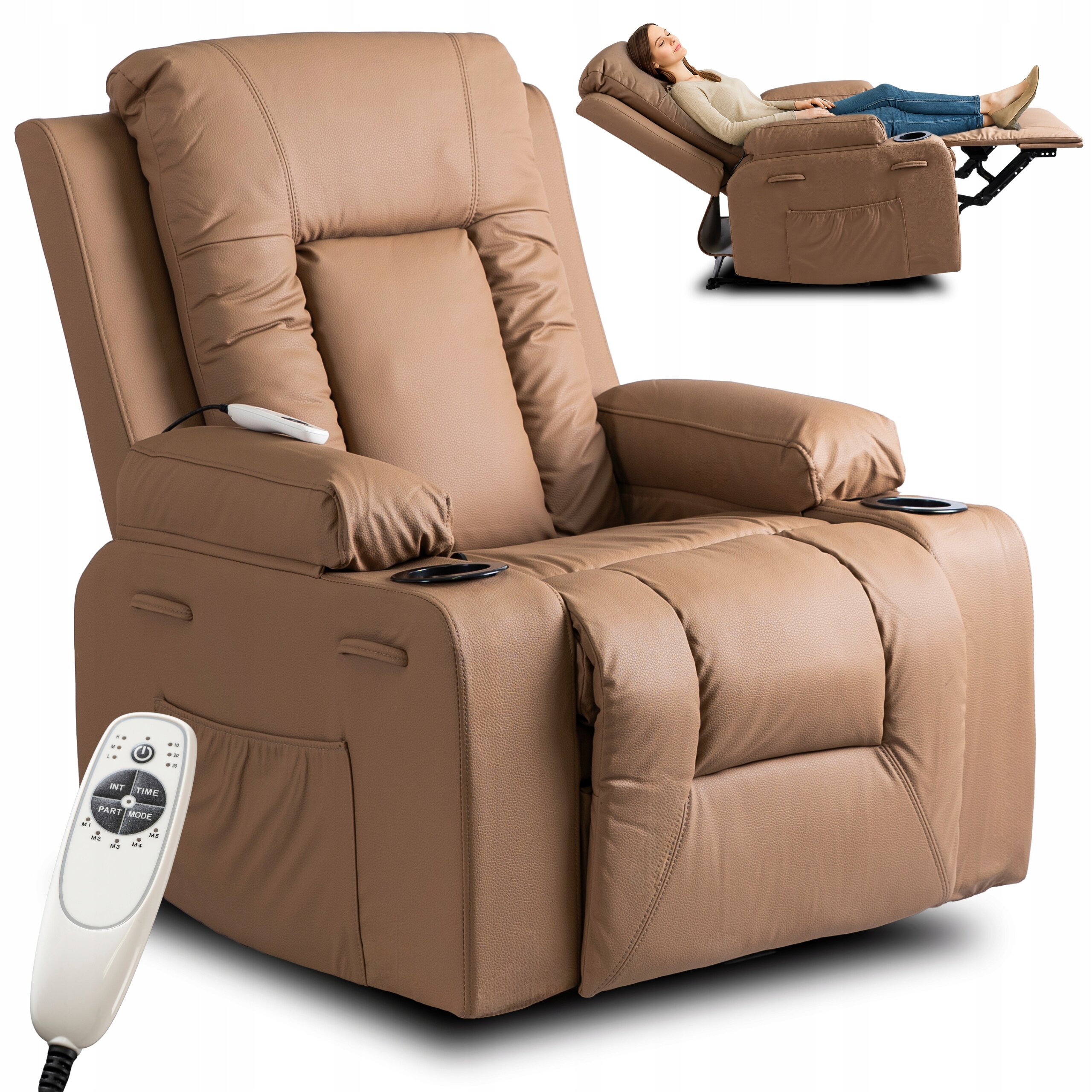 - Fotel rozkładany z funkcją masażu BOX w kolorze karmel