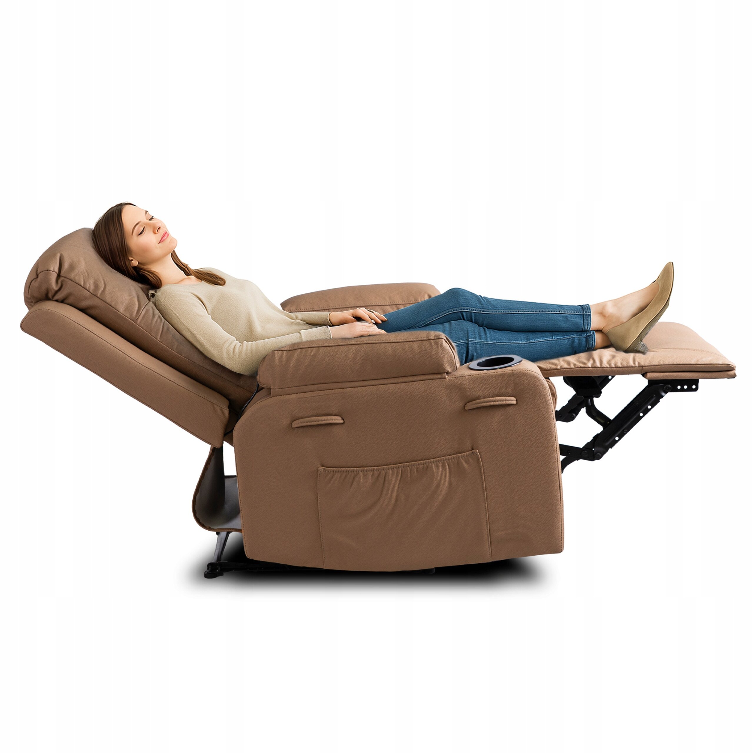 - Fotel Masujący Rozkładany Wypoczynkowy z Podnóżkiem Do Salonu Karmel BOX