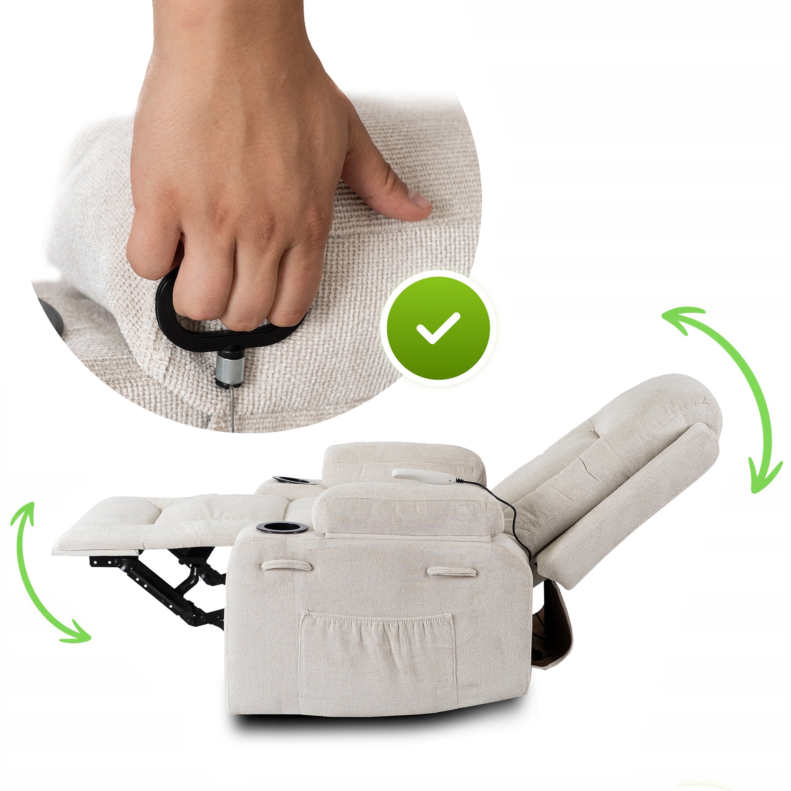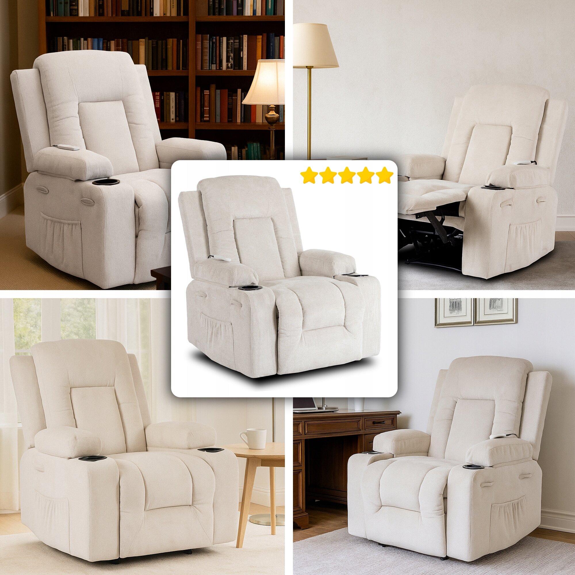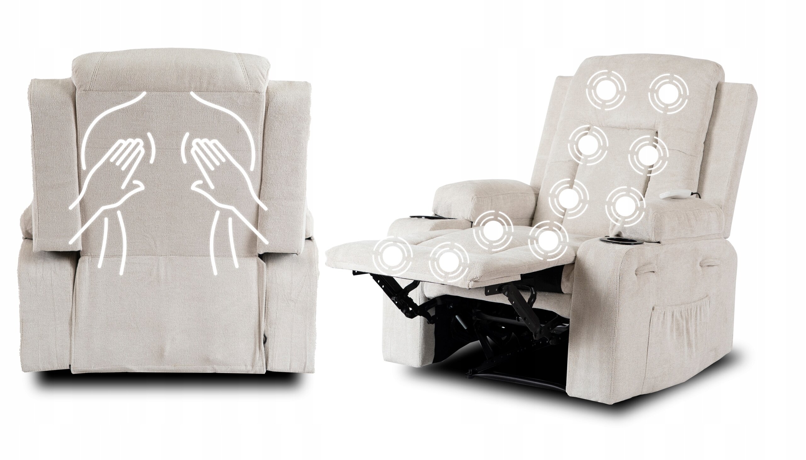 Fotel Masujący Rozkładany Wypoczynkowy z Podnóżkiem Tkanina Kremowy BOX 2