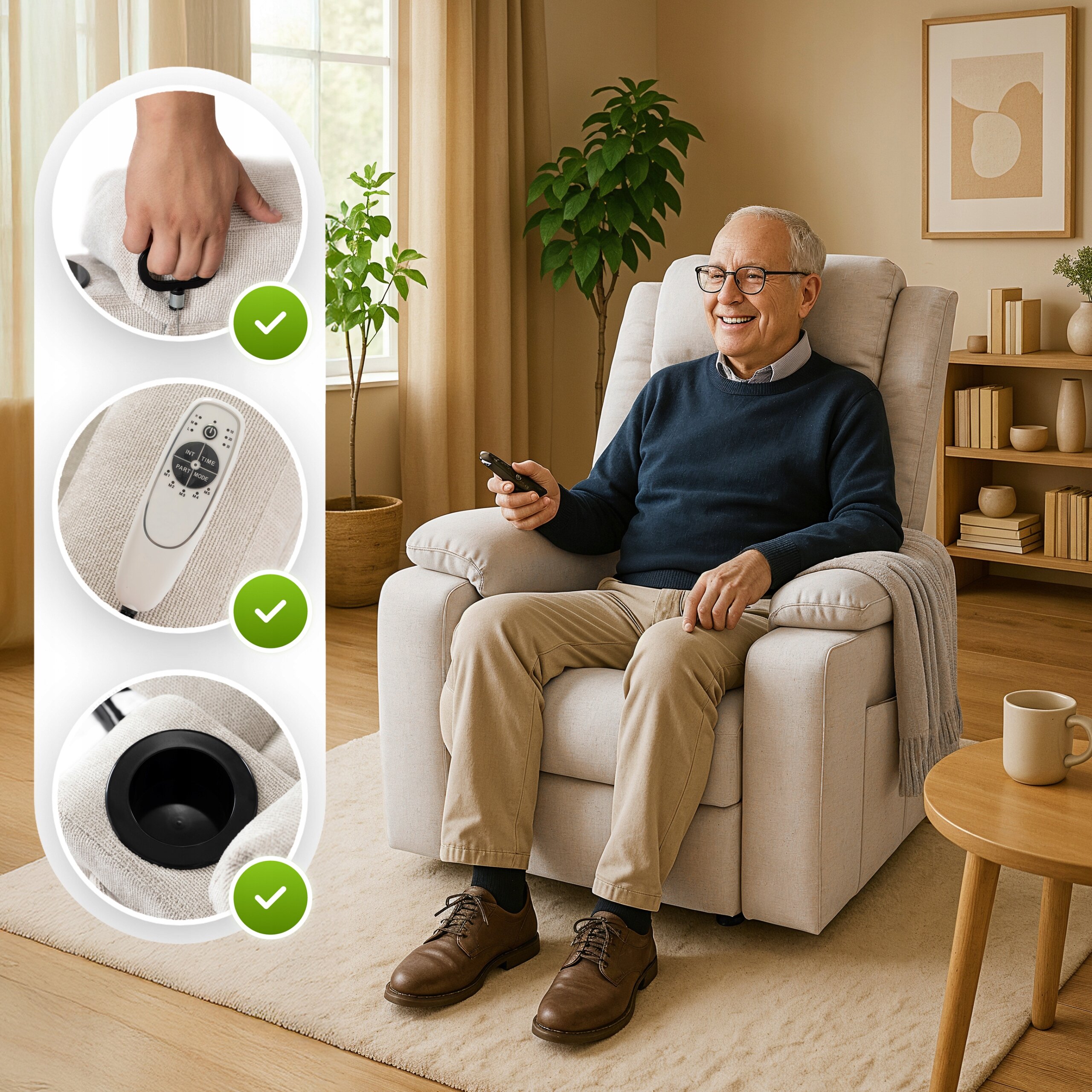 Wszystkimi funkcjami sterujesz intuicyjnym pilotem, który zapewnia pełną kontrolę bez konieczności wstawania z fotela. Komfort, relaks i regeneracja – wszystko na wyciągnięcie ręki.