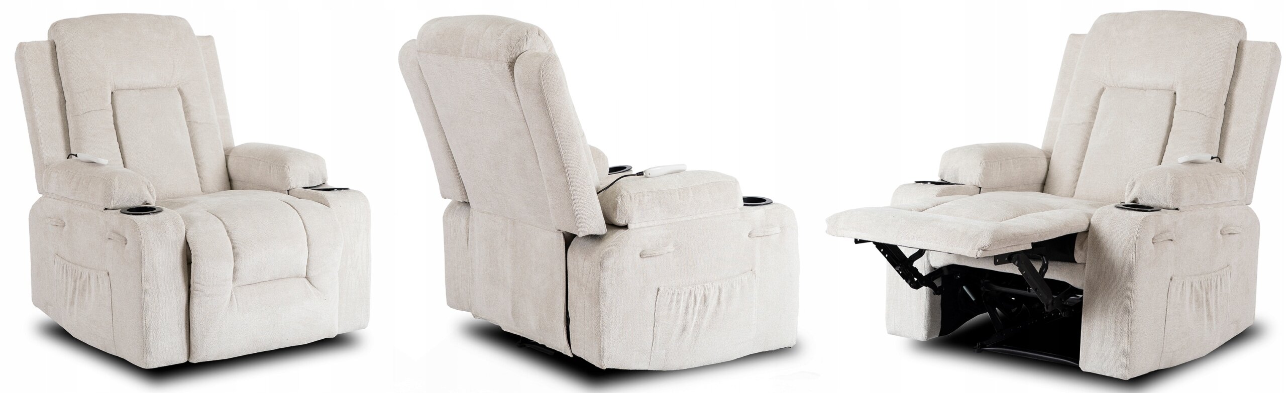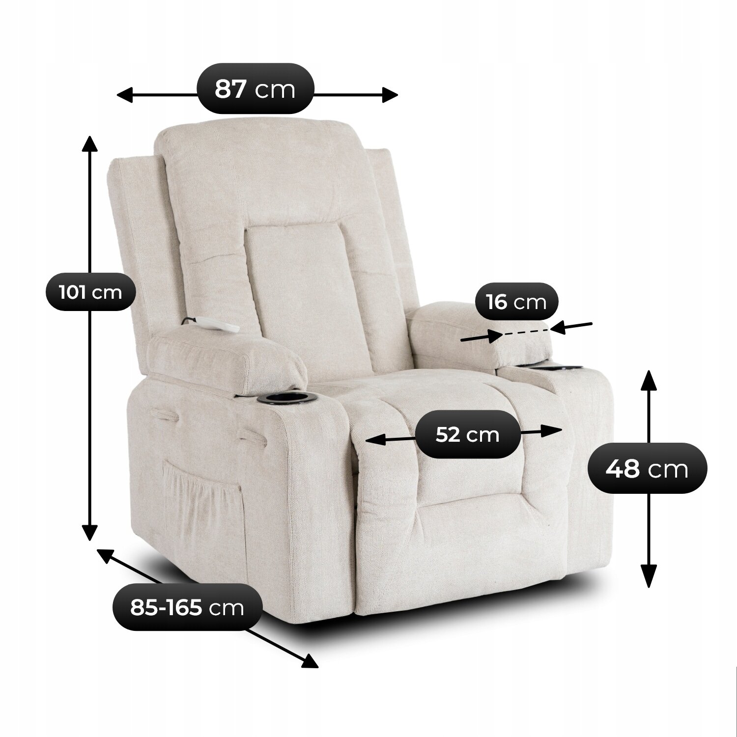 - Fotel Masujący Rozkładany Wypoczynkowy z Podnóżkiem Tkanina Kremowy BOX 2