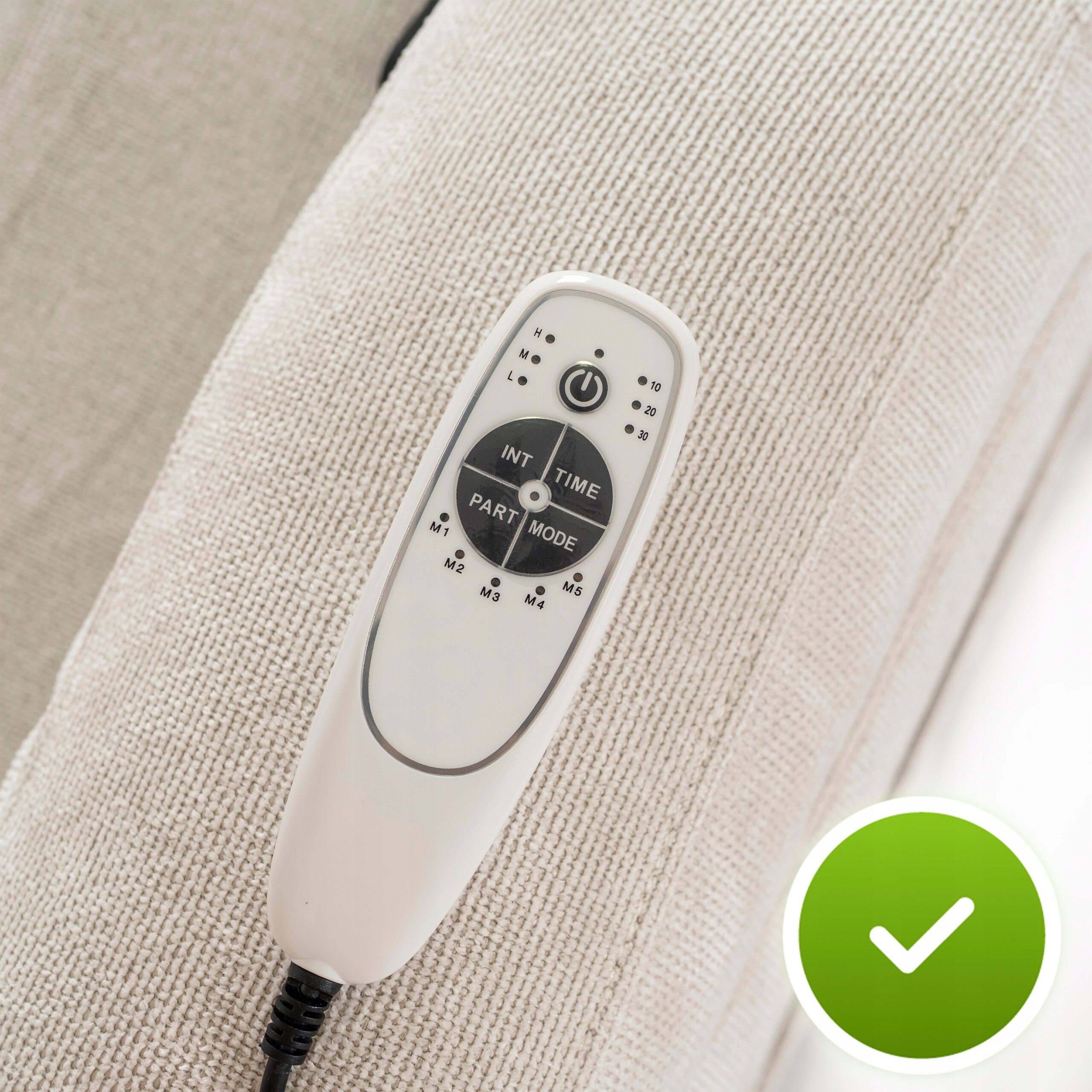 Dodatkowo dostępna jest regulacja intensywności, która pozwala dostosować masaż do swoich potrzeb – od łagodnego odprężenia po intensywniejsze wibracje relaksujące mięśnie.