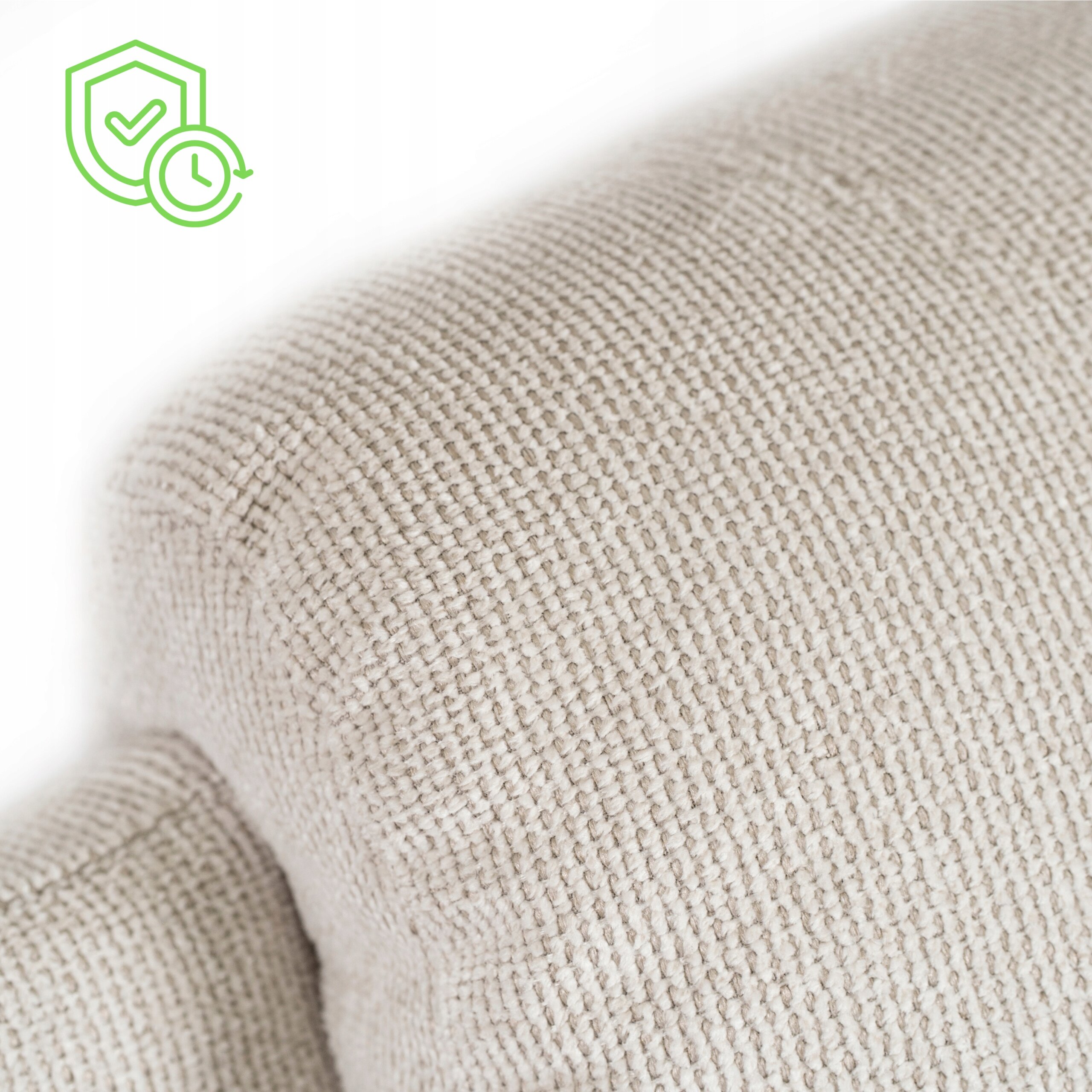 - Tapicerka z miękkiej tkaniny, która nadaje fotelowi nowoczesny, przytulny wygląd i zapewnia wysoki komfort użytkowania. Struktura tkaniny dodaje głębi i ciepła, idealnie komponując się z wnętrzami w stylu skandynawskim, loftowym lub retro.