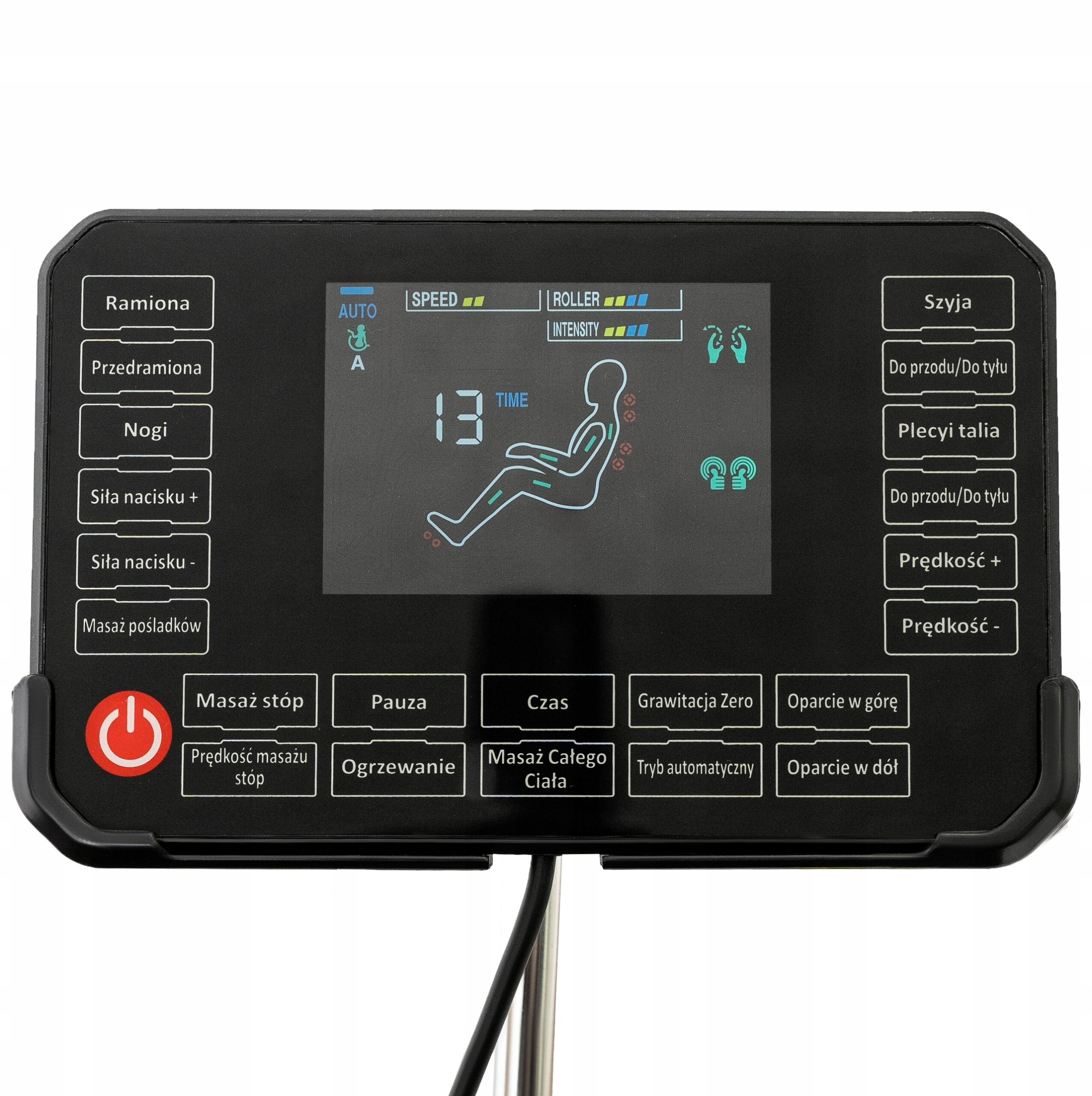 Precyzyjnie pokieruj swoim masażem za pomocą dużego ekranu LCD. Wbudowany do fotela masującego wyświetlacz LCD pozwala na ustawienie czasu, prędkości, siły masażu oraz obszaru, gdzie ma zostać wykonany. Dzięki temu, że JAKO JEDYNI W POLSCE posiadamy panel sterowania w języku polskim, ułatwia korzystanie ze wszystkich dostępnych opcji fotela zapewniając większy komfort użytkowania.