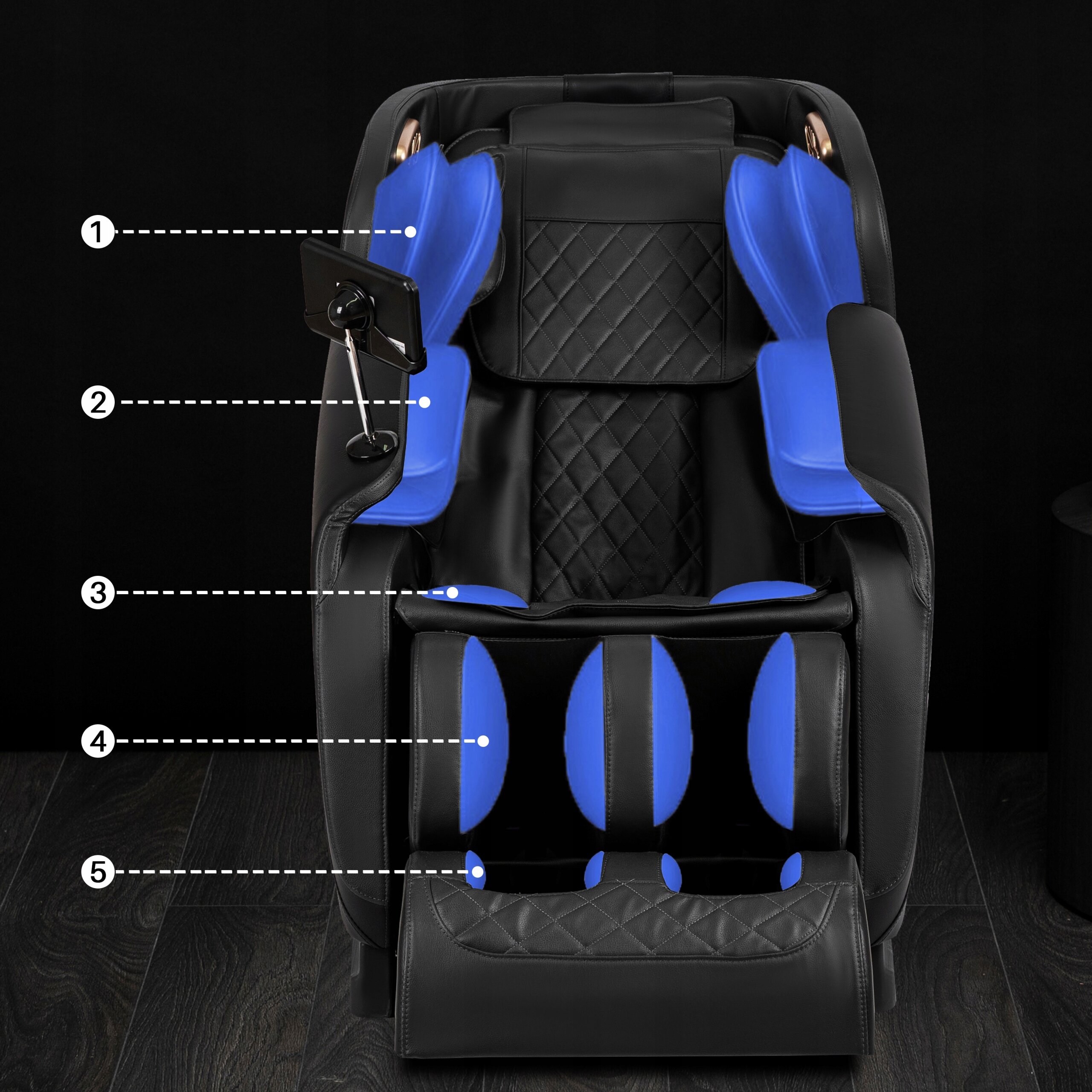 | Zakres masażu poduszkami powietrznymi: | Łydki |