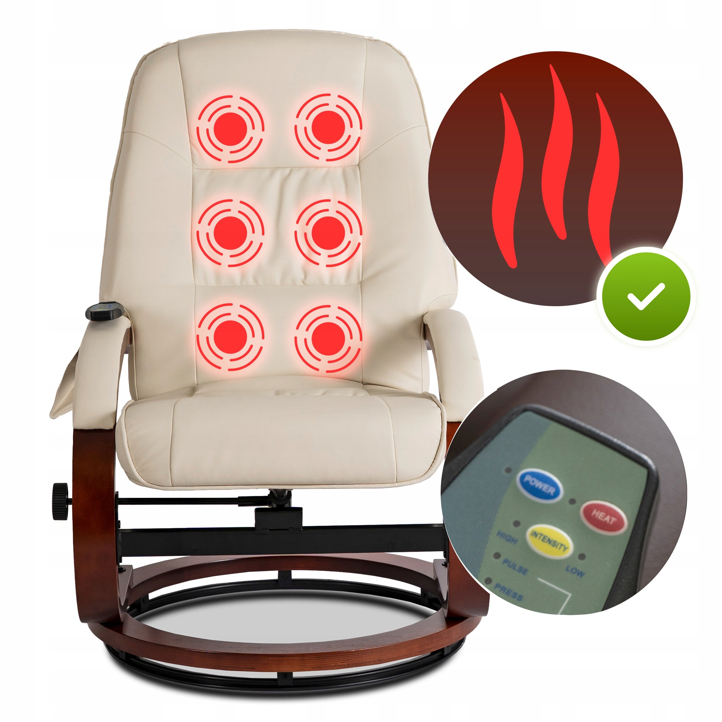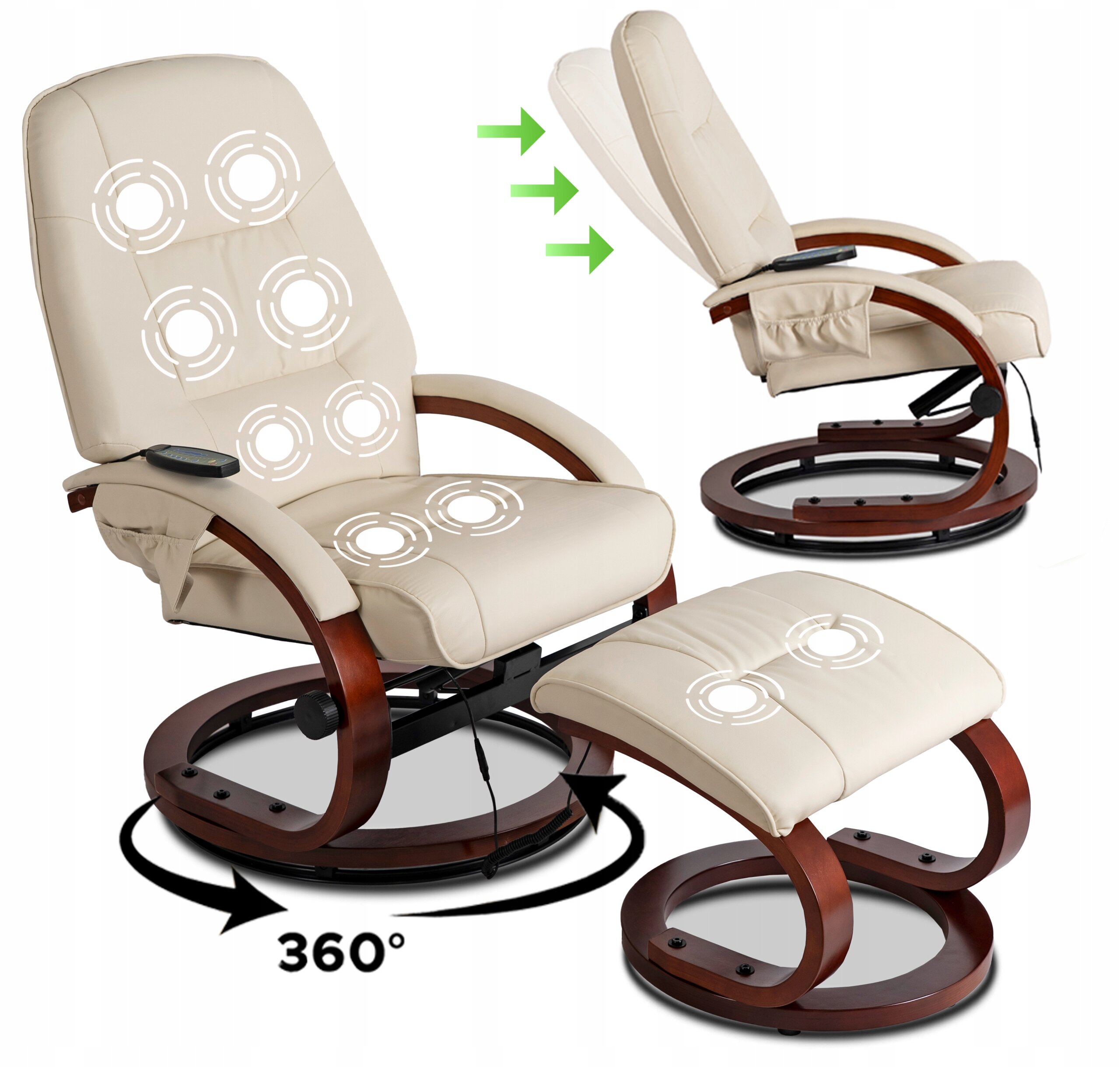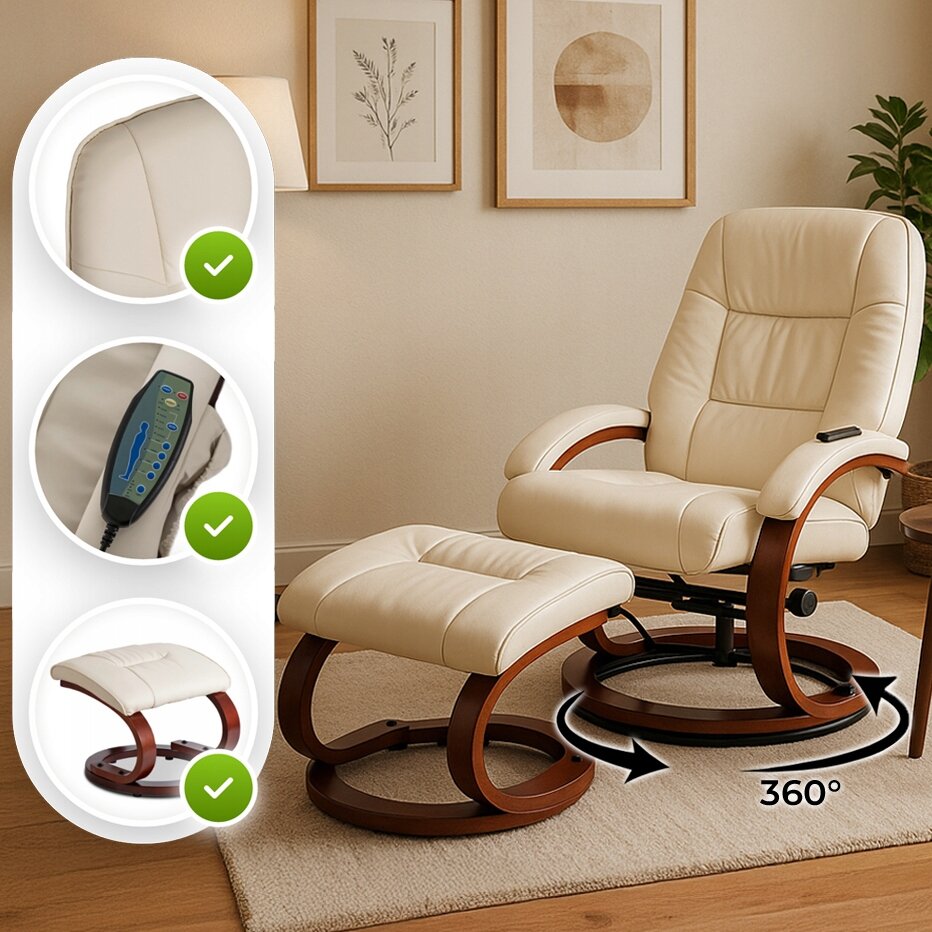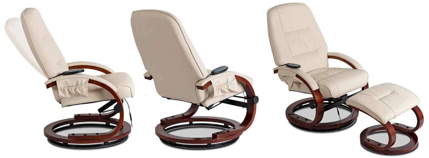 - Fotel Masujący Z Podnóżkiem Wypoczynkowy Z Masażem Obrotowy Beżowy CANO