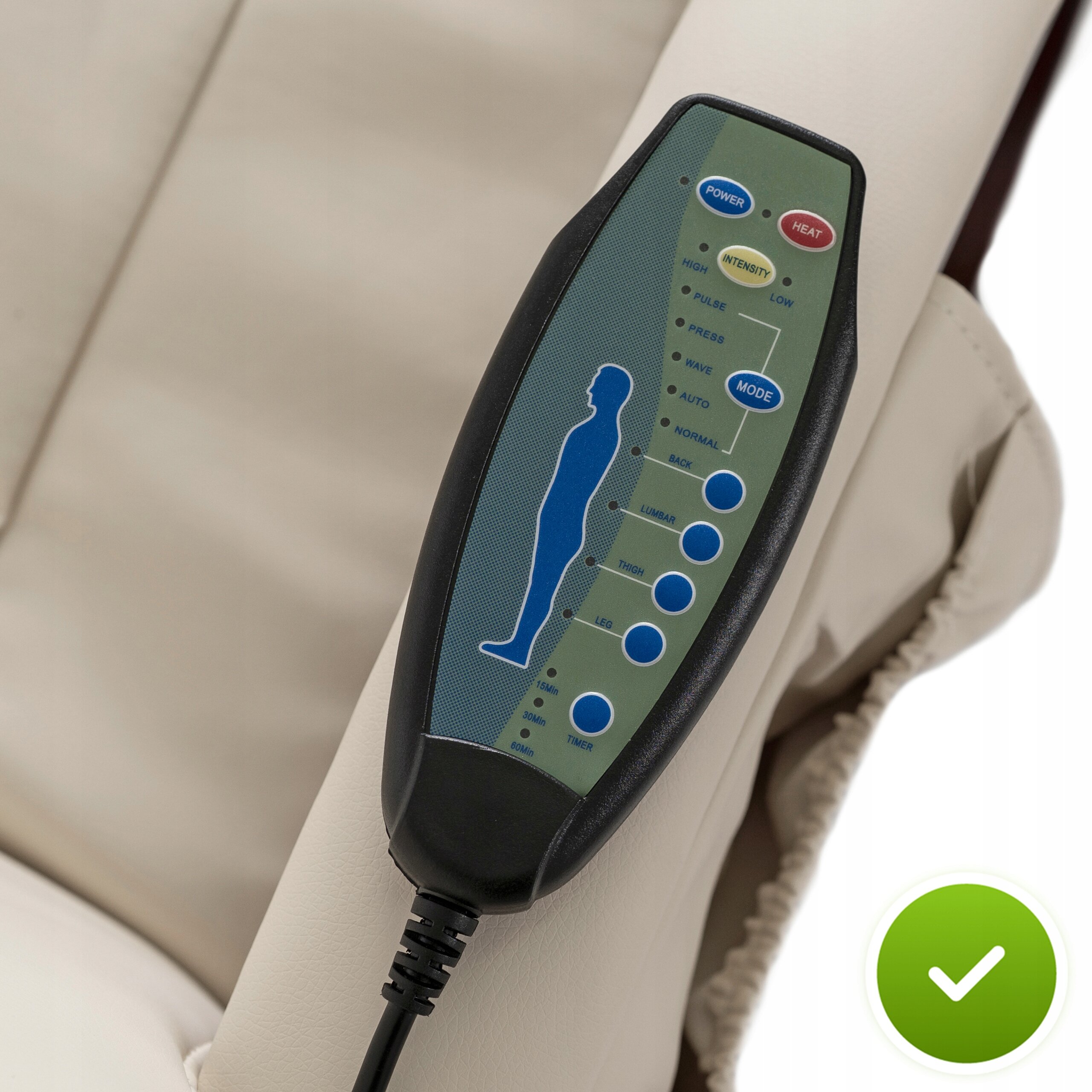 Fotel CANO wyposażono w praktyczny pilot, dzięki któremu włączysz masaż, dopasujesz jego intensywność oraz uruchomisz funkcję grzania jednym kliknięciem.