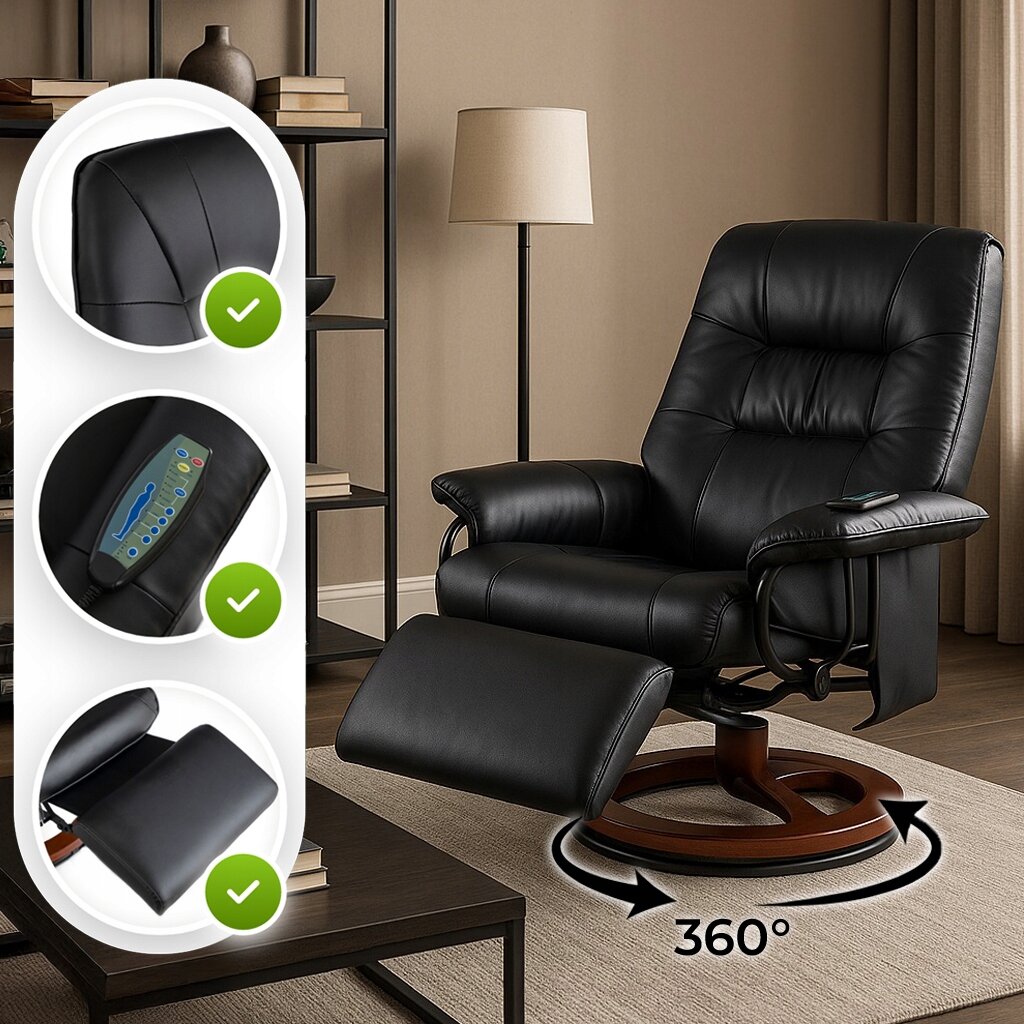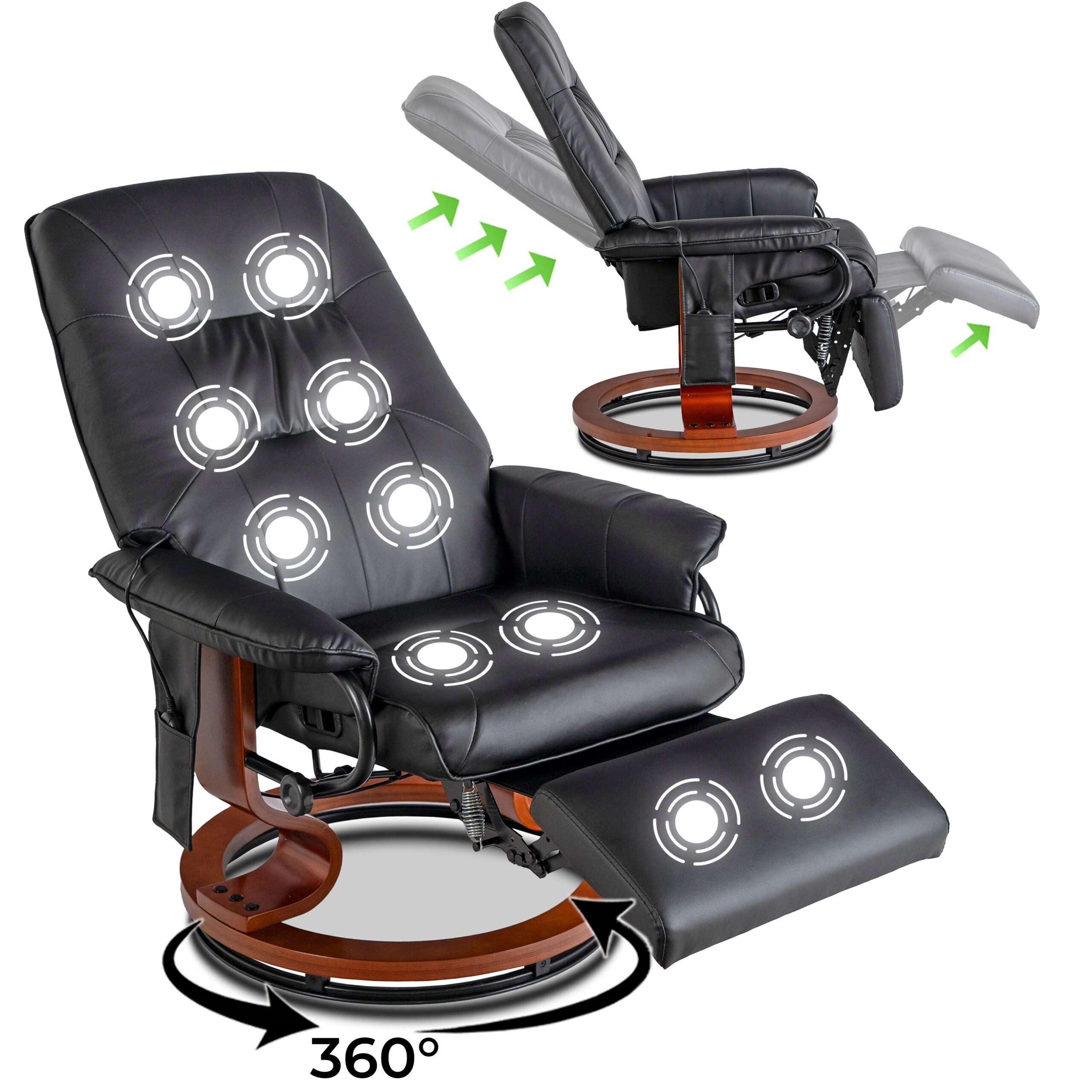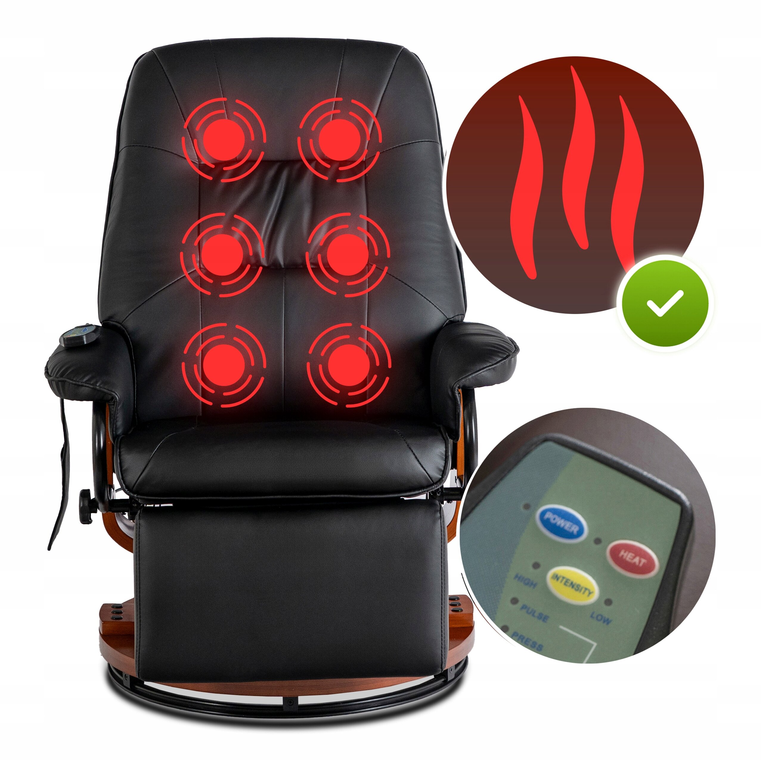 - Fotel Masujący Z Podnóżkiem Wypoczynkowy Z Masażem Wygodny Czarny WEST
