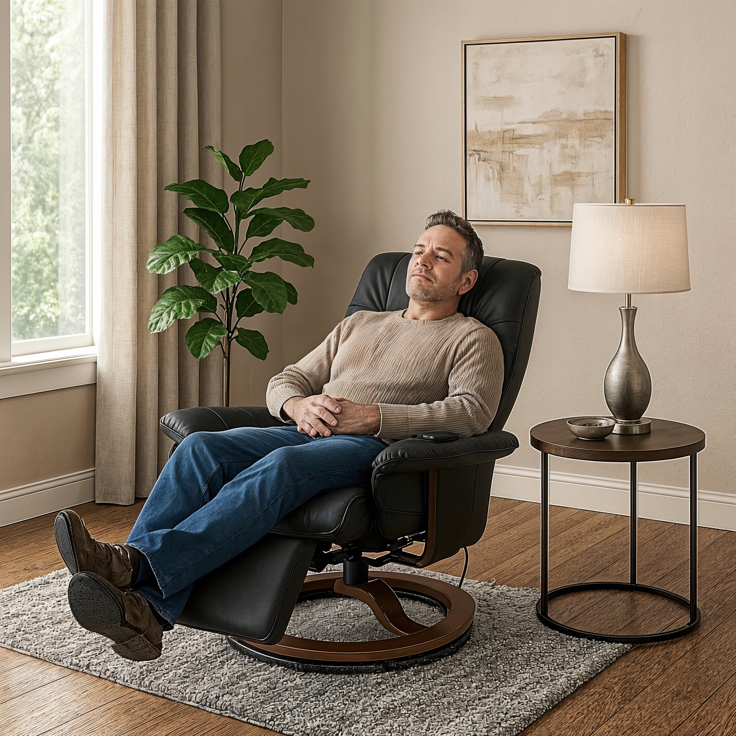 Całością sterujesz za pomocą intuicyjnego pilota, bez konieczności wstawania z fotela – komfort, regeneracja i relaks zawsze w zasięgu ręki.