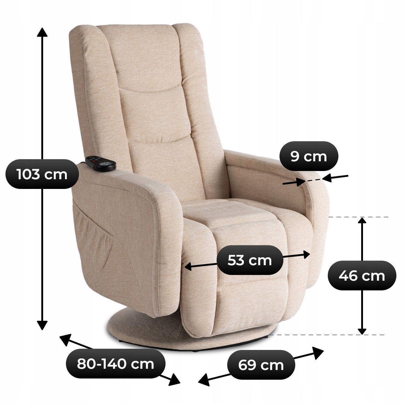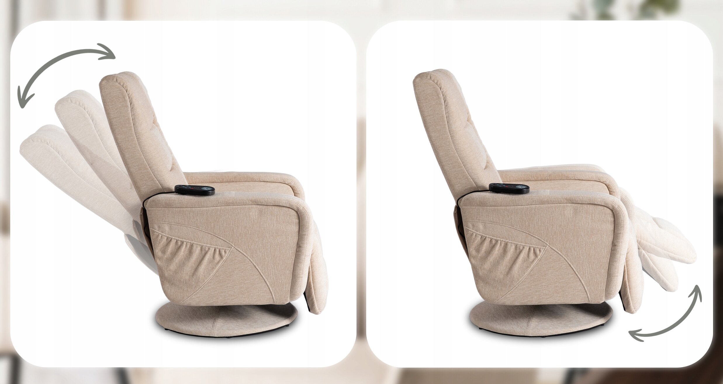 - Fotel Rozkładany Masujący Obrotowy do Salonu Masażu Beżowy SPIKE 2