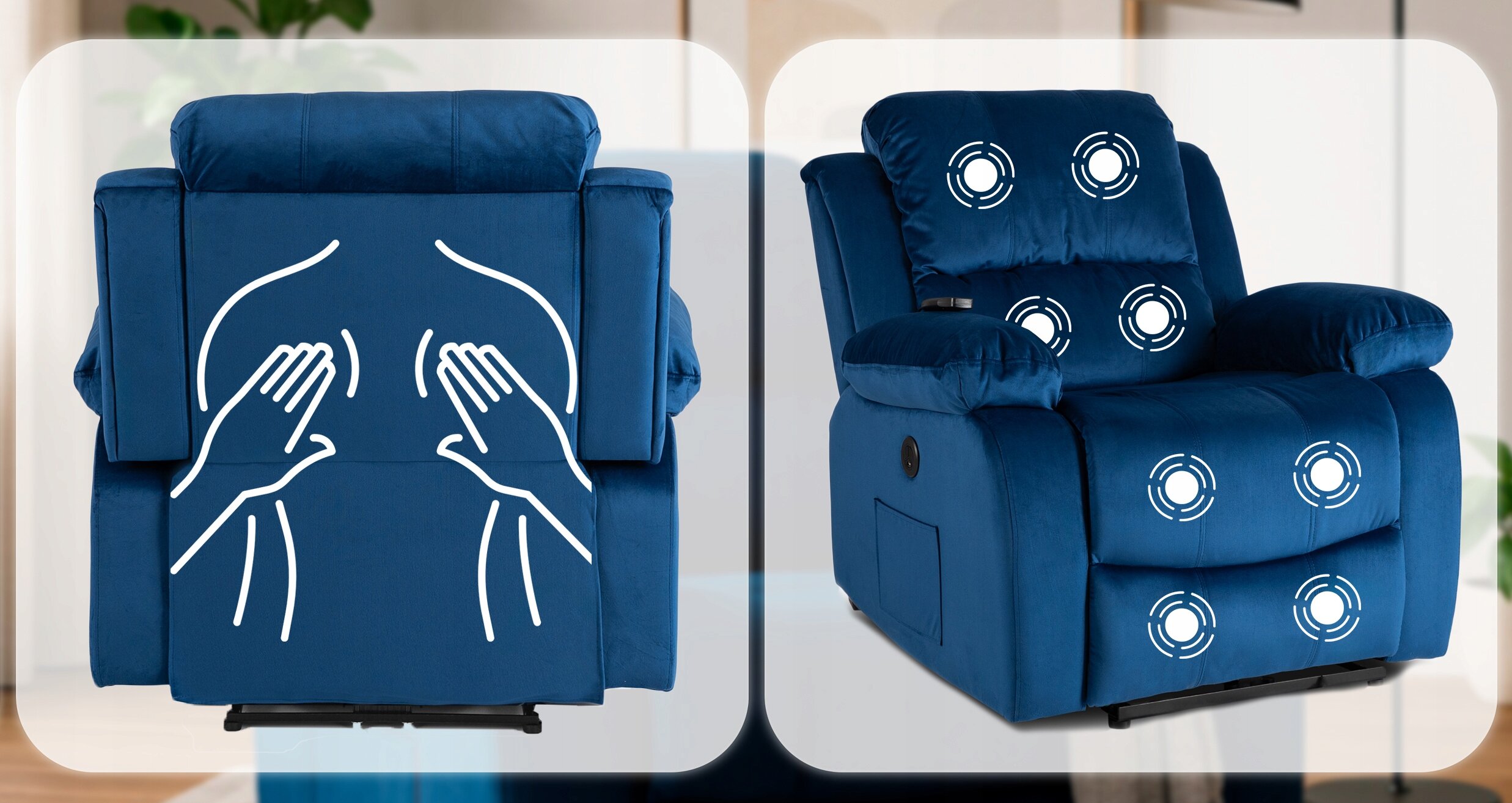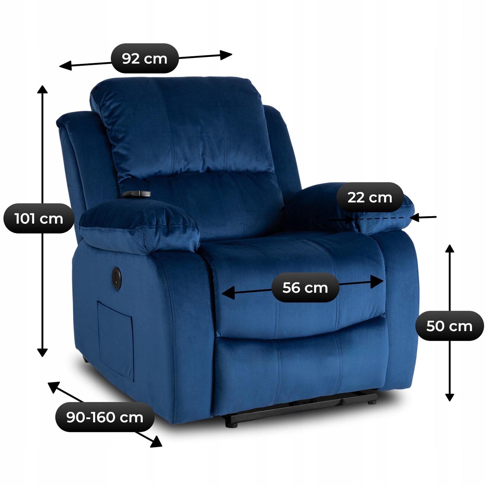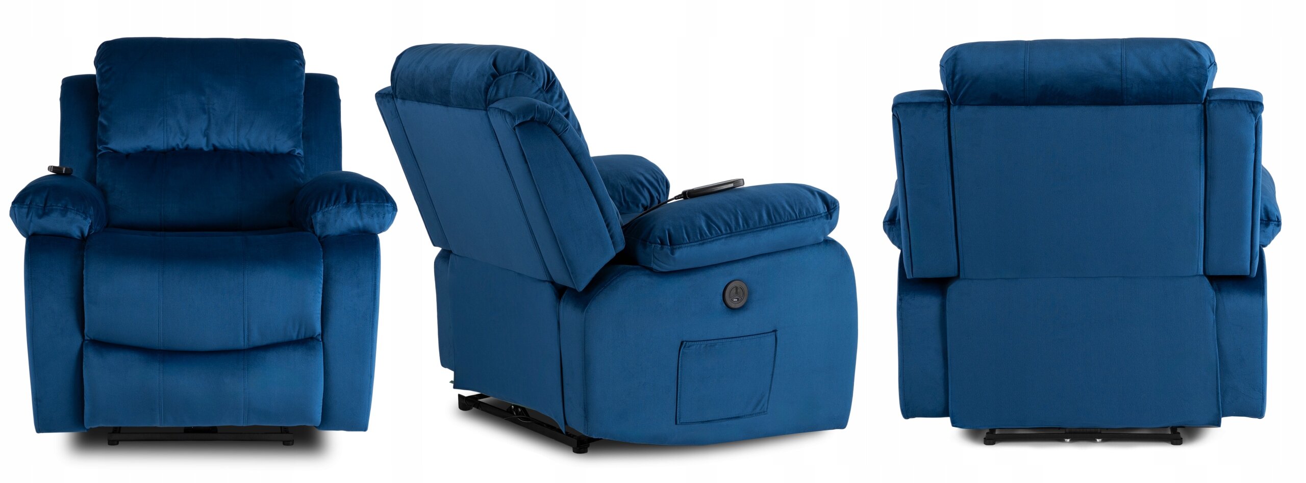 Fotel Rozkładany Masujący Wypoczynkowy Welurowy do Salonu Granatowy ARON