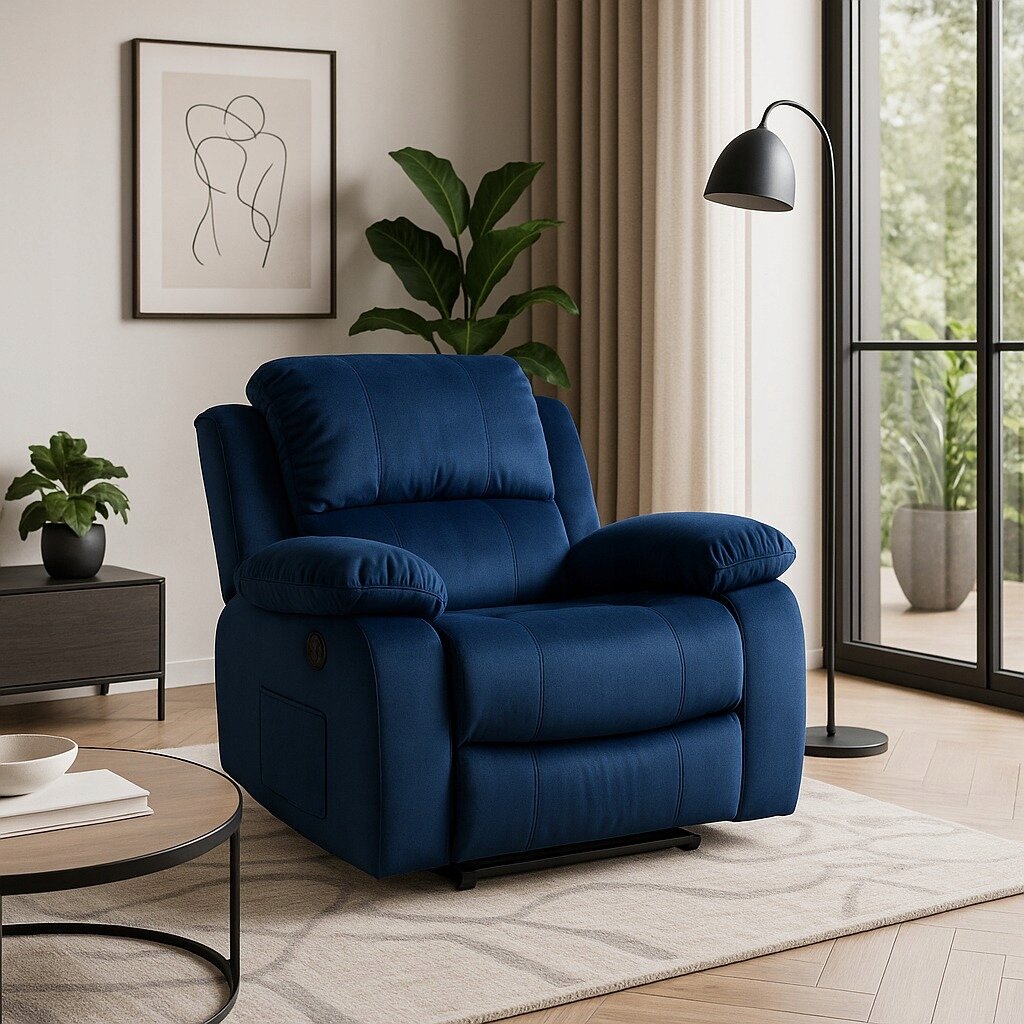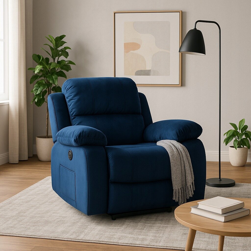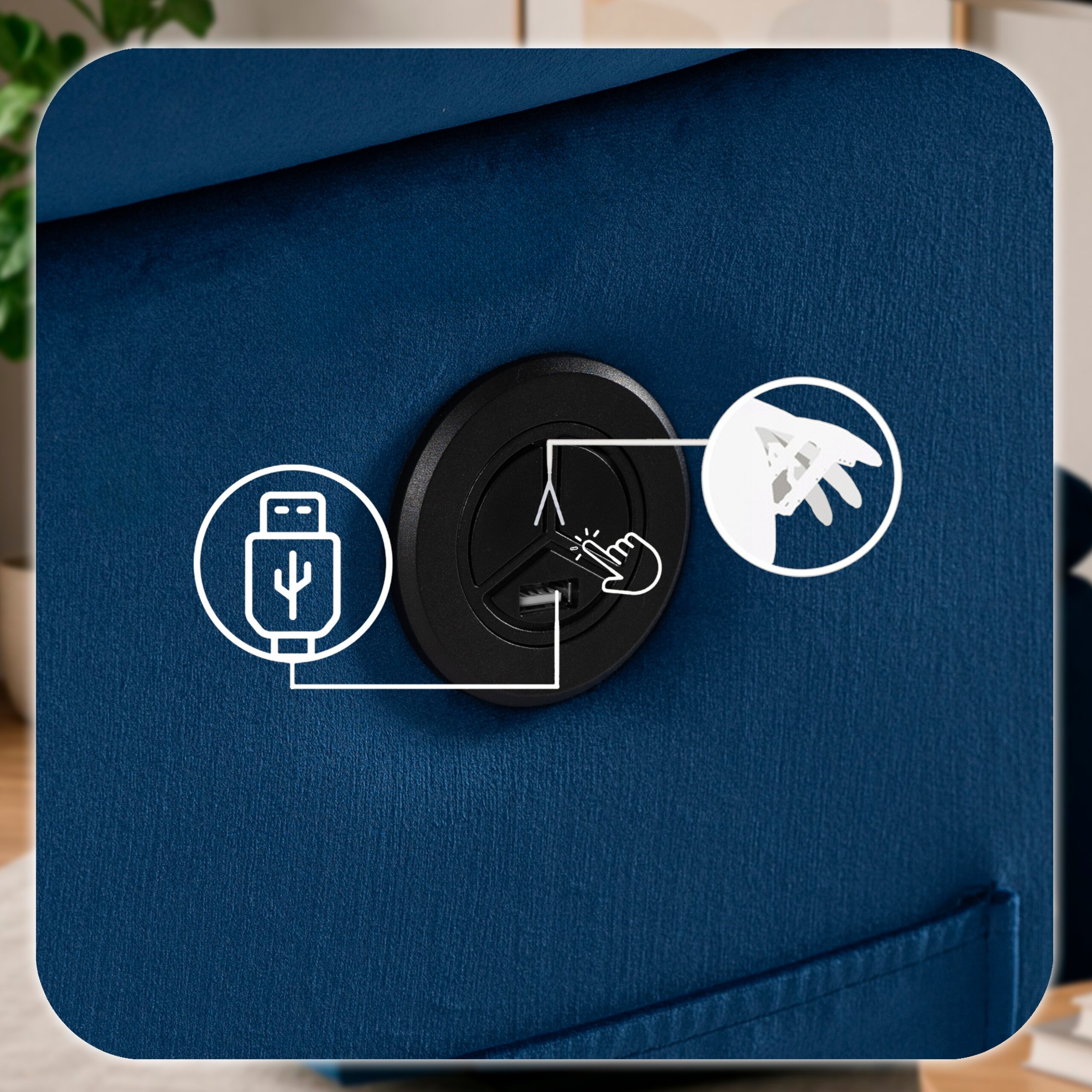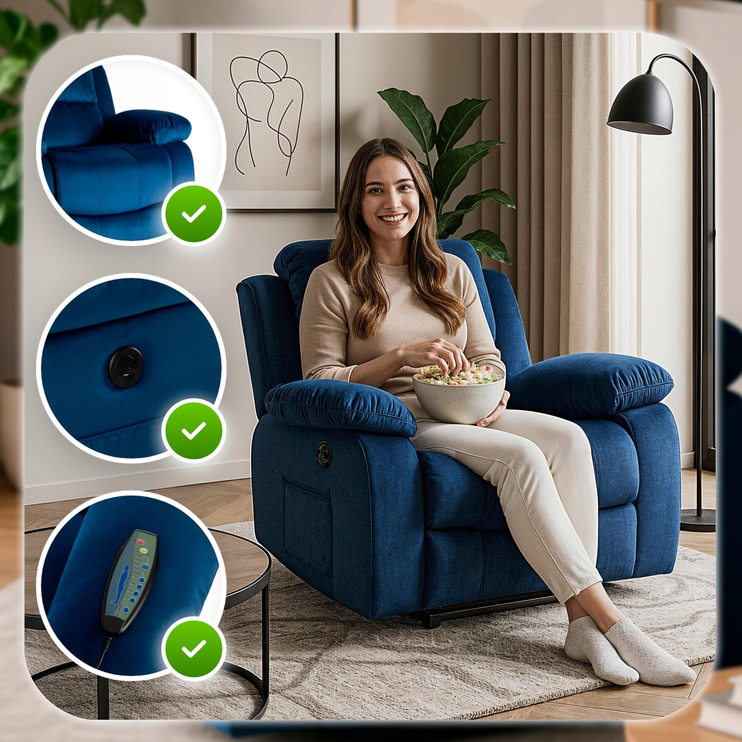 Fotel Rozkładany Masujący Wypoczynkowy Welurowy do Salonu Granatowy ARON