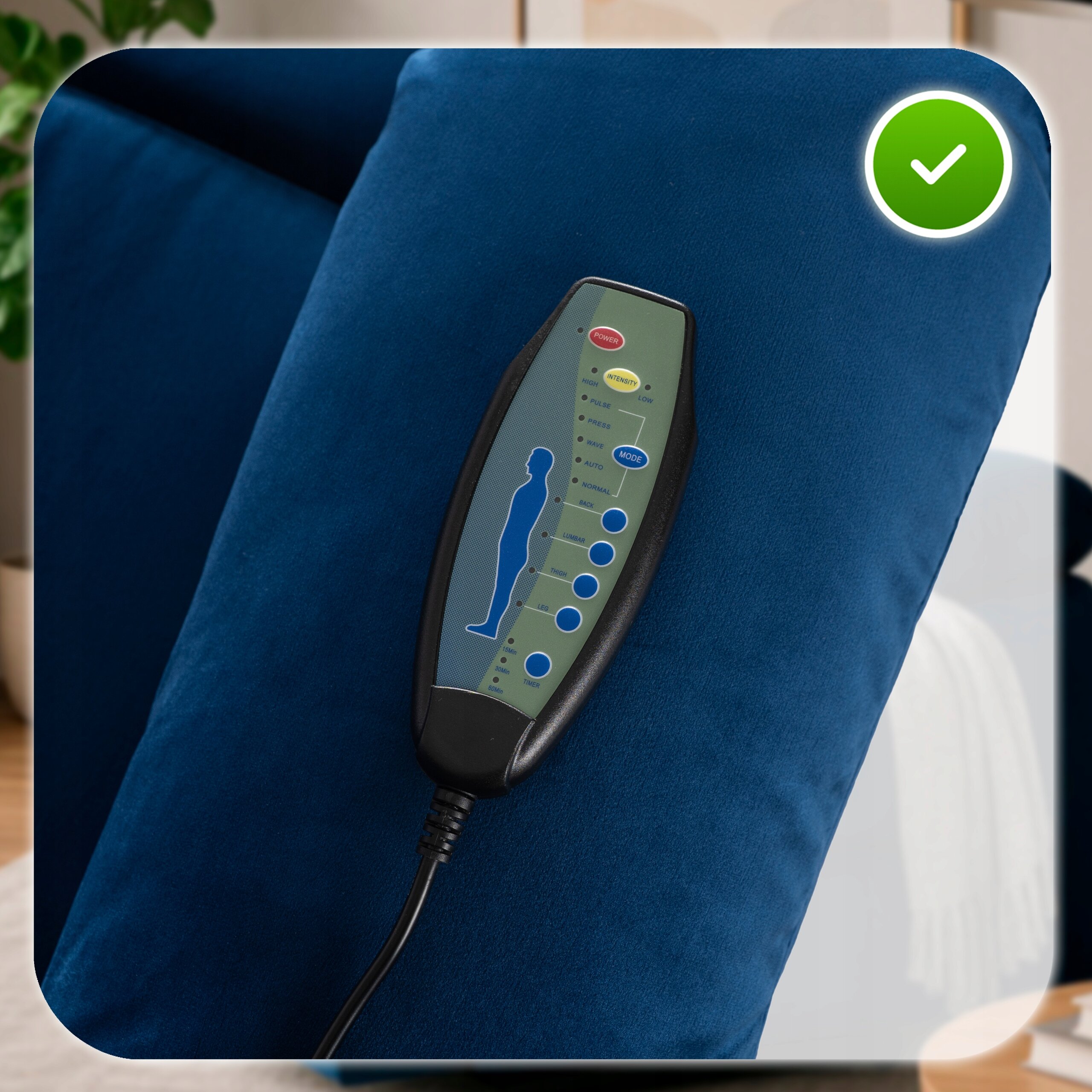 - Funkcja masażu – 4 strefy działania (plecy, lędźwia, uda, łydki) oraz 5 programów z możliwością regulacji intensywności.