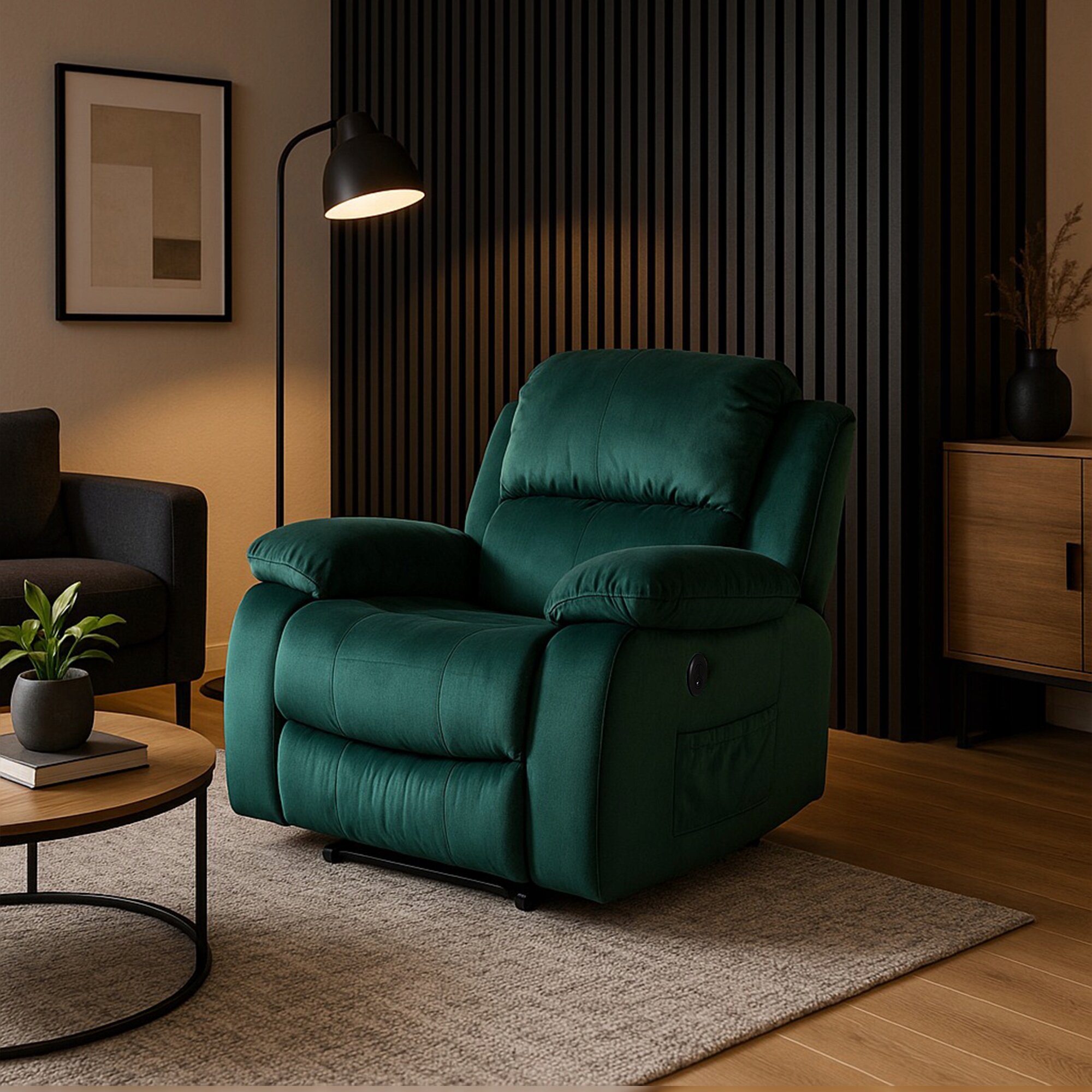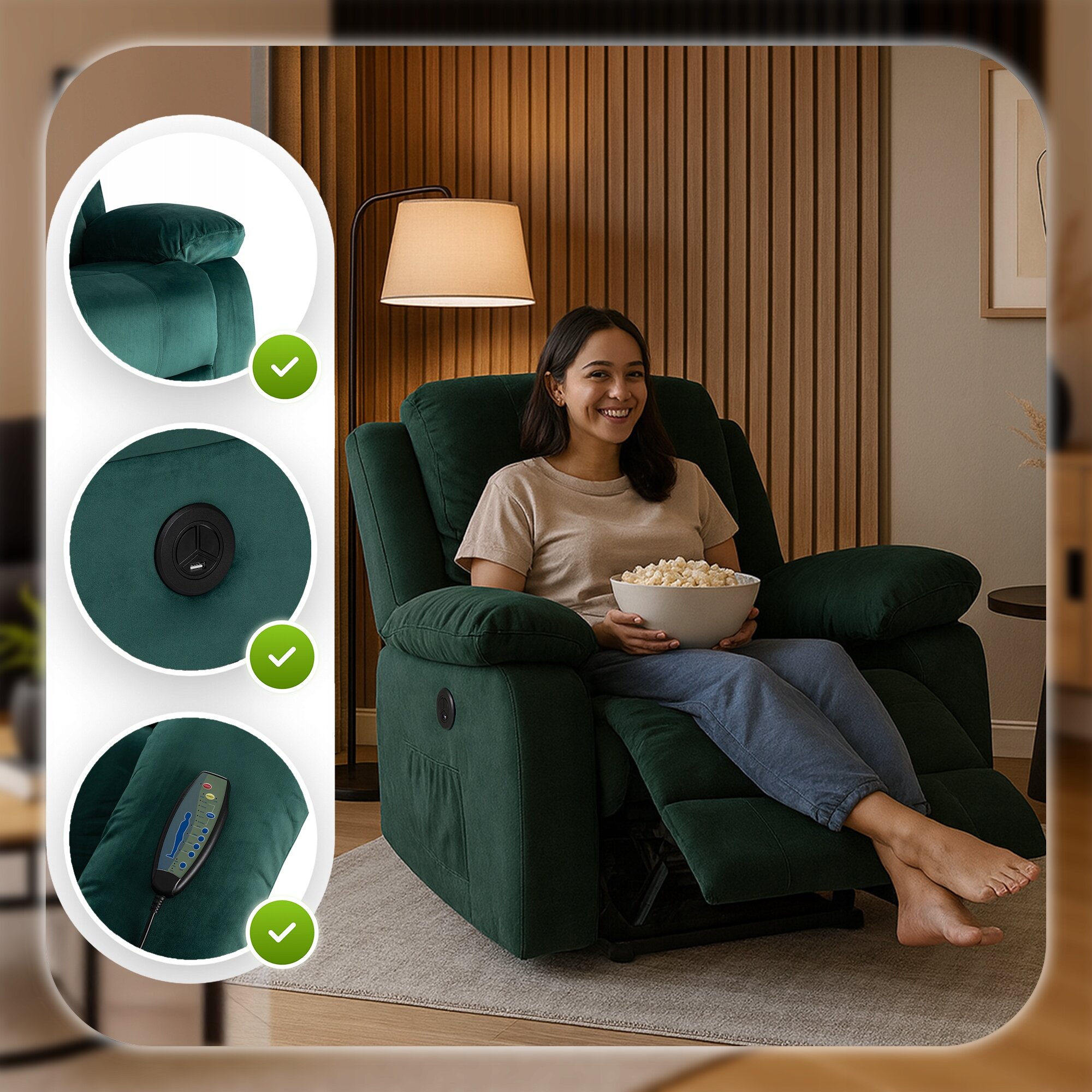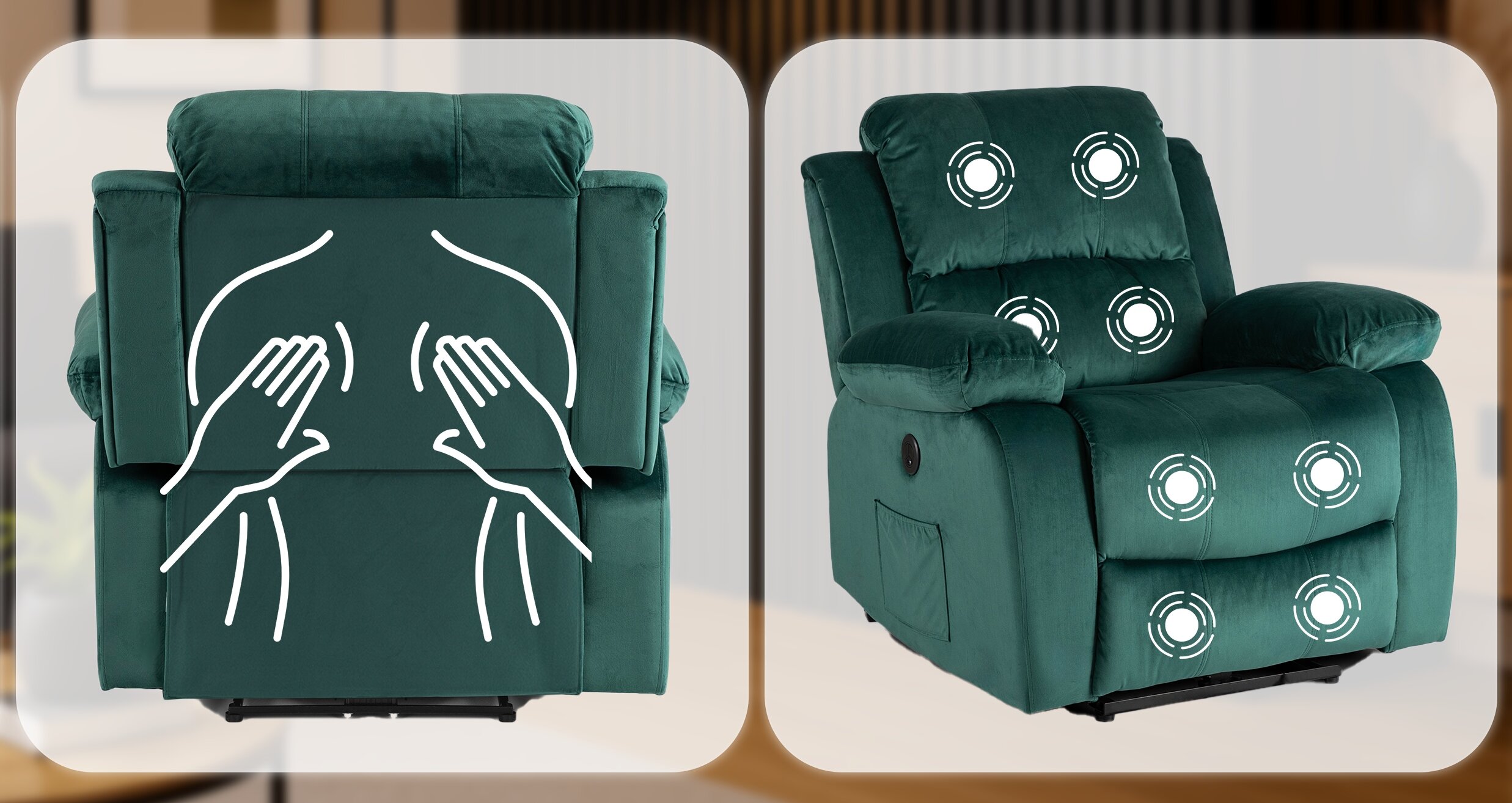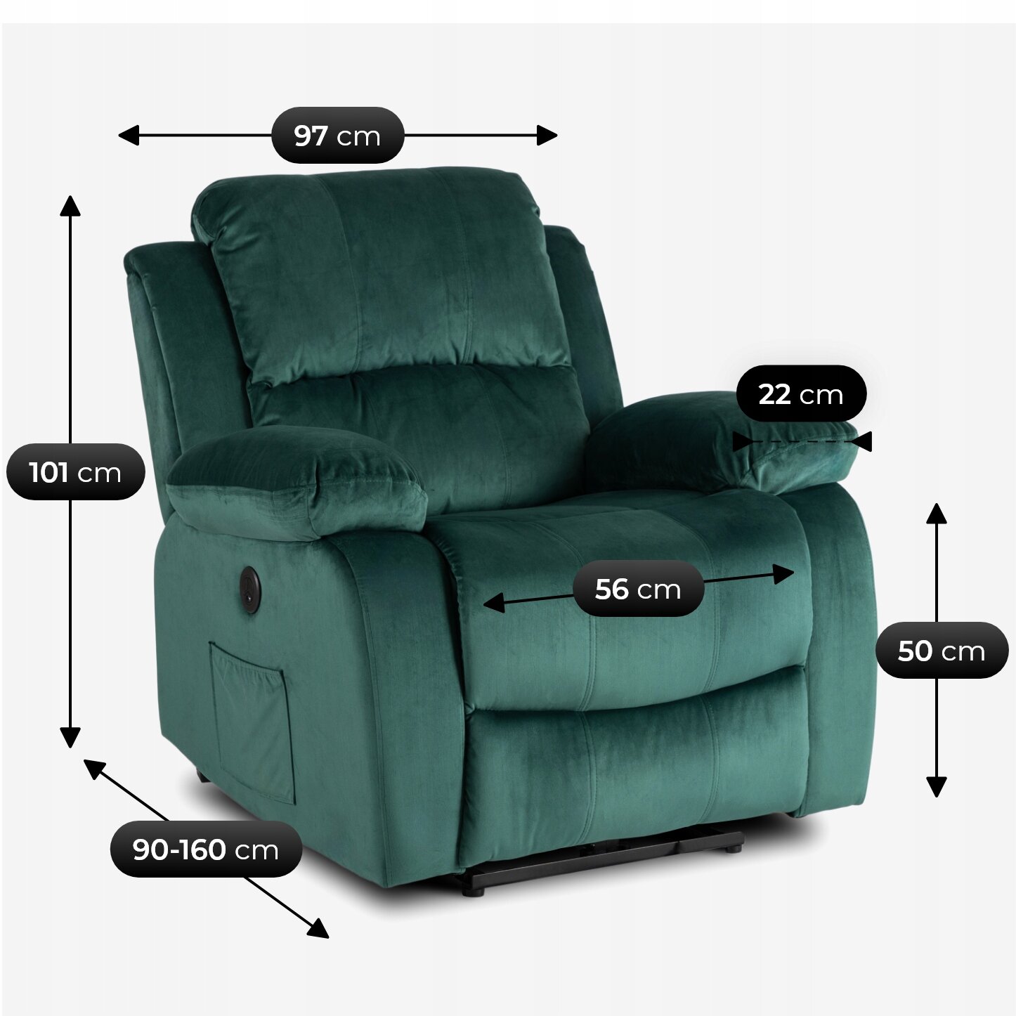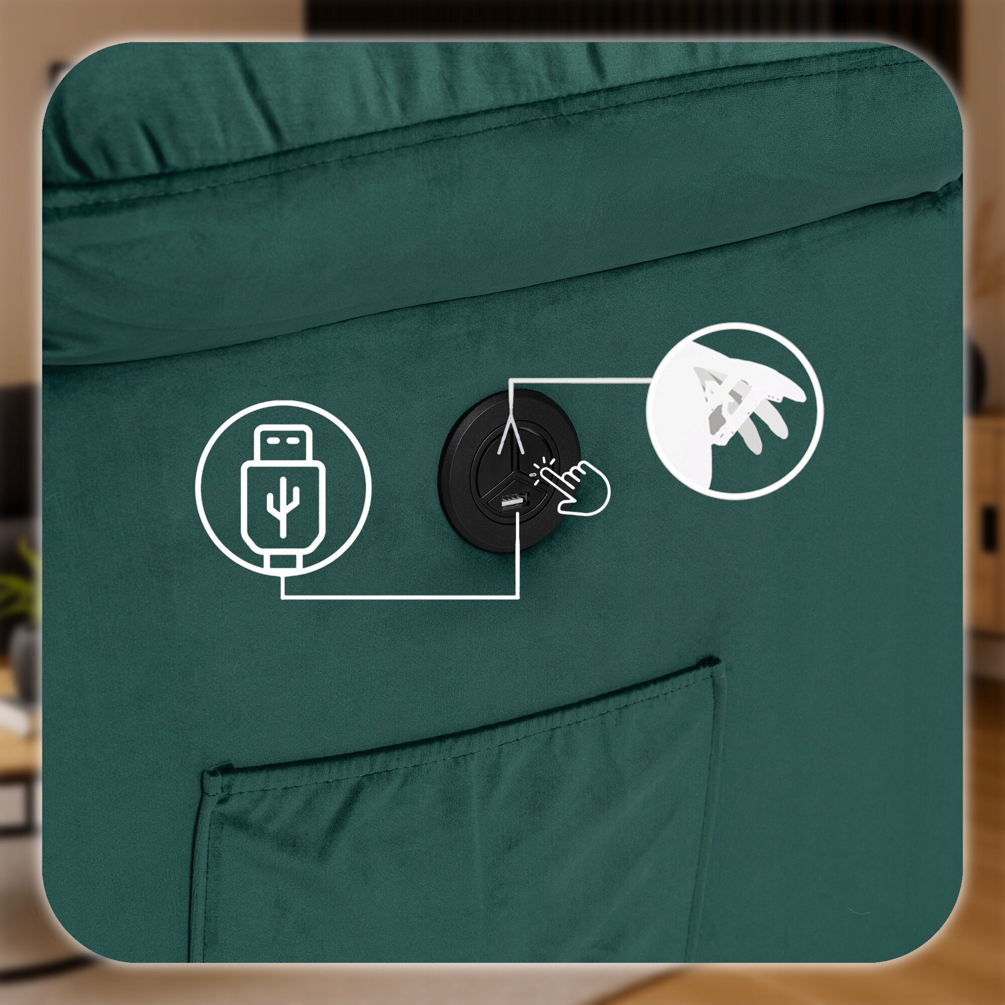Fotel Rozkładany Masujący Wypoczynkowy Welurowy do Salonu Zielony ARON