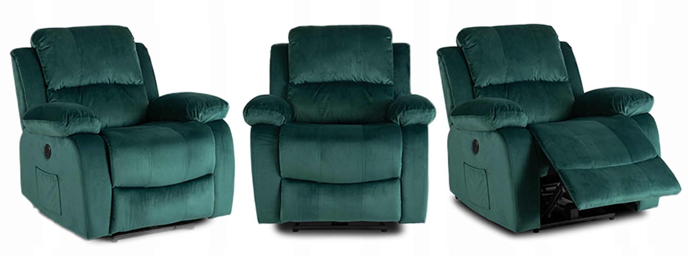 - Fotel Rozkładany Masujący Wypoczynkowy Welurowy do Salonu Zielony ARON