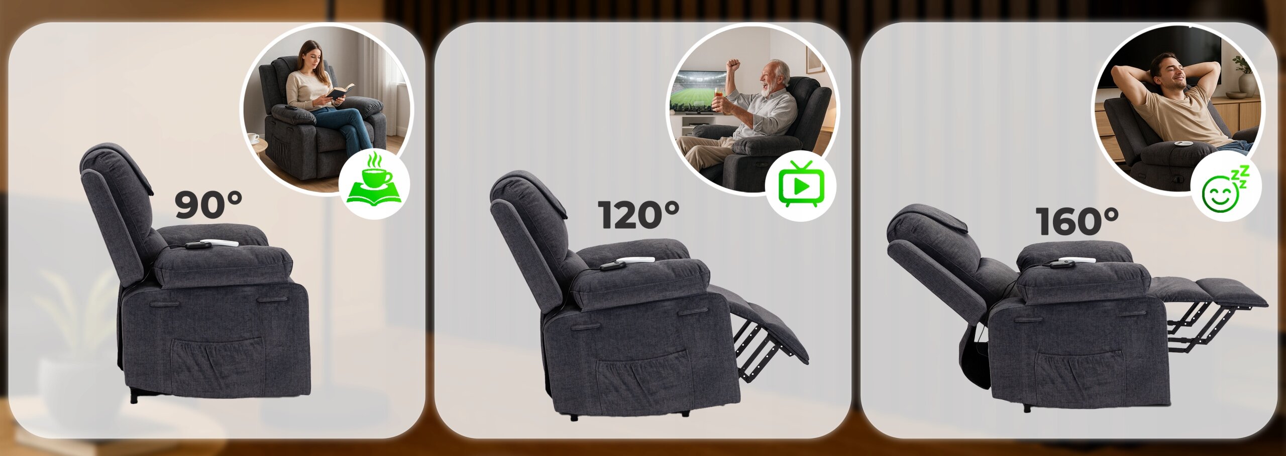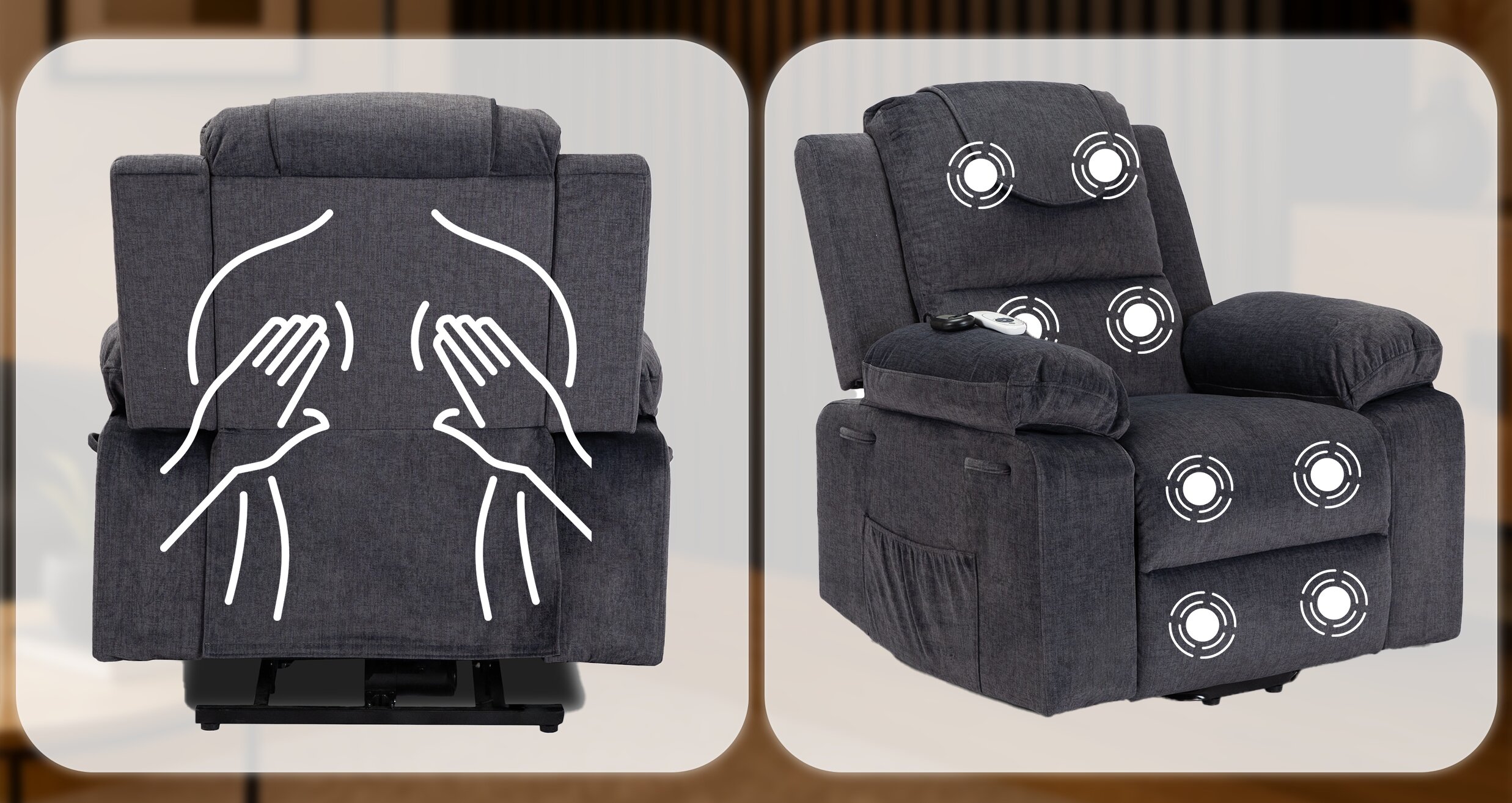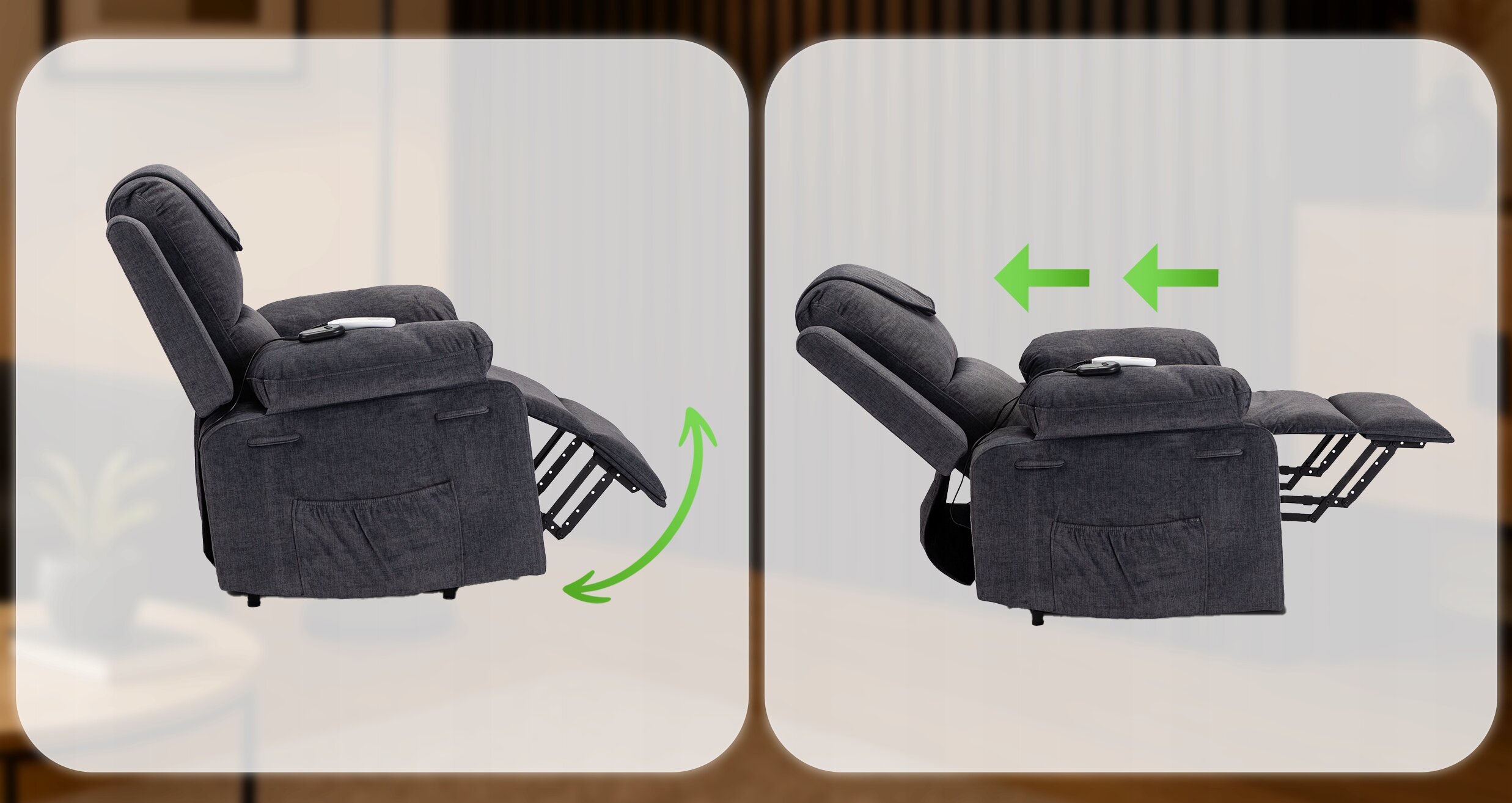 - Dla seniorów – doskonałe podparcie pleców i nóg wspiera krążenie i pomaga w codziennym odpoczynku, szczególnie przy problemach ze stawami. Dodatkowo funkcja podnoszenia siedziska ułatwia wstawanie.