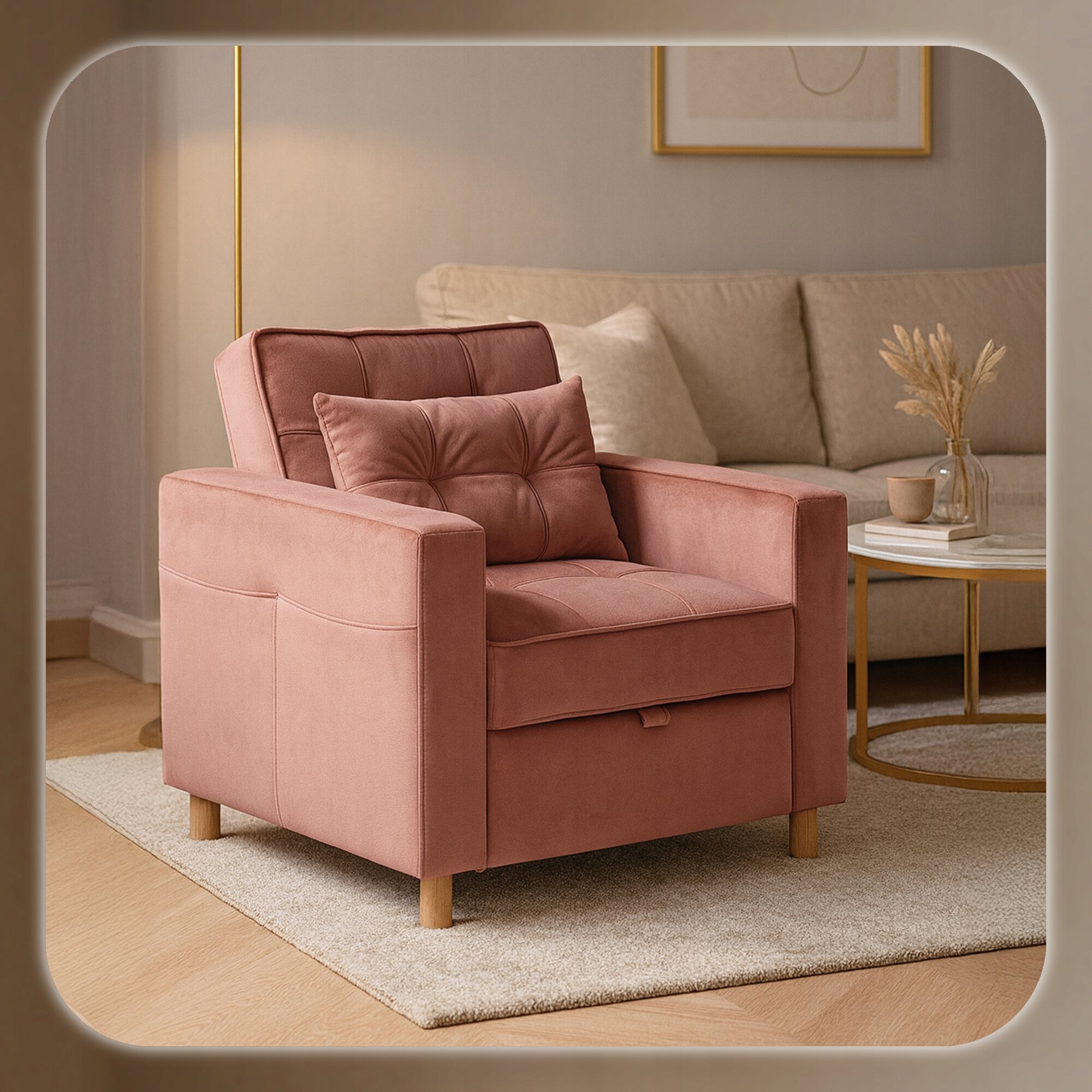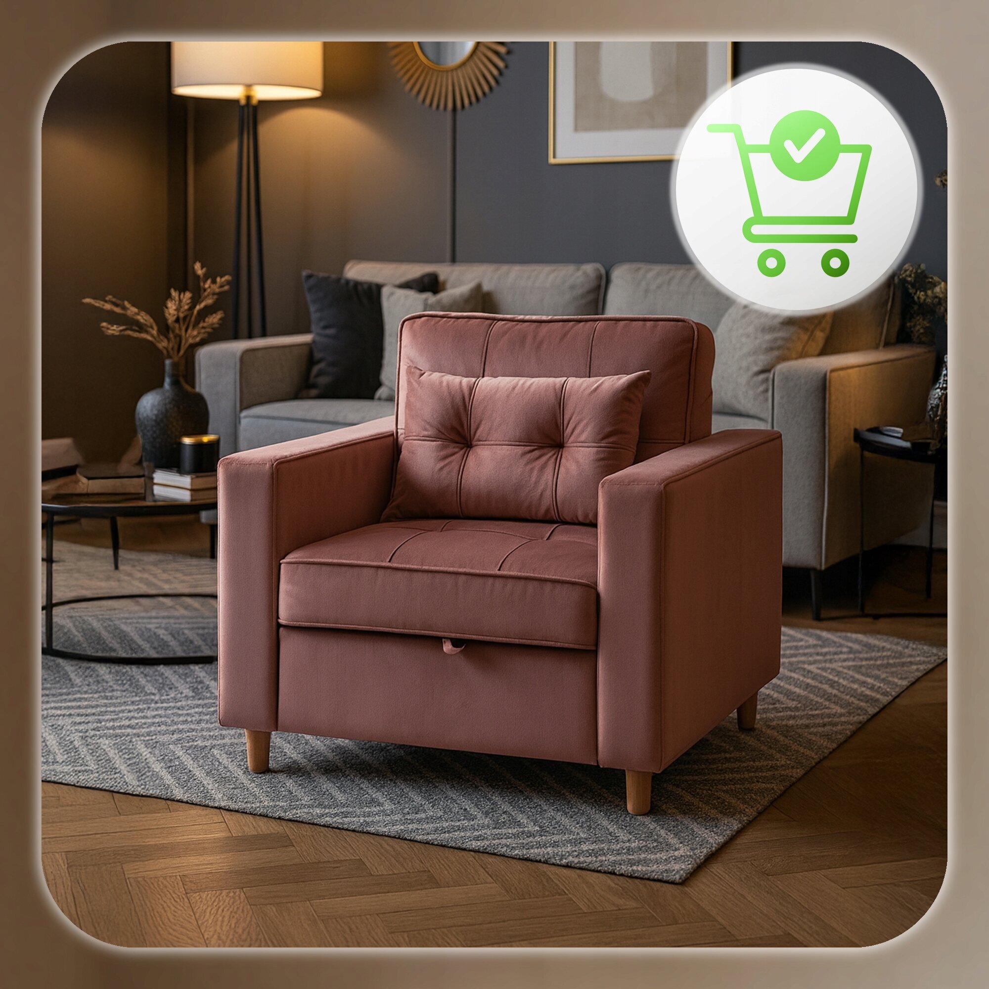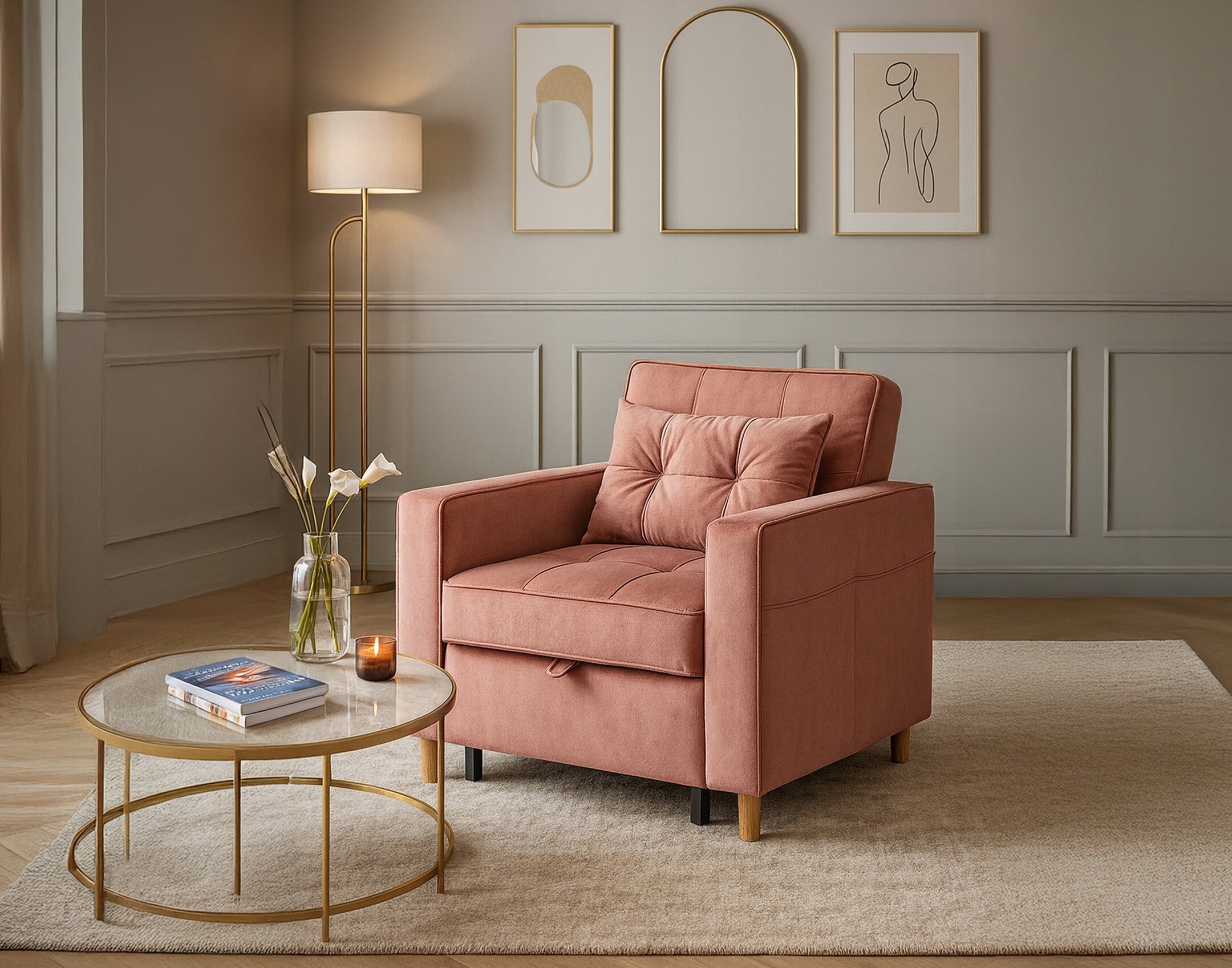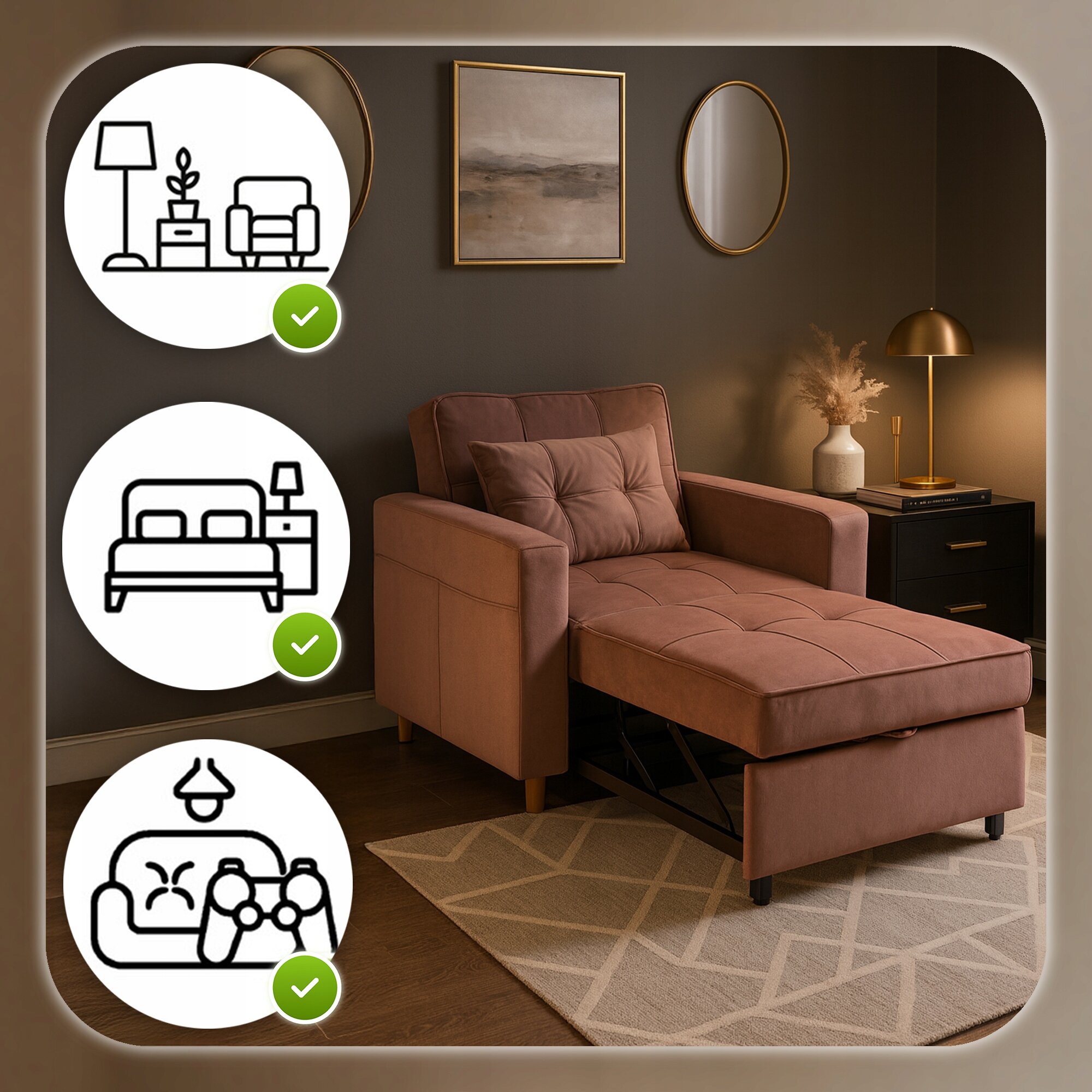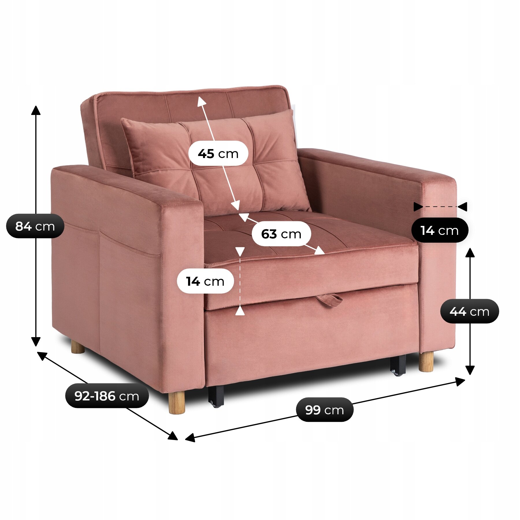 Ten fotel rozkładany łączy elegancję z funkcjonalnością – w kilka chwil zmienia się w wygodne łóżko. Świetnie sprawdzi się w salonie, sypialni, pokoju gościnnym, a także w hotelach.