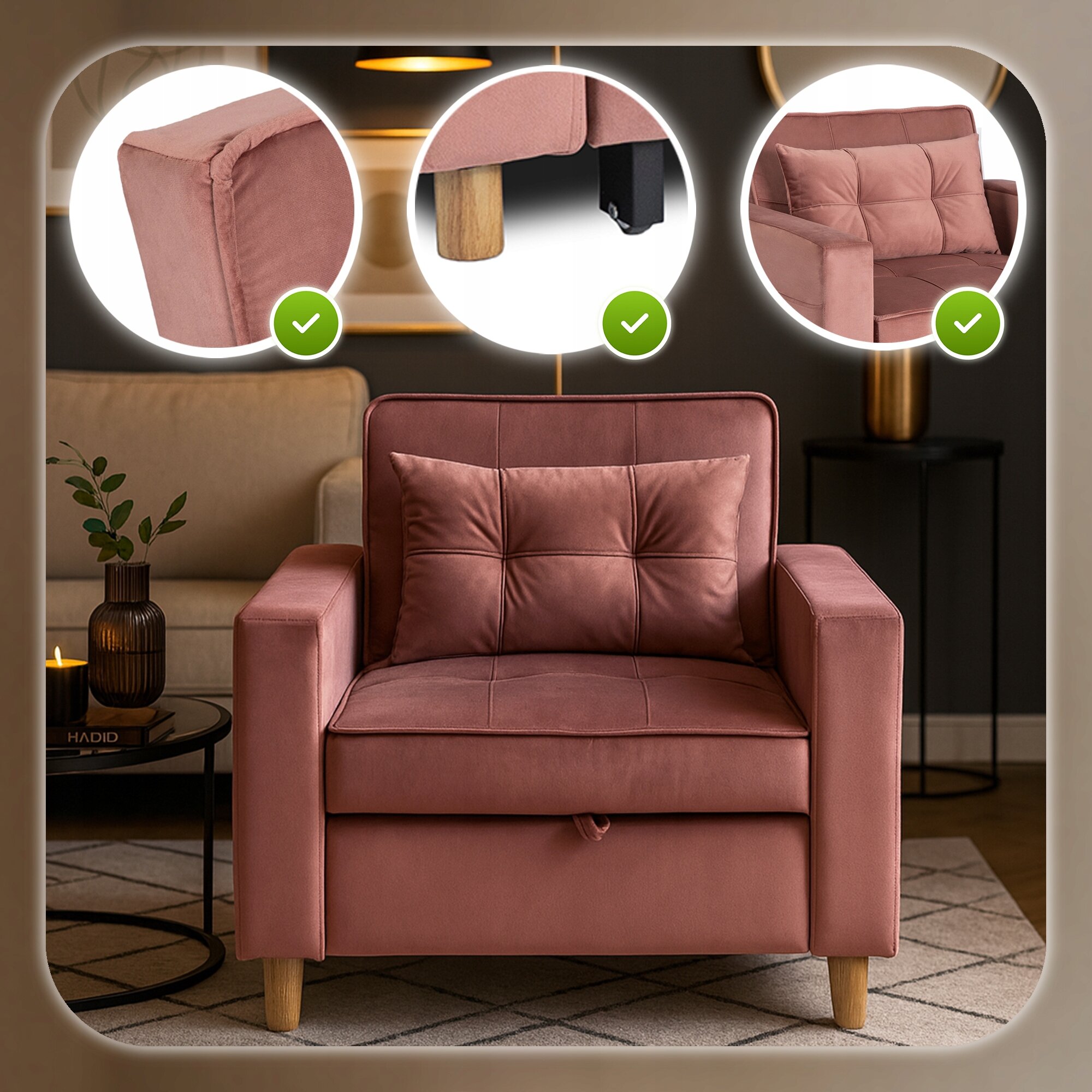 Amerykanka Fotel Rozkładany Sofa Kanapa Do Spania Wypoczynkowy Różowy SOLOR ⭐⭐⭐⭐⭐